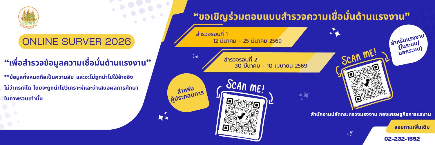 ขอเชิญชวนร่วมตอบแบบสอบถามความพึงพอใจที่มารับบริการของหน่วยงานในสังกัดกระทรวงแรงงาน