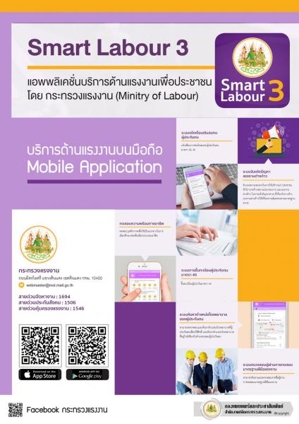 “Smart Labour 3” ผ่าน Google Play ของระบบปฏิบัติการแอนดรอยด์ (Android) และผ่าน App Store ของระบบปฏิบัติการไอโอเอส (iOS) และผ่านศูนย์กลางแอพพลิเคชันภาครัฐ (Government Application Center: GAC) ได้ตั้งแต่บัดนี้เป็นต้นไป โดยแอพพลิเคชันมีบริการ ดังนี้