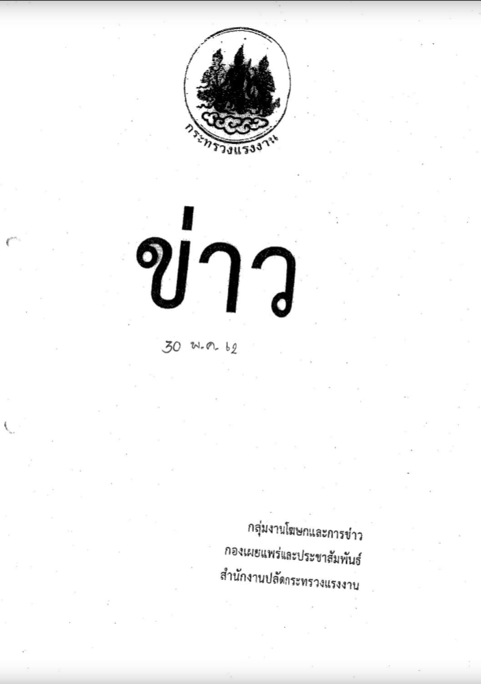 Ongoing situation of Thai workers in Taiwan fiscal year 2553