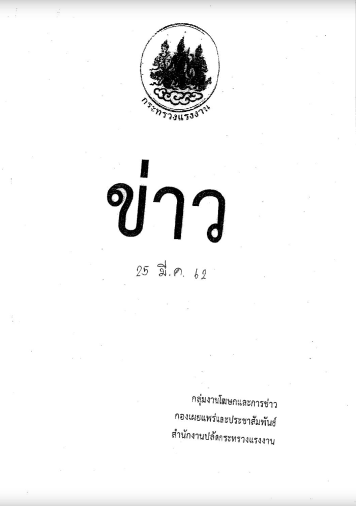 Ongoing situation of Thai workers in Taiwan fiscal year 2553