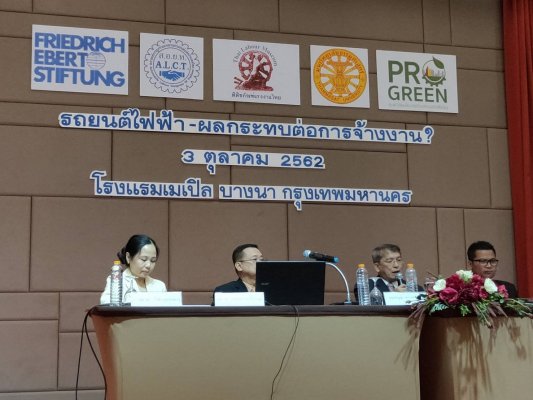 การสัมมนาครั้งนี้จัดขึ้นโดยสภาองค์การลูกจ้างแรงงานยานยนต์แห่งประเทศไทย ร่วมกับ มูลนิธิฟรีดริค เอแบร์ท (FES) ศูนย์วิจัยนโยบายด้านเศรษฐกิจสีเขียว คณะเศรษฐศาสตร์ มหาวิทยาลัยธรรมศาตร์ และมูลนิธิพิพิธภัณฑ์แรงงานไทย มีวัตถุประสงค์เพื่อนำเสนอรายงานผลการศึกษา เรื่อง ผลกระทบจากการเปลี่ยนไปใช้รถยนต์ไฟฟ้าที่มีต่อแรงงานในอุตสาหกรรมชิ้นส่วนยานยนต์ : ข้อเสนอแนะเชิงนโยบายเพื่อการเปลี่ยนผ่านที่เป็นธรรมในประเทศไทย” ให้ผู้มีส่วนเกี่ยวข้องได้แลกเปลี่ยนข้อมูลและความคิดเห็นต่องานวิจัยดังกล่าว รวมทั้งแนวทางในการจัดบริการรองรับแรงงานในยุคที่มีการเปลี่ยนผ่านด้วยเทคโนโลยีอย่างรวดเร็ว