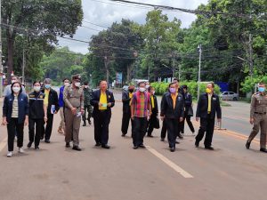 On July 7, 2022, at 10.00 hours, the Labour Minister Mr. Suchart Chomklin, assigned Assistant Minister from the Prime Minister’s Office, performing duties for the Ministry of Labour, Mr. Pornsak Charoenprasert, Cabinet Advisory Board Members Mr. Pairote Wongprom, Dr. Aek Asavarekha, and Mr. Thanakrit Jirivipakorn, and the Sisaket Provincial Labour Office to meet with heads of government agencies under the Ministry of Labour in Surin Province to monitor the progress on the Ministry of Labour’s missions following the Labour Minister’s instructions, and to prepare to support the migration of foreign workers. The occasion took place at the Volunteer Guard Battalion, Kap Choeng District 6 meeting room (Chong Chom Operation Base), Kap Choeng District, Surin Province. The Kap Choeng District Chief gave a welcoming. The Superintendent of the Surin Provincial Immigration Office reported the condition of foreign workers’ migration after opening the Chong Chom checkpoint. The Surin Provincial Public Health Doctor reported the prevention of COVID-19. The Commander of the Suranaree Force, Head of the International Communicable Disease Control Checkpoint, the Office for Disease Control and Prevention 9, Heads of the Area Sales Coordinating Unit 2, the Chairperson of the Dan Subdistrict Administrative Organization, and related agencies attended the meeting. The meeting reported information on preparing to support the migration of foreign workers through the Chong Chom border checkpoint by working with relevant parties. The Assistant Minister emphasized that agencies under the Ministry of Labour in Surin Province focus on carrying out the missions following the Labour Minister Mr. Suchart Chomklin’s policy. They strictly enforce the policies on bringing foreign workers to work in Thailand, ensuring compliance under Section 64 and the MOU. They prohibit any officials from the Ministry of Labour from being involved in the illegal importation of foreign workers and human trafficking. The delegation visited business organizations in the Chong Chom border market area and around the Chong Chom permanent border checkpoint to encourage employers, employees, and workers to pass through the economic crisis and COVID-19 situation together. They charged the agencies under the Ministry of Labour in Surin Province and related agencies to care for the people, establishments, and local workers.