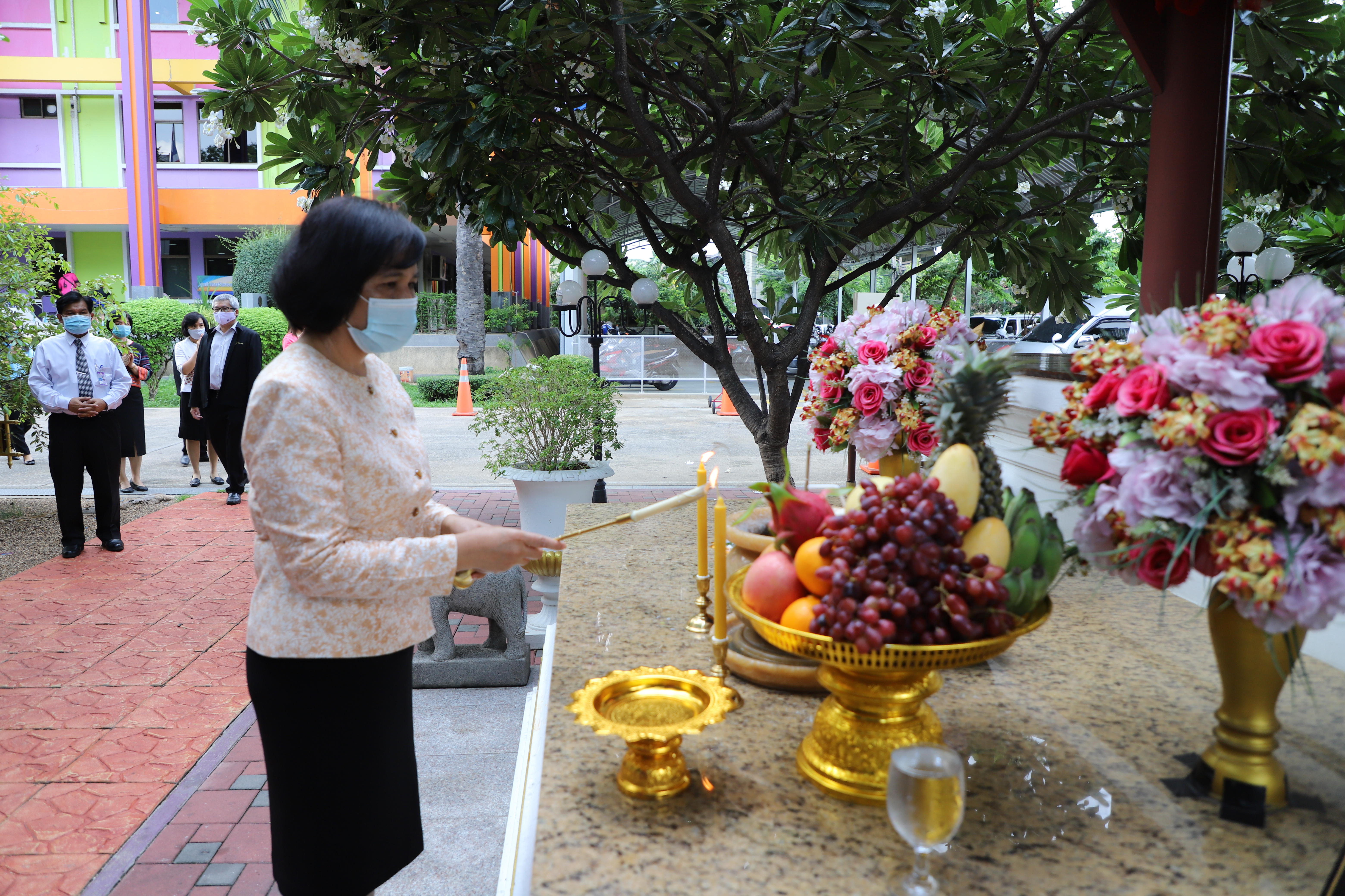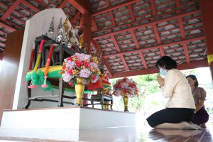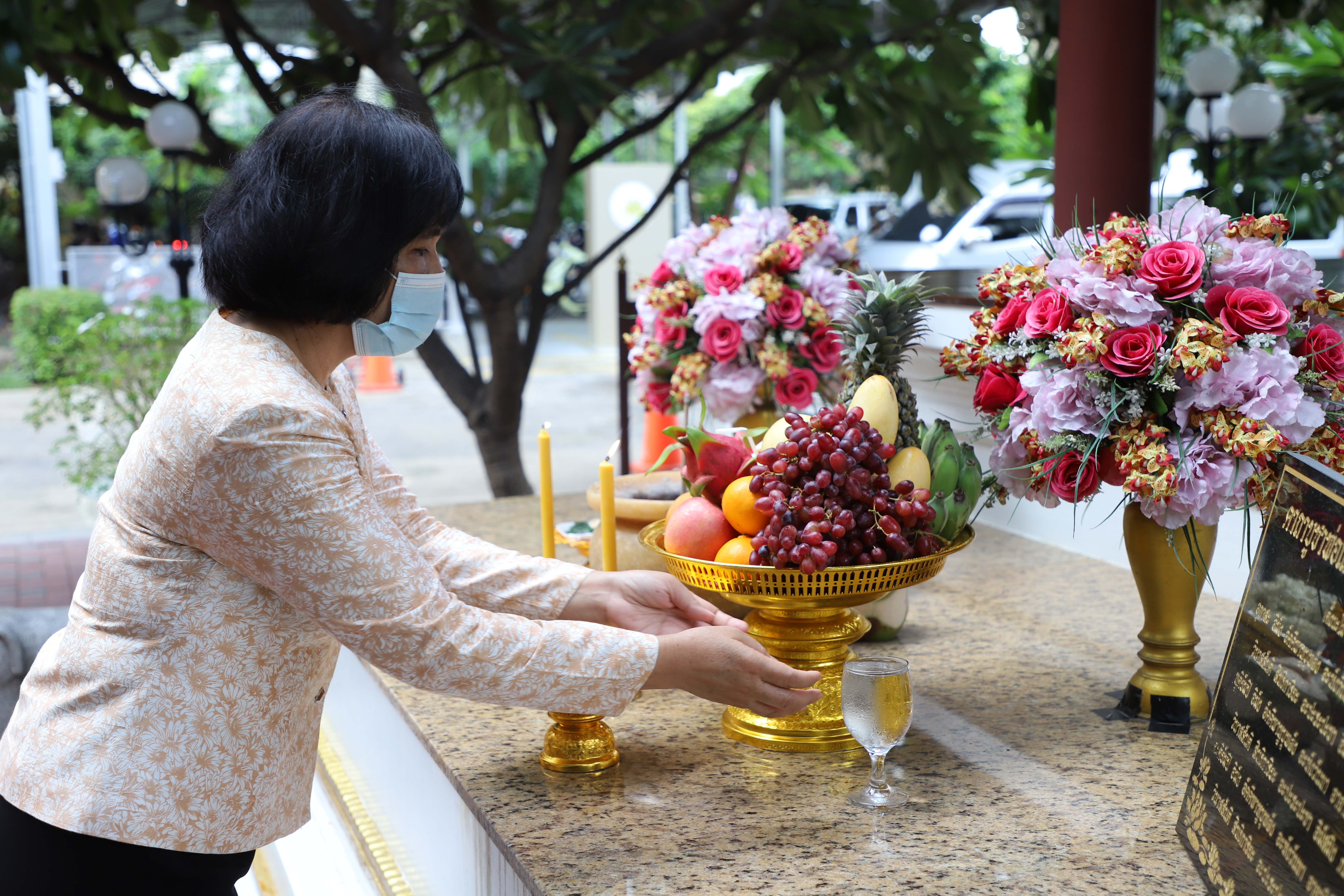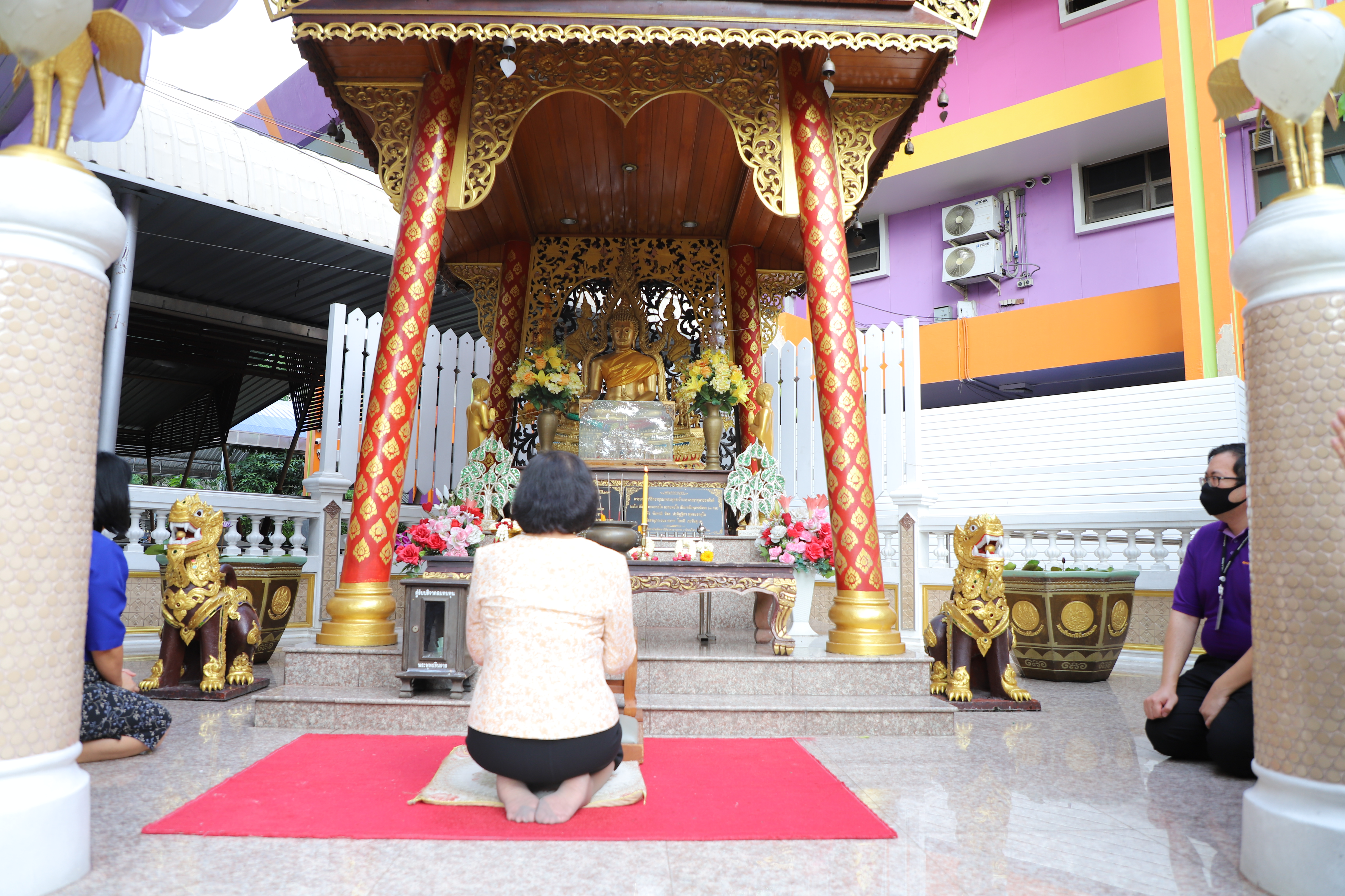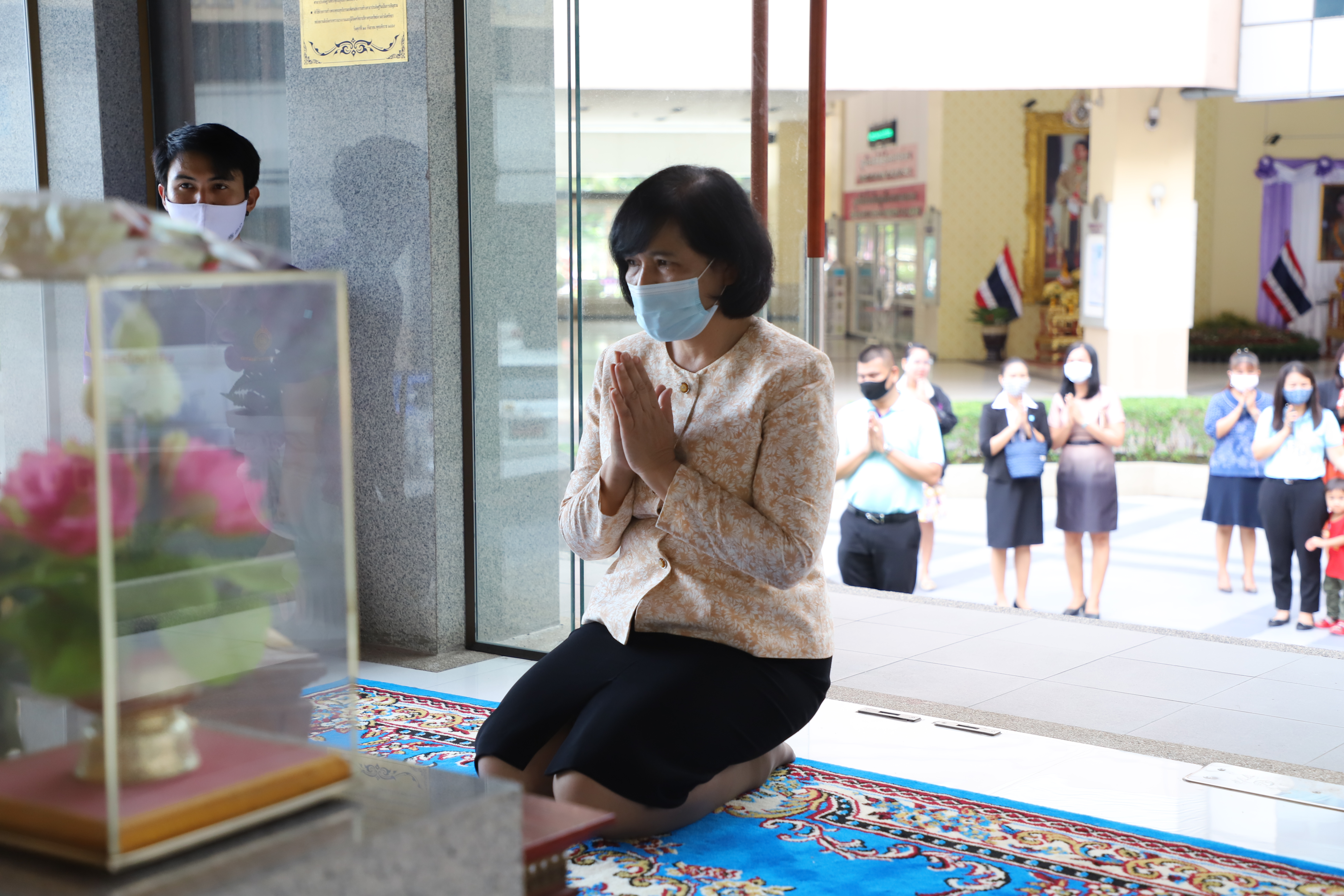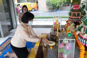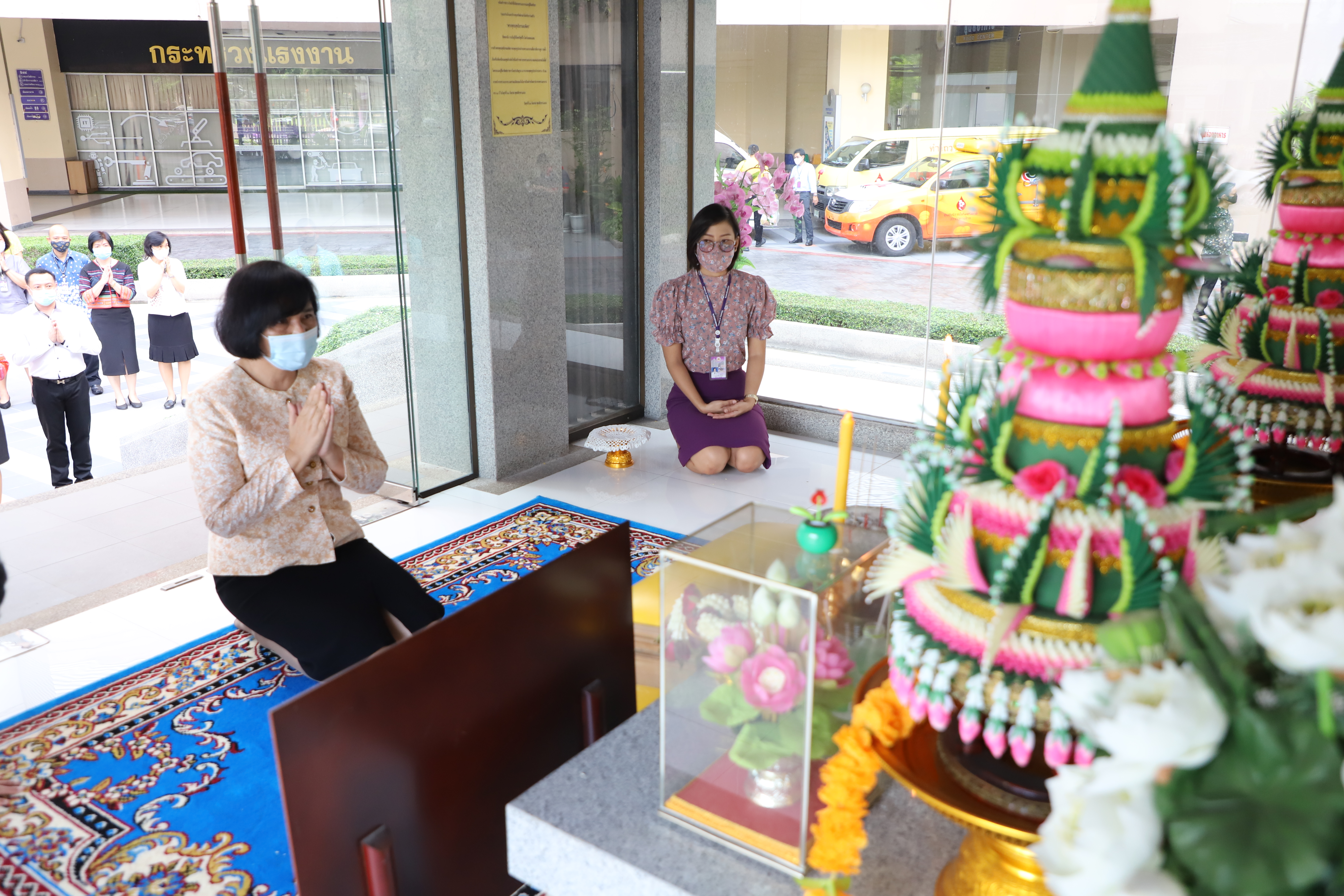 On June 5, 2020, at 09.00 hours, Assistant to the Permanent Secretary of Labour Mrs. Tongjai Suthat Na Ayutthaya paid homage to the sacred items at the Ministry of Labour, including Phra Phut Sutthitham Bophit, Phra Phut Chinnarat, San Por Pu Chai Mongkhon, San Thao Mahaprom Thewarit and San Por Pu Suchin Promma, on the occasion of appointment to Deputy Permanent Secretary of Labour.