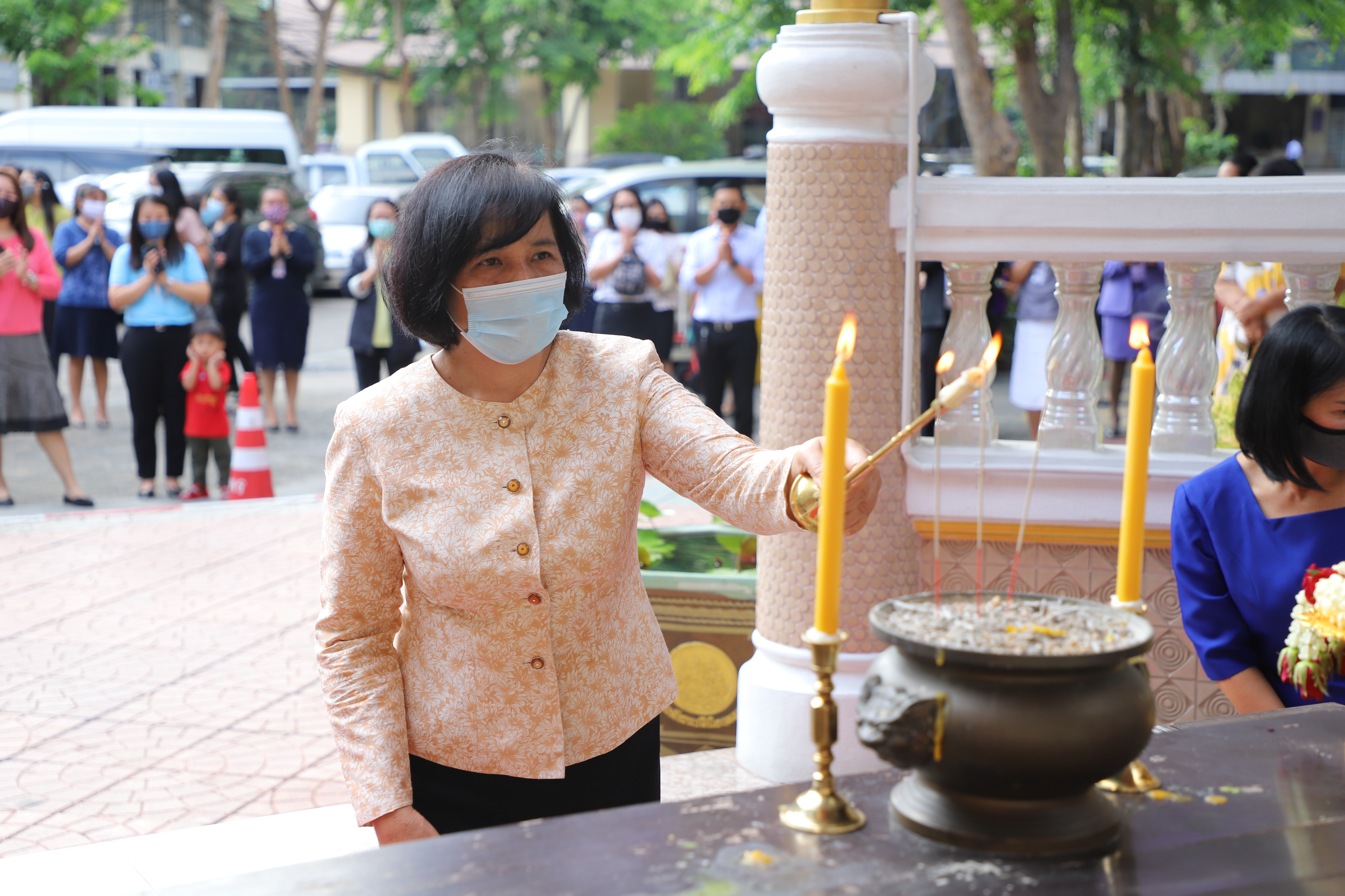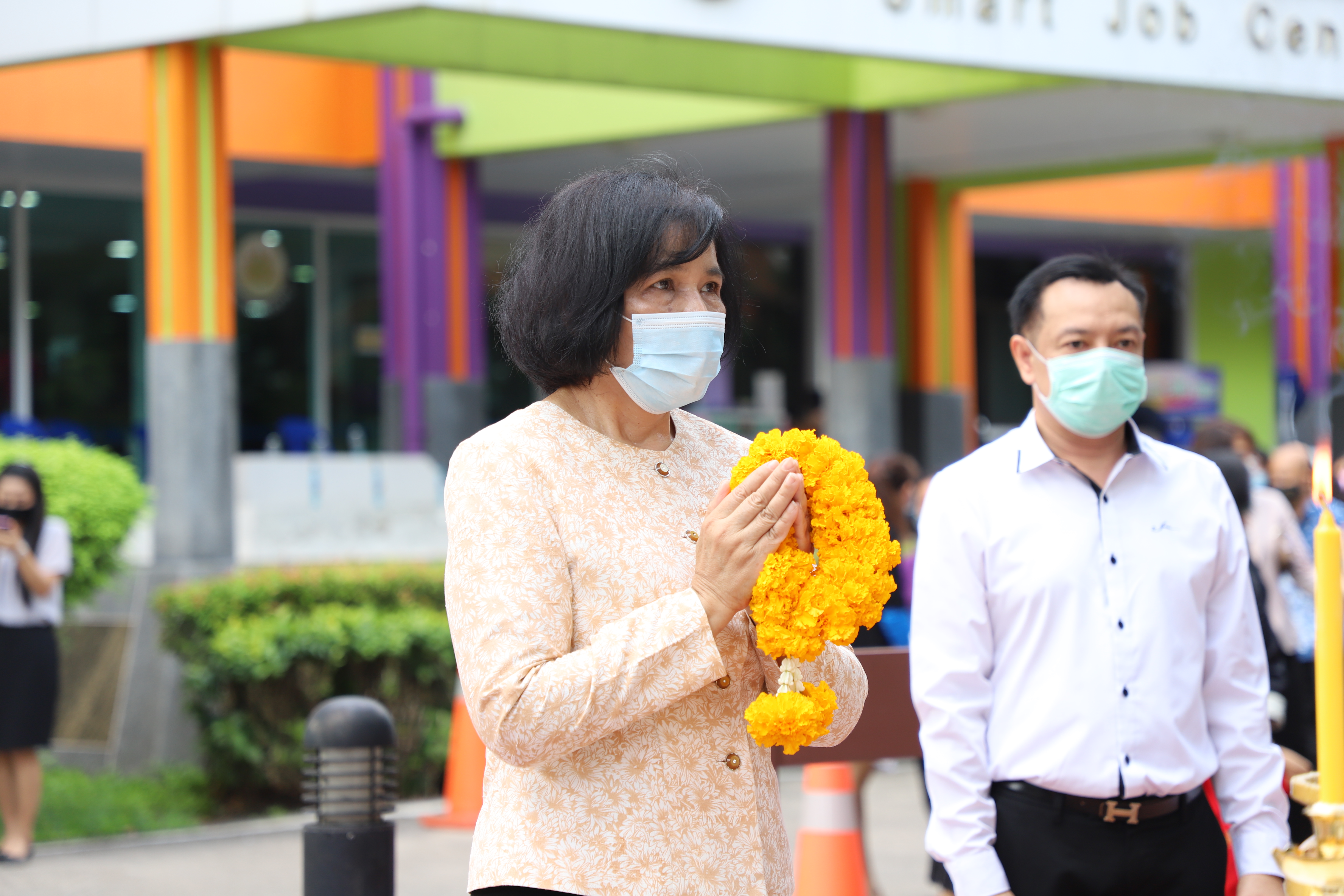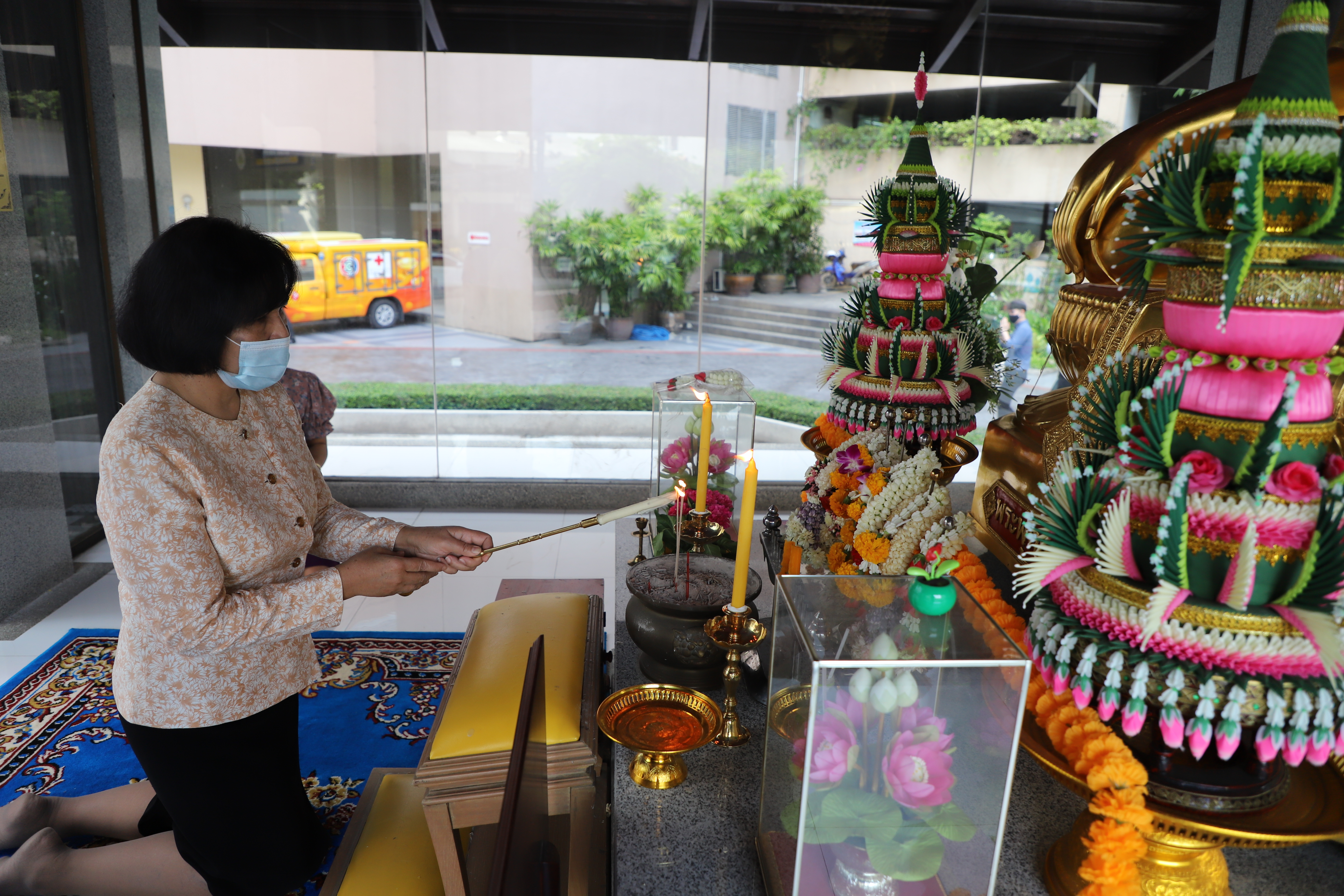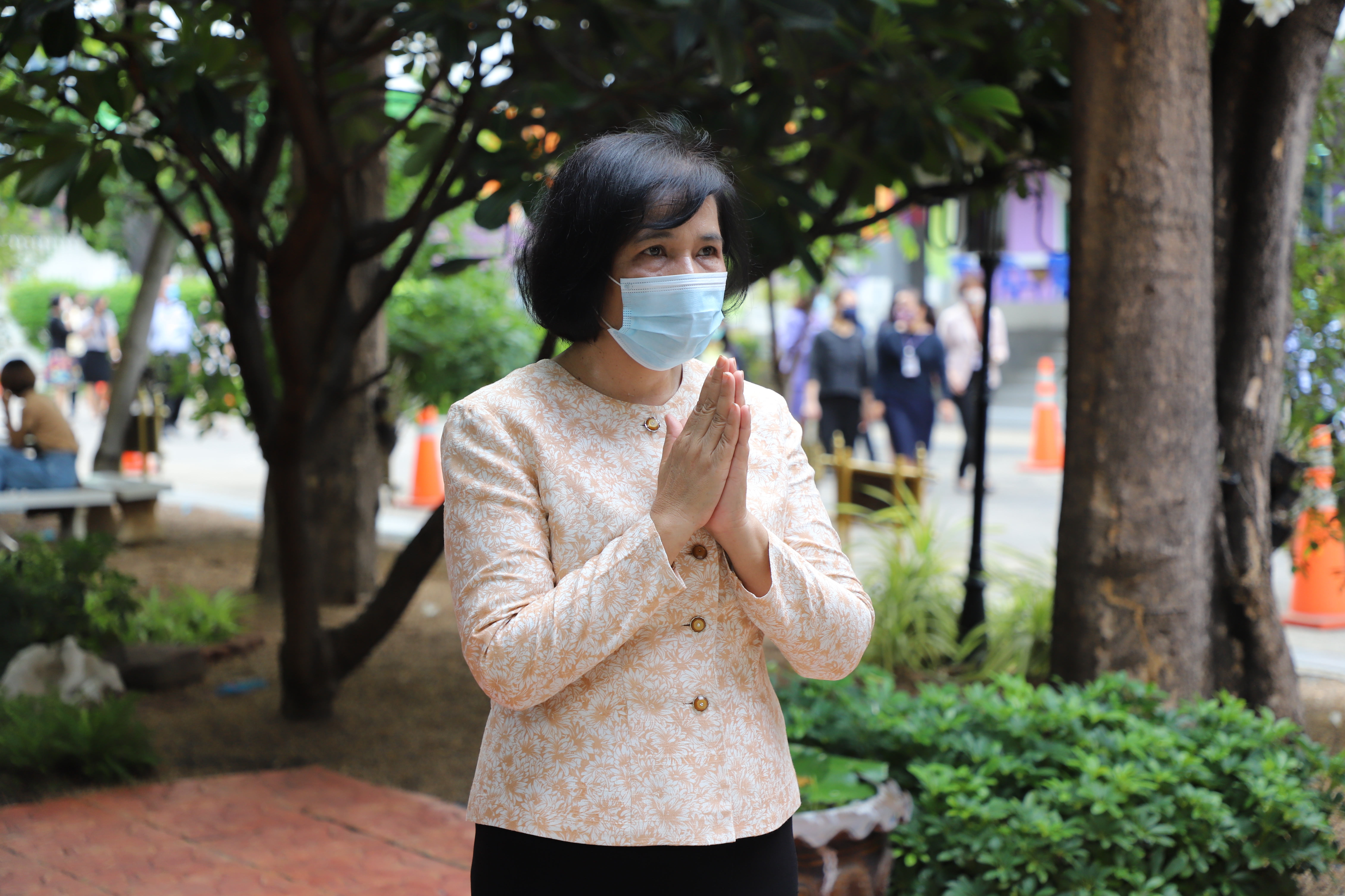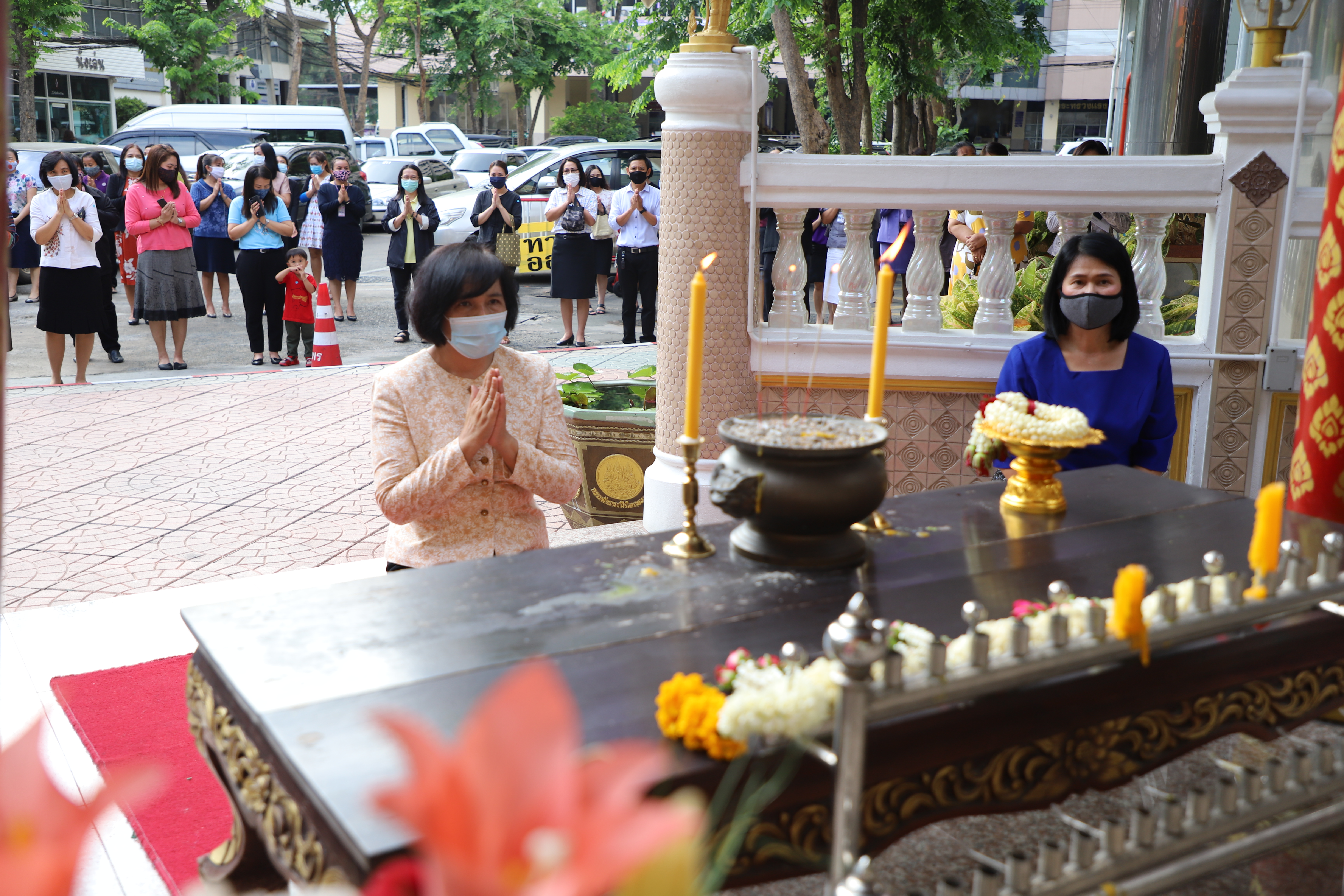 On June 5, 2020, at 09.00 hours, Assistant to the Permanent Secretary of Labour Mrs. Tongjai Suthat Na Ayutthaya paid homage to the sacred items at the Ministry of Labour, including Phra Phut Sutthitham Bophit, Phra Phut Chinnarat, San Por Pu Chai Mongkhon, San Thao Mahaprom Thewarit and San Por Pu Suchin Promma, on the occasion of appointment to Deputy Permanent Secretary of Labour.