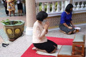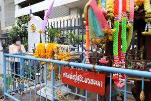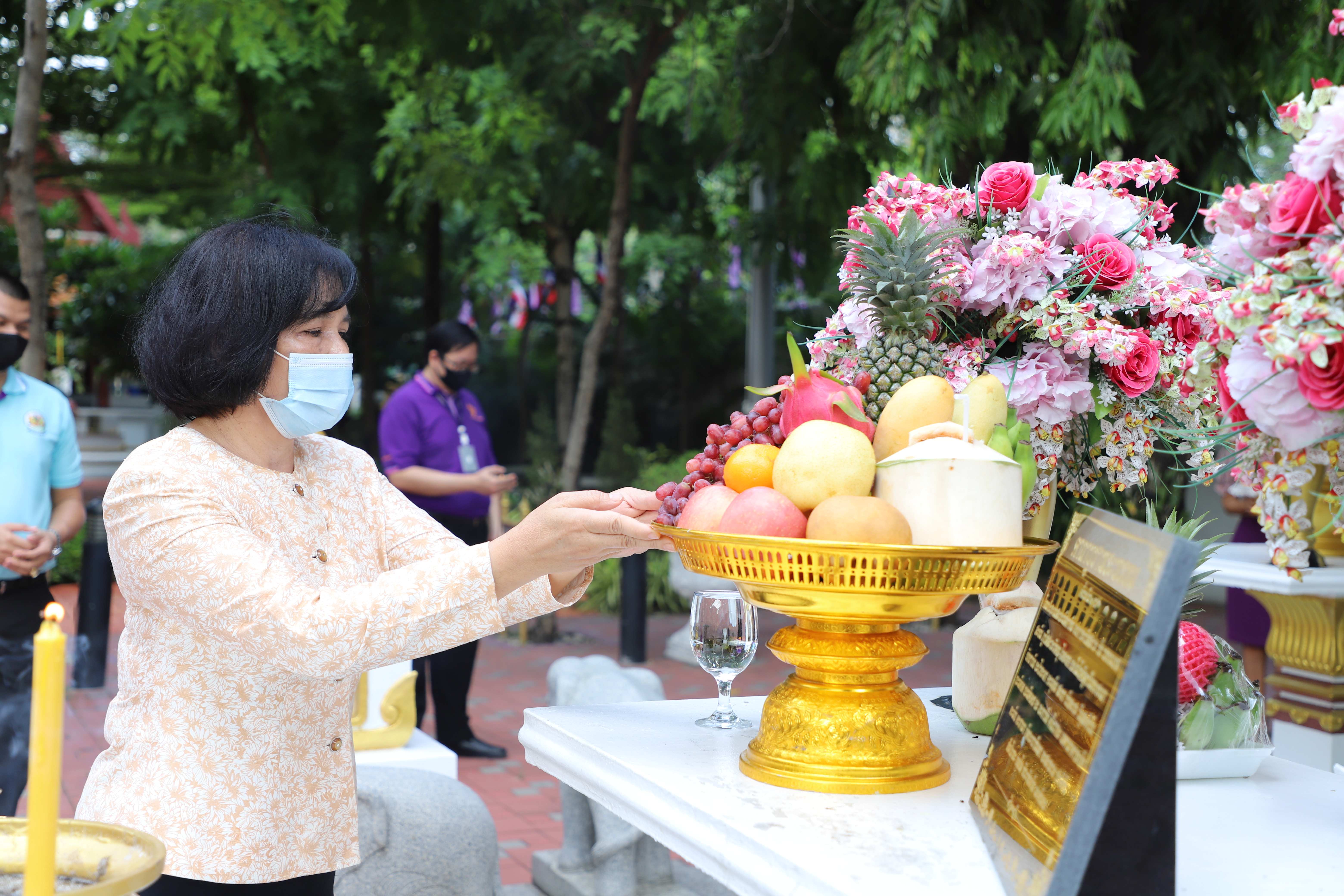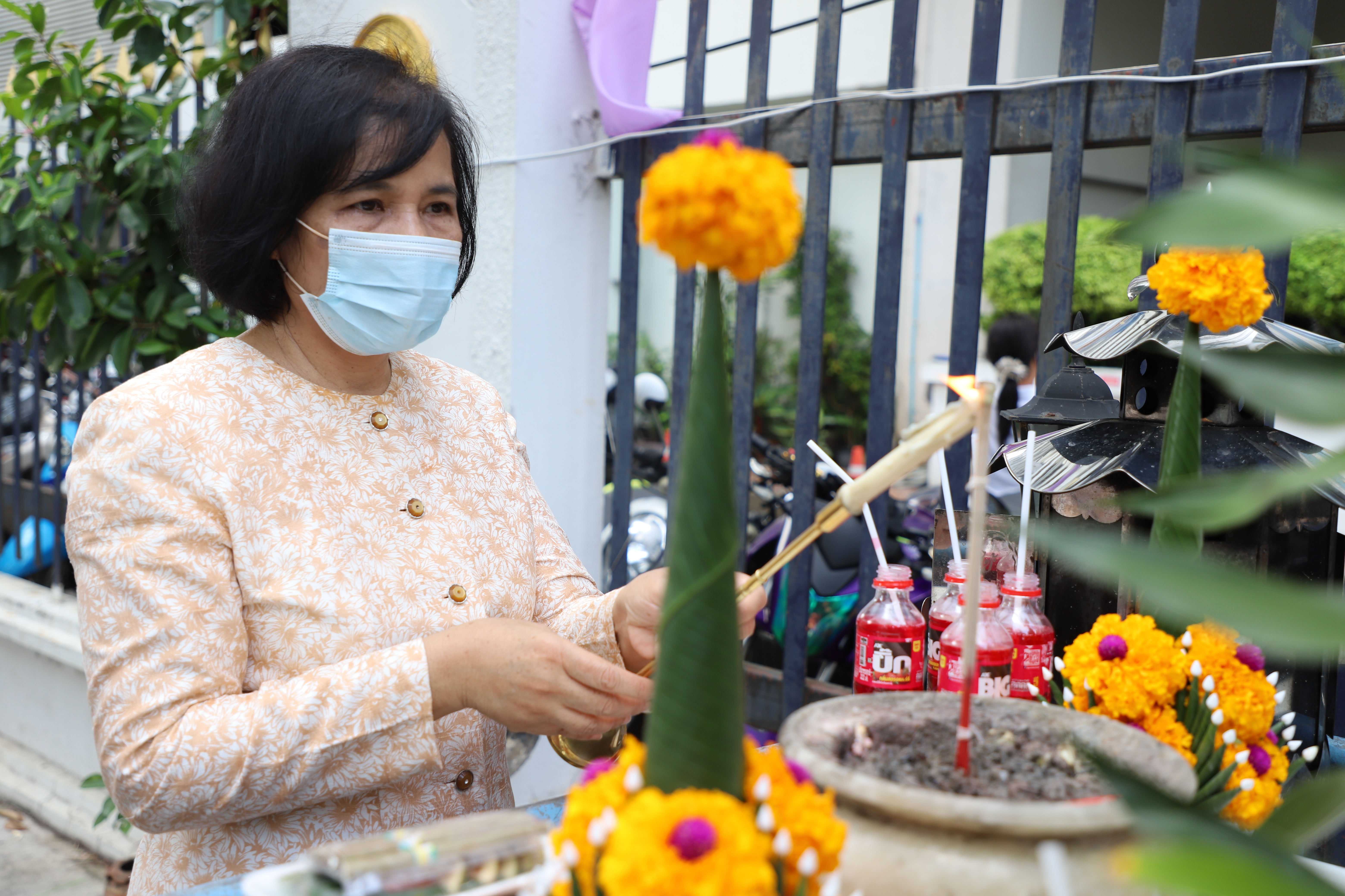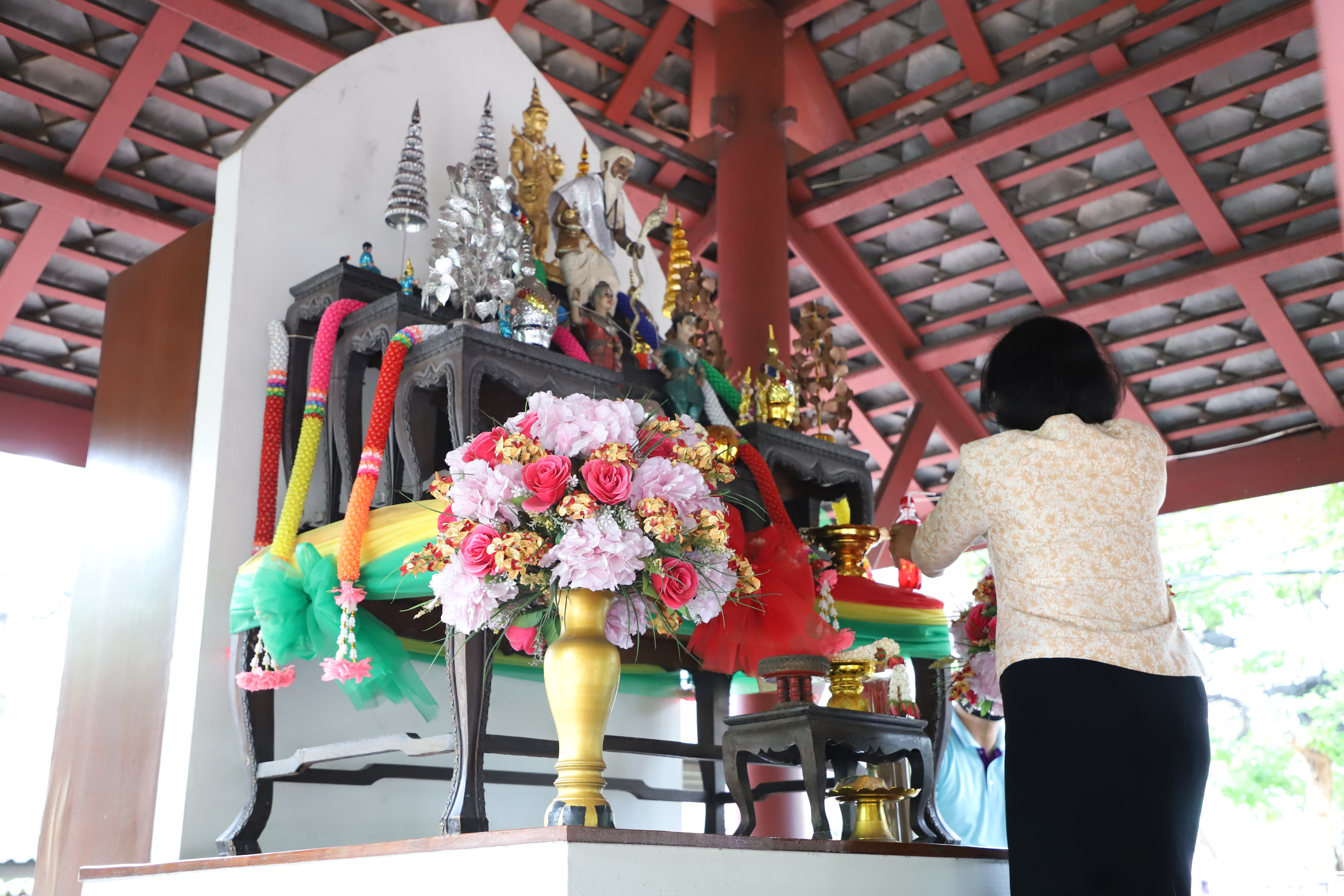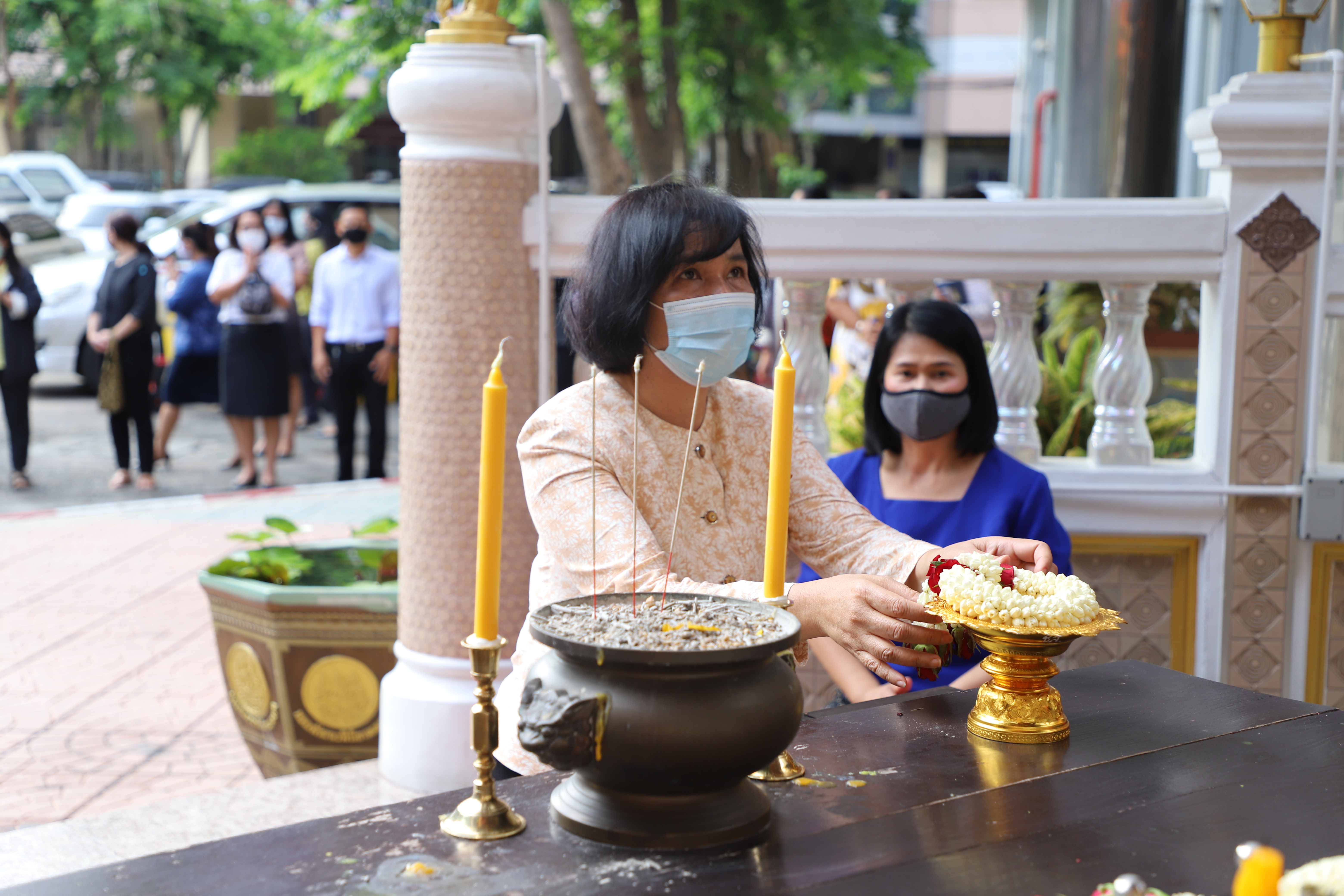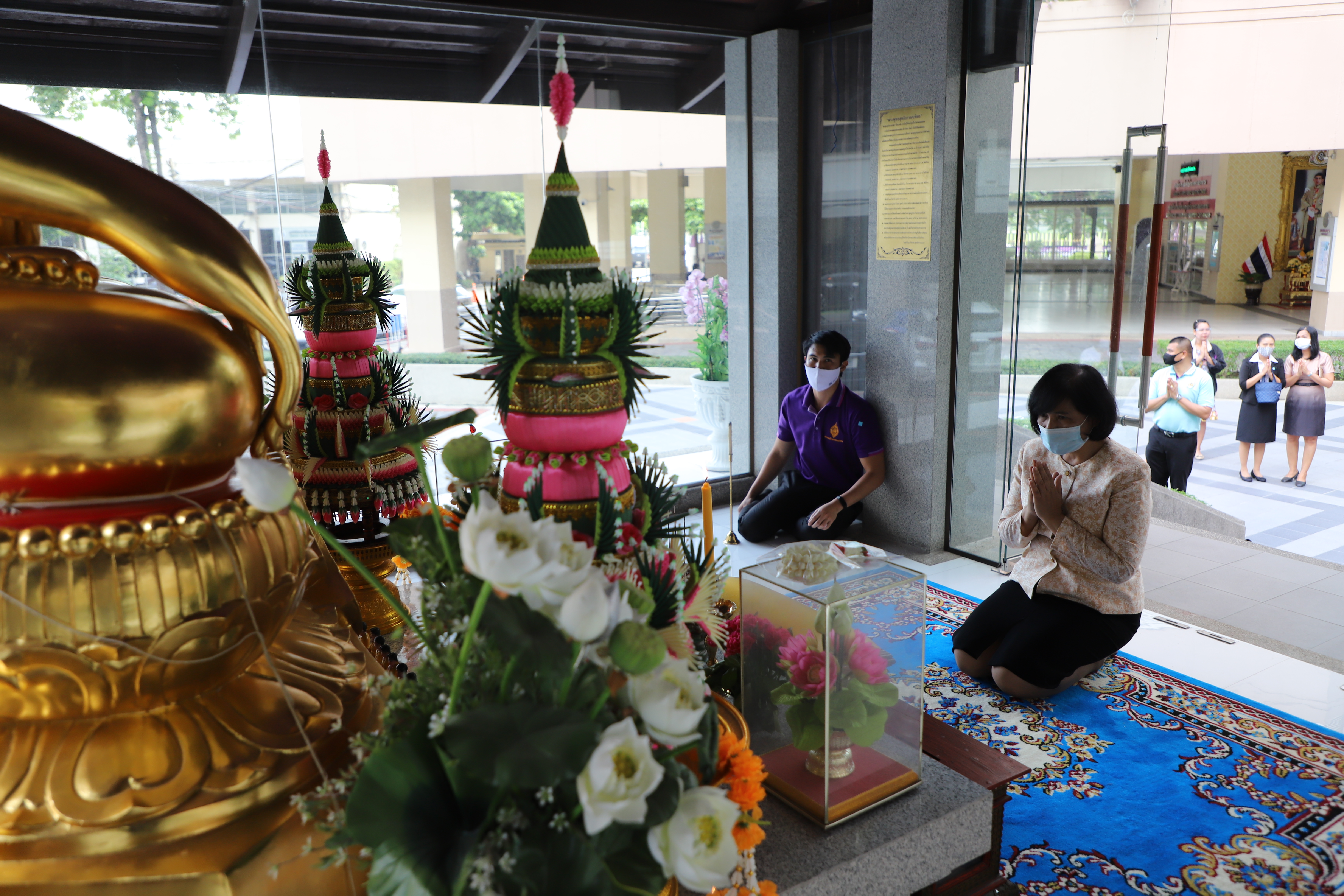 On June 5, 2020, at 09.00 hours, Assistant to the Permanent Secretary of Labour Mrs. Tongjai Suthat Na Ayutthaya paid homage to the sacred items at the Ministry of Labour, including Phra Phut Sutthitham Bophit, Phra Phut Chinnarat, San Por Pu Chai Mongkhon, San Thao Mahaprom Thewarit and San Por Pu Suchin Promma, on the occasion of appointment to Deputy Permanent Secretary of Labour.