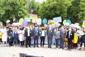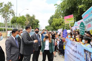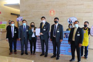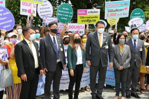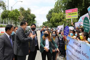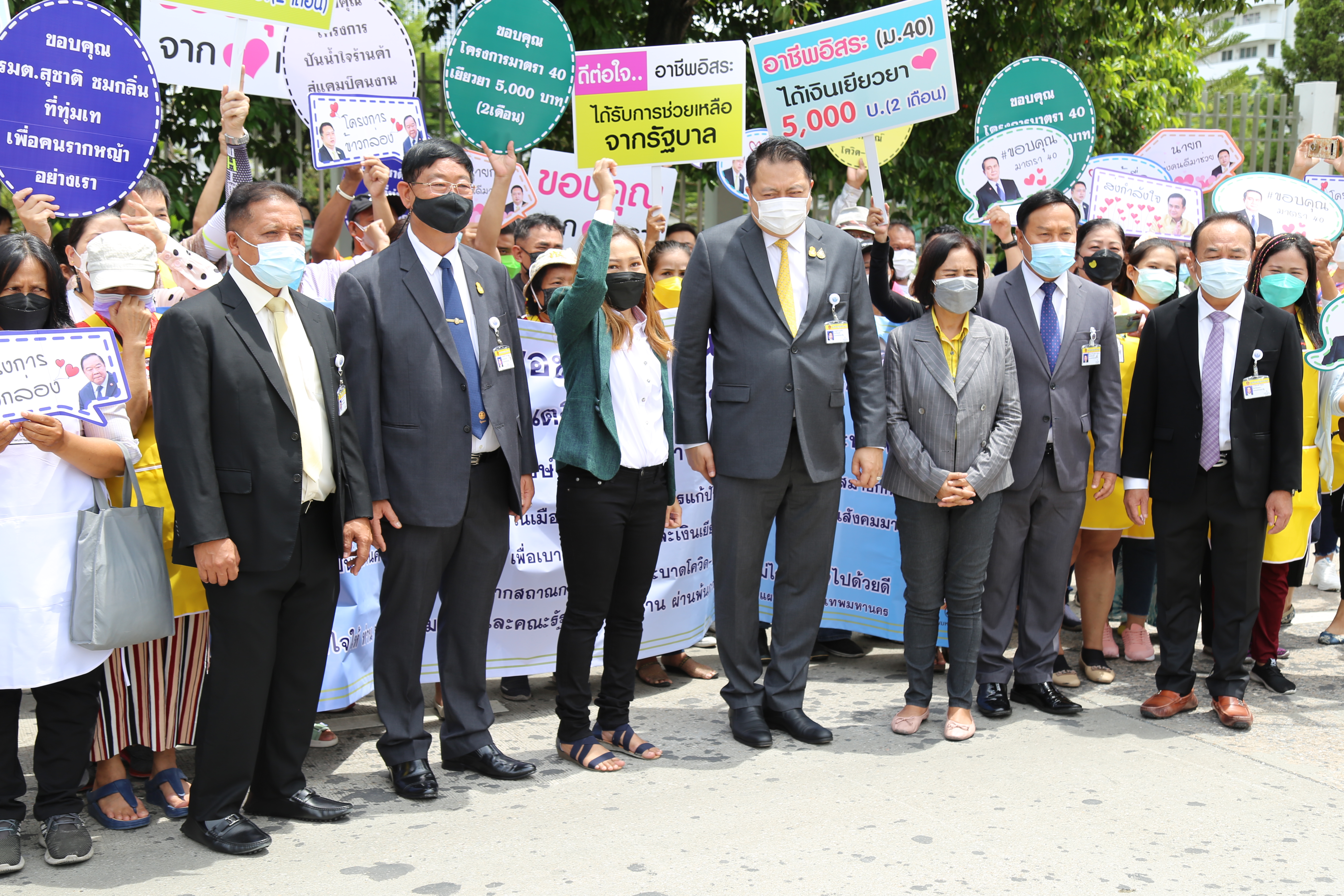 On September 2, 2021, a group of labour leaders led by the Chairman of the Bangkok Street Hawker Club, Ms. Yada Phornpetchrampha, led members to submit a letter of thanks and encouragement to the Prime Minister and Minister of Defense General Prayuth Chan-ocha and Deputy Prime Minister General Prawit Wongsuwan. The Prime Minister assigned Labour Minister Mr. Suchart Chomklin to receive the letter on his behalf. Mr. Sompong Sophon, Member of the House of Representatives of Rayong Province, Mr. Surasak Chingnawan, Member of the House of Representatives of Sa Kaeo Province, Mr. Watchara Yaohasan, Member of the House of Representatives of Narathiwat Province and Police Lieutenant Colonel Thanaphat Kittiwongsa, Member of the House of Representatives of Chanthaburi Province also participated in this occasion, which took place at the letter submission point, first floor, Parliament Building (Kiakkai).