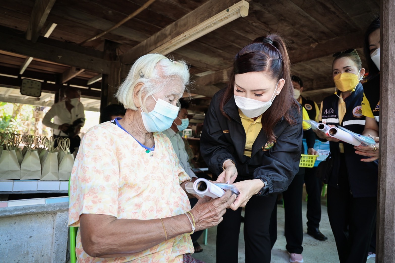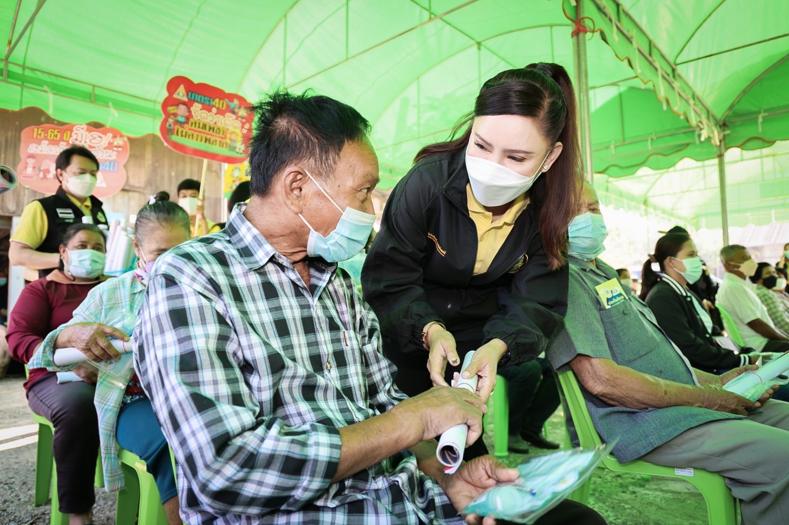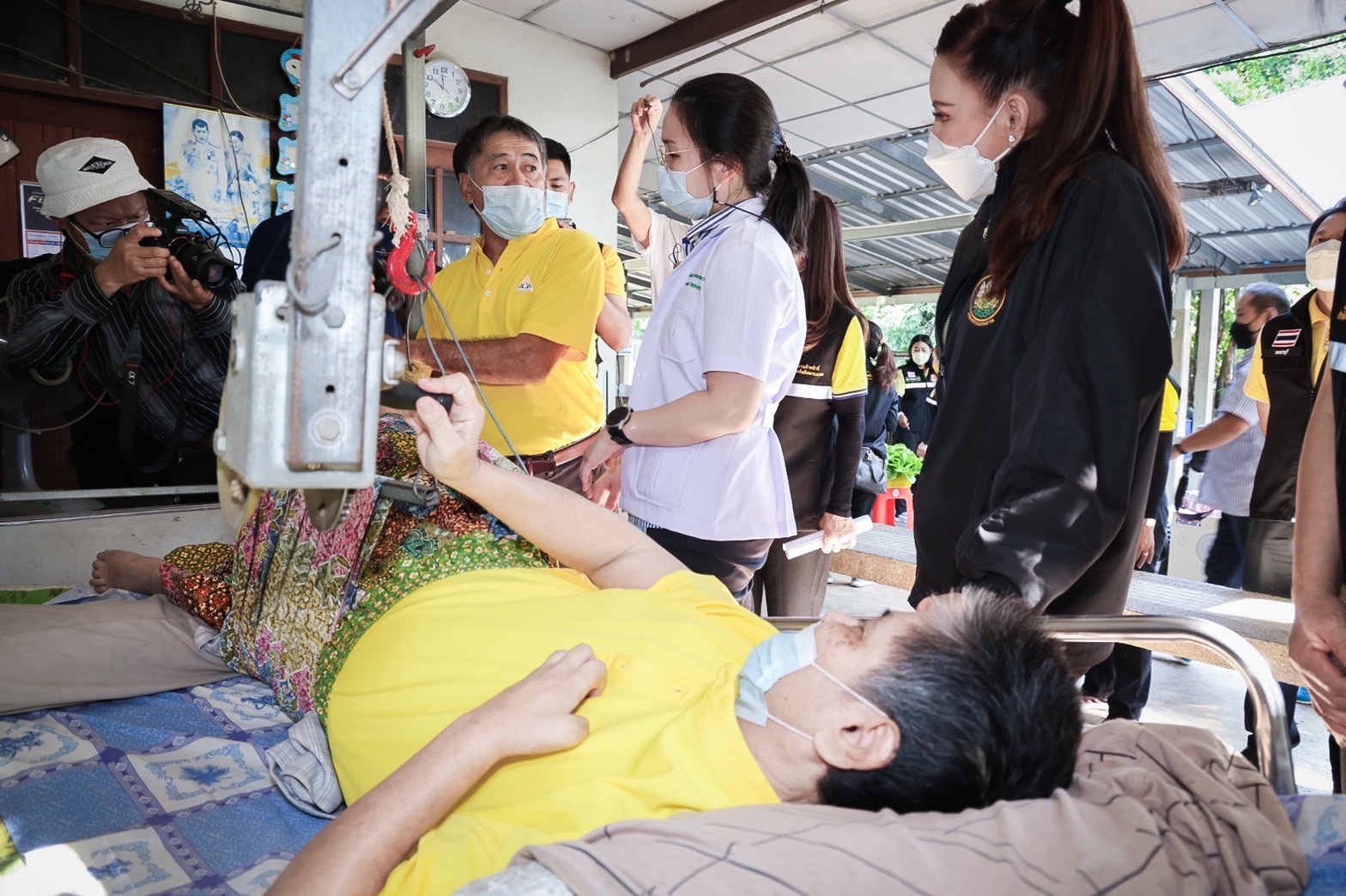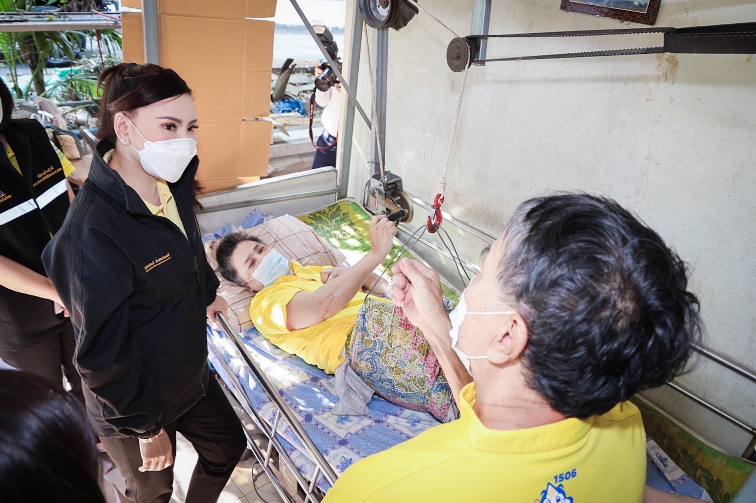 On December 22, 2021, Labour Minister Mr. Suchart Chomklin assigned the Labour Minister’s Advisor, Mrs. Thiwalrat Angkinan, and the Ministry of Labour’s Spokesperson (on politics), Mrs. Theanrat Nawamawat, to visit insured persons with disabilities in Phetchaburi Province. The Social Security Office’s Secretary-General, Mr. Boonsong Thapchaiyut, assigned the Social Security Office’s Inspector-General, Mrs. Wantana Natthaphunwat, and heads of government agencies under the Ministry of Labour in Phetchaburi Province also participated in the event. Physical therapists from the Pathum Thani Workers’ Rehabilitation Center, Region 1, joined the visit to recommend physical therapy sessions and basic self-help for three insured persons with disabilities this time.