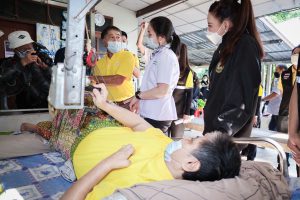 The Social Security Office’s Inspector-General Mrs. Wantana Natthaphunwat, revealed that she was assigned by the Social Security Office’s Secretary-General, Mr. Boonsong Thapchaiyut, to join the team to visit the area with the Advisor to the Labour Minister, to bring consumer goods, consumables, and various appliances to insured persons with disabilities. The effort aims to build morale and encouragement for the insured persons under the supervision of the Phetchaburi Provincial Social Security Office. They visited the residences of the following three people: