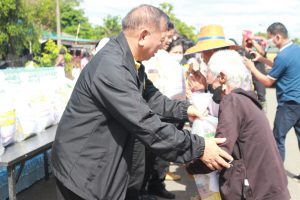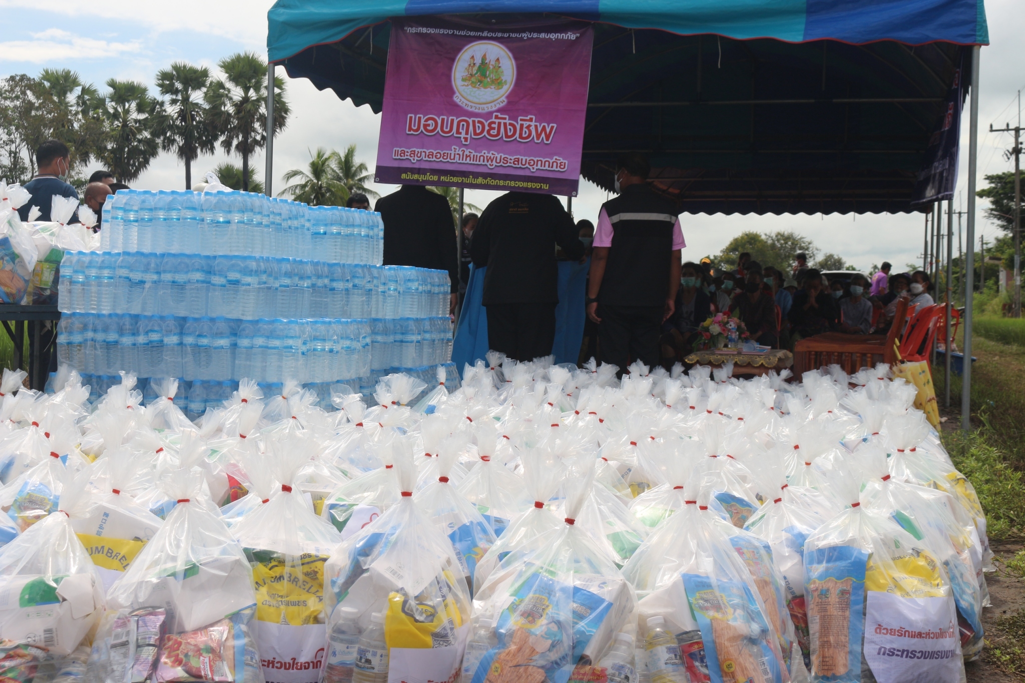 On October 8, 2022, at 11.00 hours, the Labour Minister, Mr. Suchart Chomklin, assigned the Assistant Minister from the Prime Minister’s Office performing duties for the Ministry of Labour, Mr. Pornsak Charoenprasert, to visit Sisaket Province to donate relief bags to flood victims. The Prime Minister and Minister of Defense, General Prayuth Chan-ocha, and the Labour Minister, Mr. Suchart Chomklin, are concerned for the people affected by the floods. The bags were donated to help alleviate the suffering of the people. Advisor to the Labour Minister Mr. Thanakrit Jirivipakorn, Advisory Council to the Labour Minister Mr. Pongsak Ariyasunthonkul, member of the Sisaket Provincial Administrative Organization Council, District 1, Uthumphon Phisai, Mr. Theerapat Phokham, and agencies under the Ministry of Labour in Sisaket Province joined the donation of 128 relief bags to victims in Thung Chai Subdistrict, Uthumphon Phisai District, Sisaket Province. At 13.00 hours, they donated 126 relief bags to victims in Khayung Subdistrict, Uthumphon Phisai District, Sisaket Province.