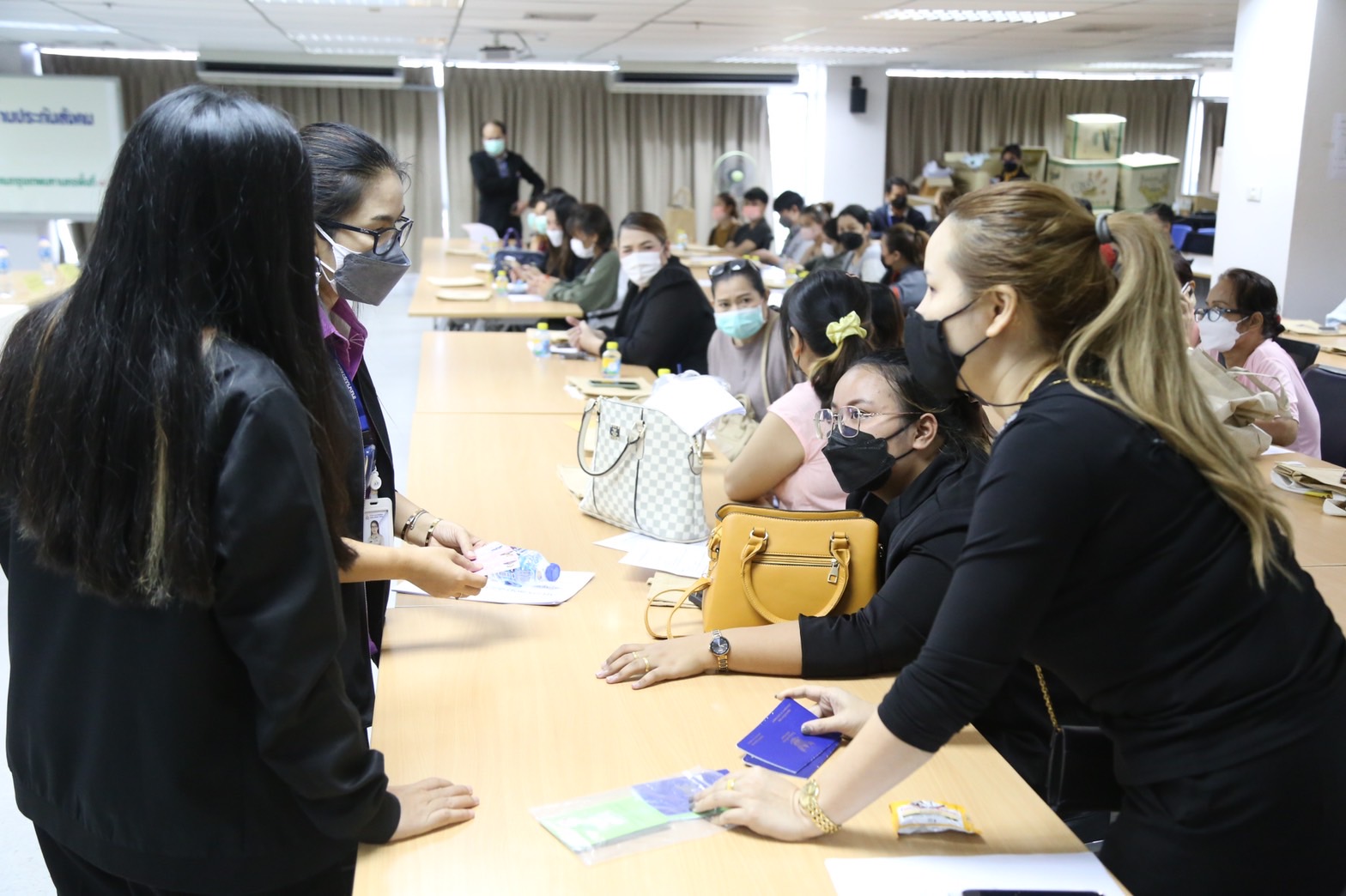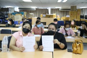 The Deputy Permanent Secretary of Labour and the Ministry of Labour’s spokesperson, Mrs. Bubpha Phanpeng, said that today, she was assigned by the Labour Minister, Mr. Suchart Chomklin, to visit the area to clarify understanding of such issues regarding various benefits to employees. The branch manager brought 50 employees to apply for unemployment benefits at the Bangkok Social Security Office Area 8. In addition, the Bangkok Employment Office Area 3 has set up job applications. Over 1,000 vacancies are available in various business establishments, such as Central Retail and Thai Beverage, for employees to apply for jobs and provide initial alleviation from suffering.