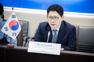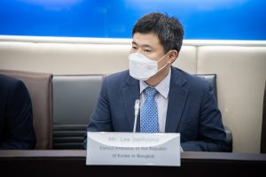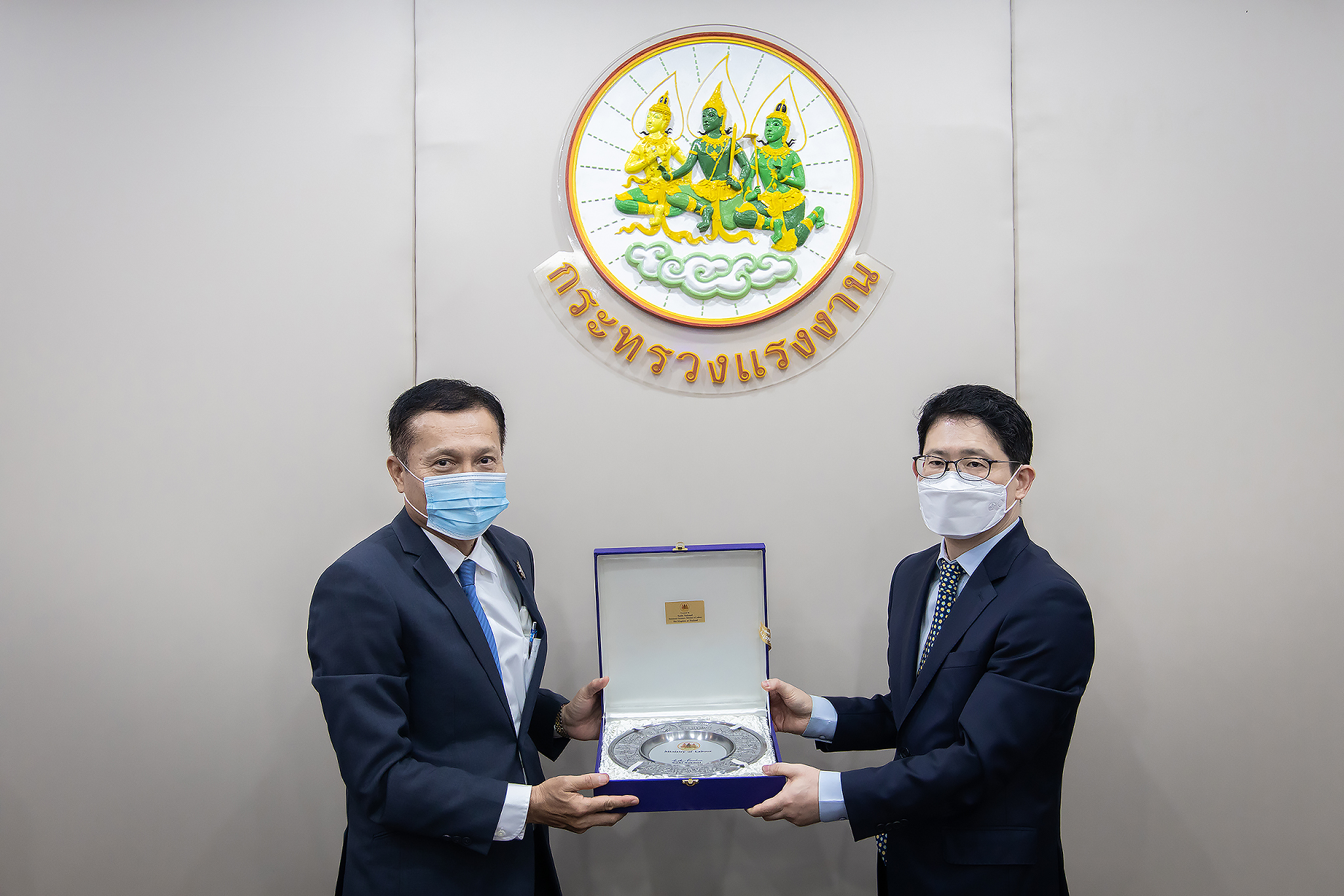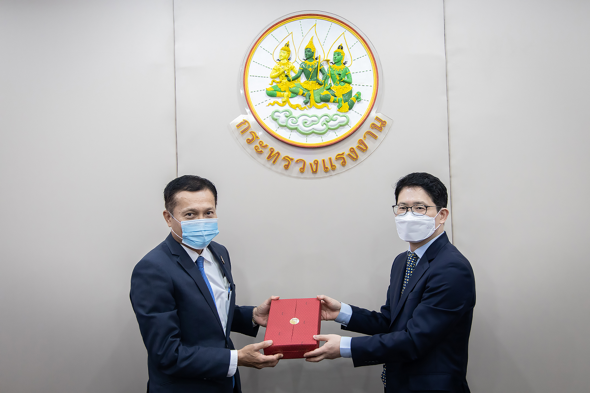 Today (September 1, 2020) at 15.00 hours, Permanent Secretary of Labour Mr. Suthi Sukosol and Director-General of the Department of Employment Mr. Suchart Pornchaiwisetkun, welcomed Consul-General from the Embassy of the Republic of Korea to Thailand Mr. Ha Tae-uk and delegation, to discuss and publicize information about the Employment Permit System (EPS). The system will ensure that the information between the two countries is consistent and up to date. The meeting took place at the meeting room of the Permanent Secretary of Labour, 7th floor, Ministry of Labour.