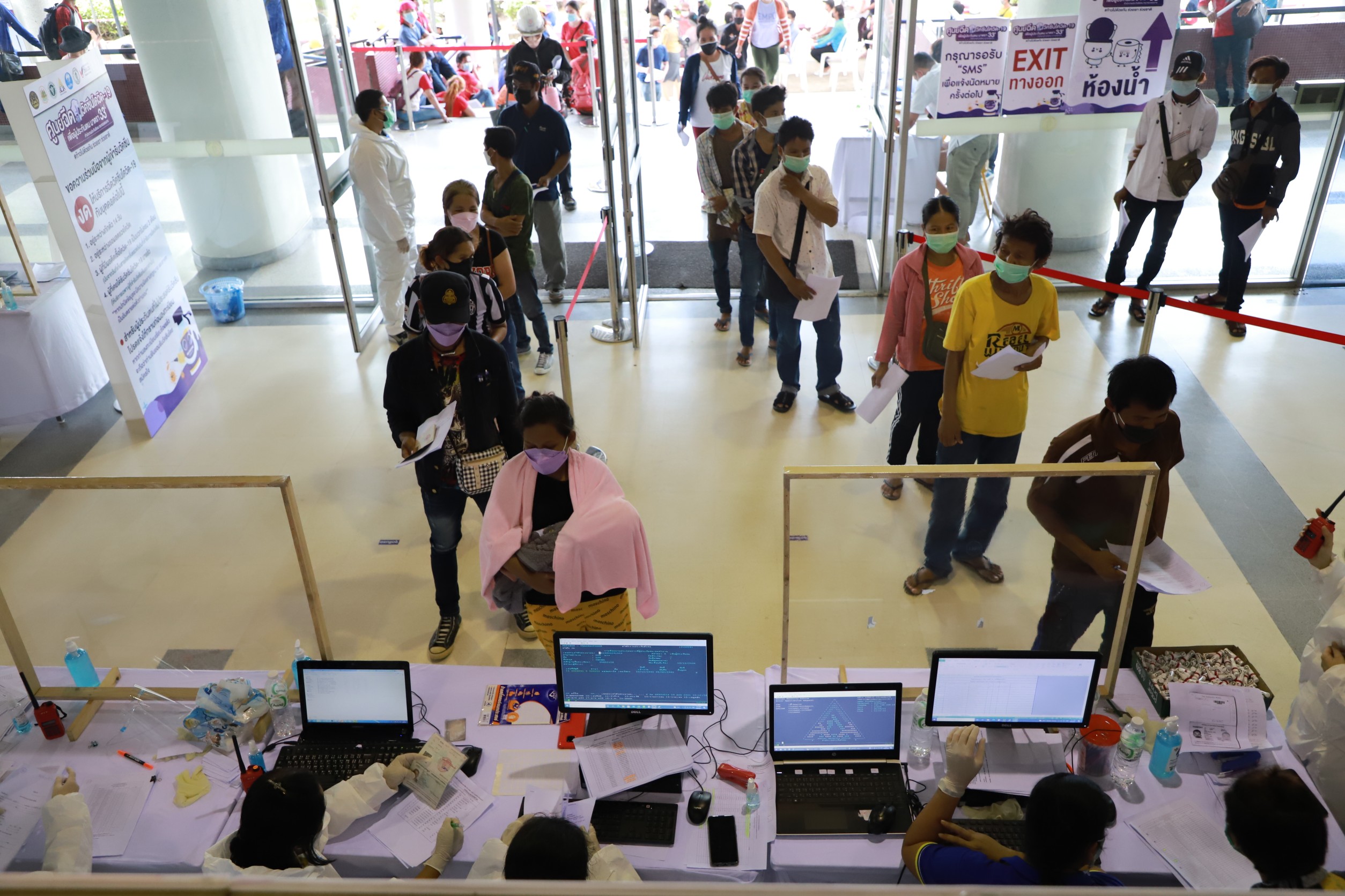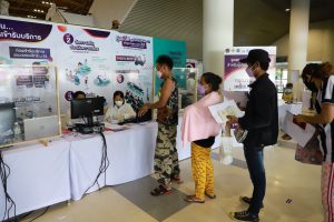 Mr. Suchart said that today was the first day that the Ministry of Labour, together with hospitals in the social security network, the Ministry of Interior, and the Bangkok Metropolitan Administration, opened the worker camp vaccination center at the West Sports Building 1, Bangkok Youth Center (Thai-Japan), Din Daeng District, Bangkok. The facility can vaccinate 2,000 people daily and is supported by a team of doctors and nurses from Vichaivej International Hospital, Samut Sakhon. There is another facility at Lumpini Tower on Vibhavadi Road, Chomphon, Chatuchak District, Bangkok. The facility can vaccinate 1,500 people daily and is supported by a team of doctors, nurses, pharmacists, and medical personnel from Kasemrad Inter Hospital. Both worker camp vaccination centers will be available from August 9 to 31, except on Saturdays and Sundays.