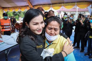 On December 9, 2020, Deputy Labour Minister Prof. Narumon Pinyosinwat and Deputy Minister of Agriculture and Cooperatives Capt. Thammanat Prompao led a team of staff to deliver over 1,000 survival bags to help flood victims in the southern regions, in Nakhon Si Thammarat and Surat Thani Province. They listened to the people’s problems and needs after the flood subsided and visited the Temporary Shelter Center in Hu Long, Pak Phanang, Nakhon Si Thammarat. They gave words of encouragement and distributed 500 sets of subsistence bags to flood victims. Nakhon Si Thammarat Governor Mr. Kraisorn, Wisitwong, and heads of government agencies also joined and facilitated the visit. In addition, they visited the Nakhon Si Thammarat Skill Development Institute 22 and organized a mobile service to repair home electrical equipment to alleviate the suffering of flood victims.