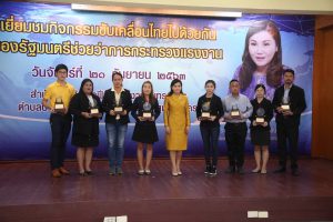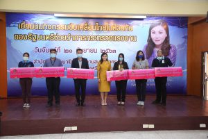 In addition, the Deputy Labour Minister was the representative of the grant or support from the Skill Development Fund to organizations that supports the development of skills for their employees for over 70 percent of their workforce. The Samut Sakhon Social Security Office selected the eight organizations. Prof. Narumol also presented the “Mother’s Milk Corner” label to organizations that provide welfare to employees totaling six companies. She then visited the automation training demonstration career and observed training for embroidery worker groups, and homeworker groups in Ban Khok Kham tie-dye, and fabric weaving of bags and baskets with plastic threads by the elderly. She also observed a demonstration of “Mother’s Milk Corner” and health check-up services to people who attended the event today.