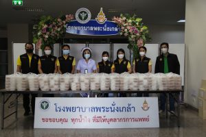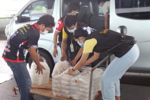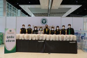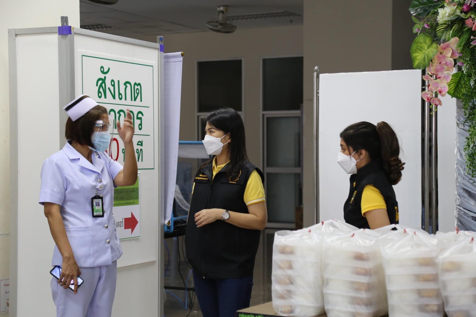 On August 1, 2021, Deputy Labour Minister Prof. Narumon Pinyosinwat reported that the increase in COVID-19 cases during this period has resulted in all sectors continuing to use their full potential to support the people. In the past, she received food boxes supported by businesses, department stores, shops, and the people, to deliver to various areas such as people in construction worker camps, medical personnel stationed in both the main hospitals and the field hospitals, and volunteers, including the affected communities. Today, food boxes were delivered to a team of medical personnel in Phranangklao Hospital and Busarakham Hospital as encouragement during these difficult times.