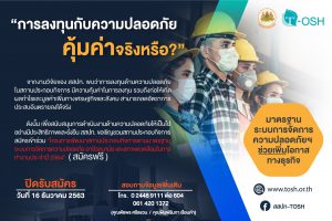 On December 7, 2020, Deputy Labour Minister Prof. Narumon Pinyosinwat revealed that the Thailand Institute of Occupational Safety and Health (Public Organization) (TOSH) had conducted research studies on economic and social value-added to investment in safety in business establishments among 30 organizations. Study results concluded that organizations gain an added economic value of 51,795.53 Baht or equivalent to 3,341.65 Baht/organizations. In addition, when considering the added social value, companies can reduce the number of injuries from 302 to 294 people. Therefore, investment in workplace safety is worthwhile, promoting profits, and added economic and social value, reducing the rate of accidents in the workplace.