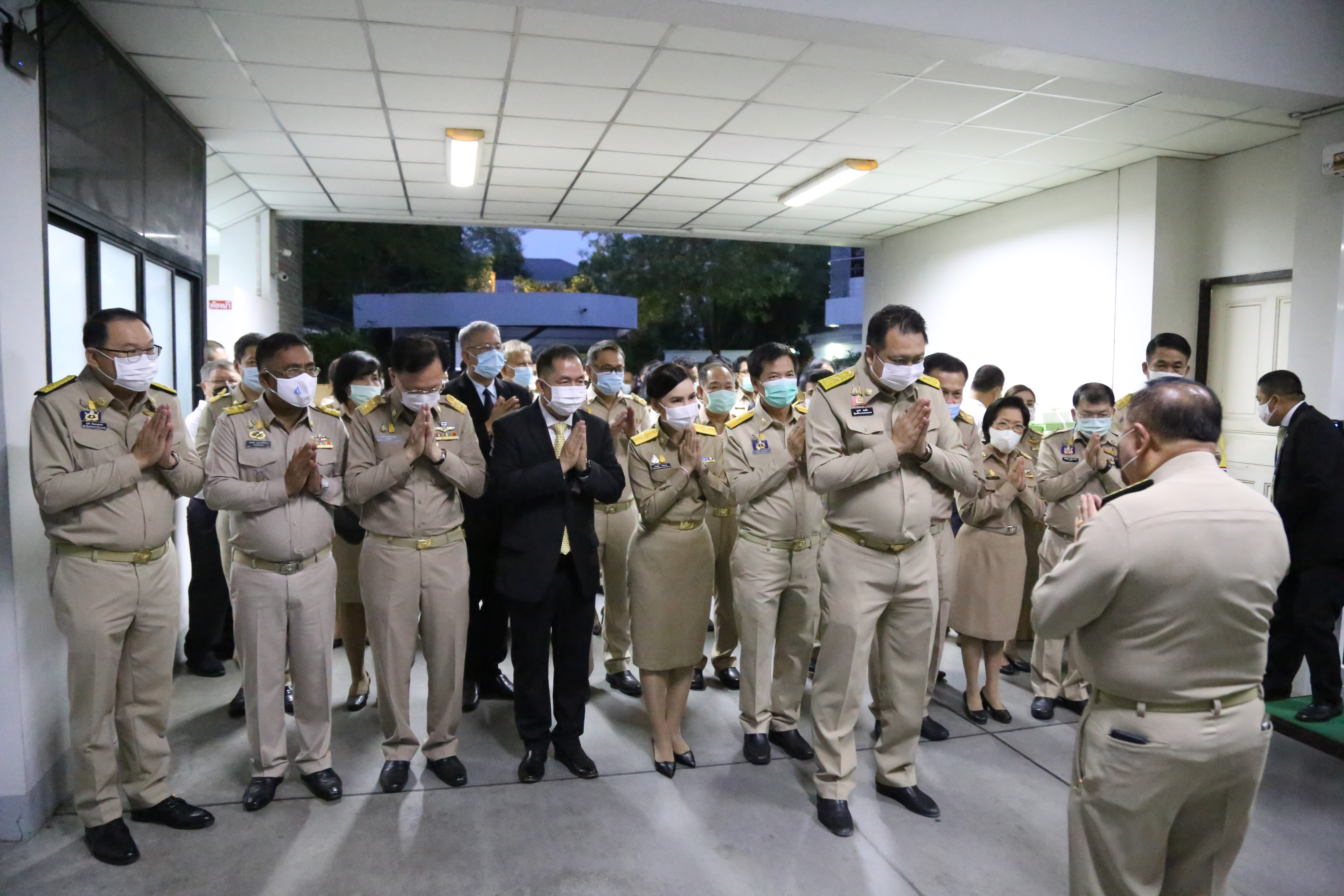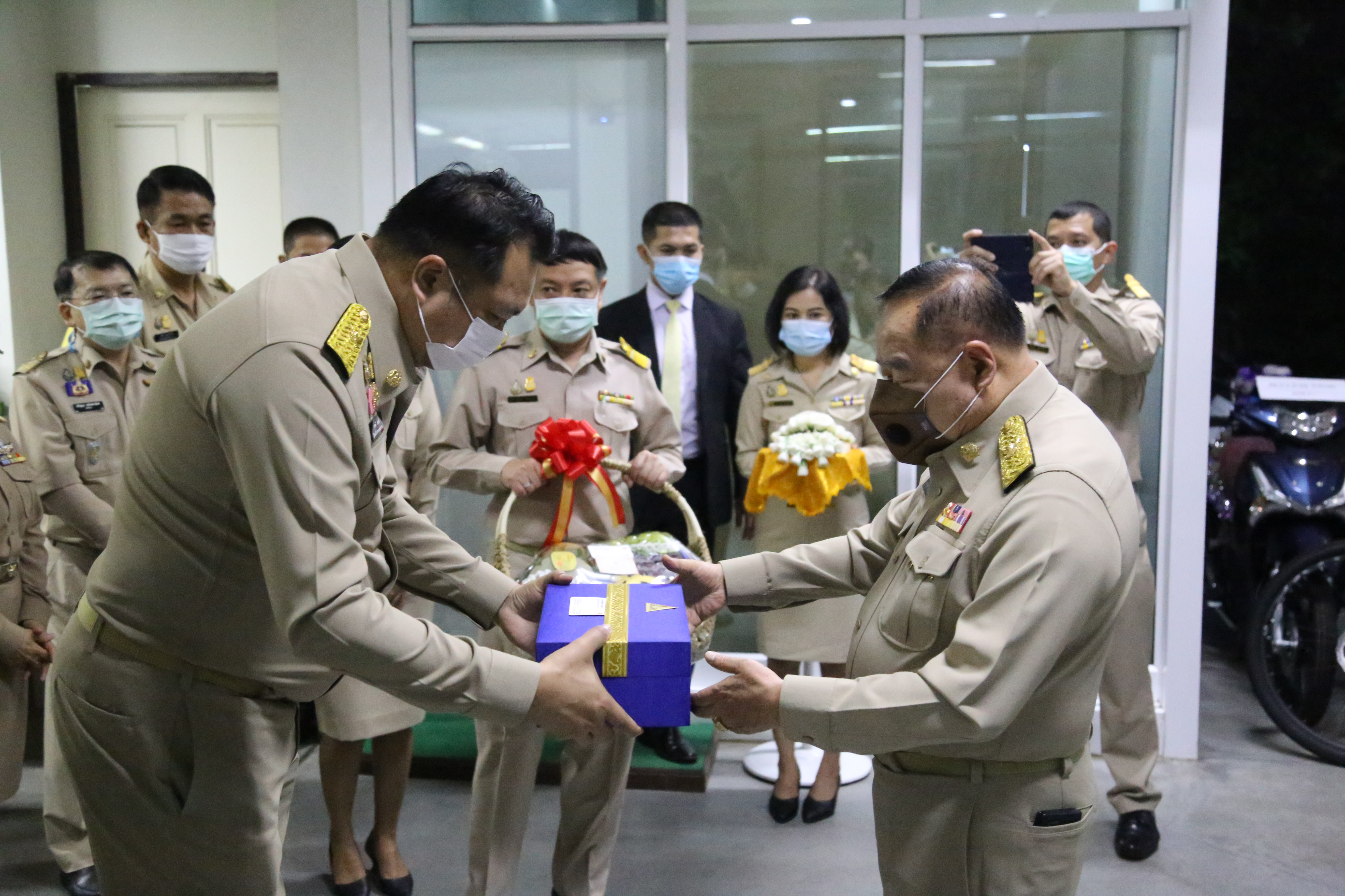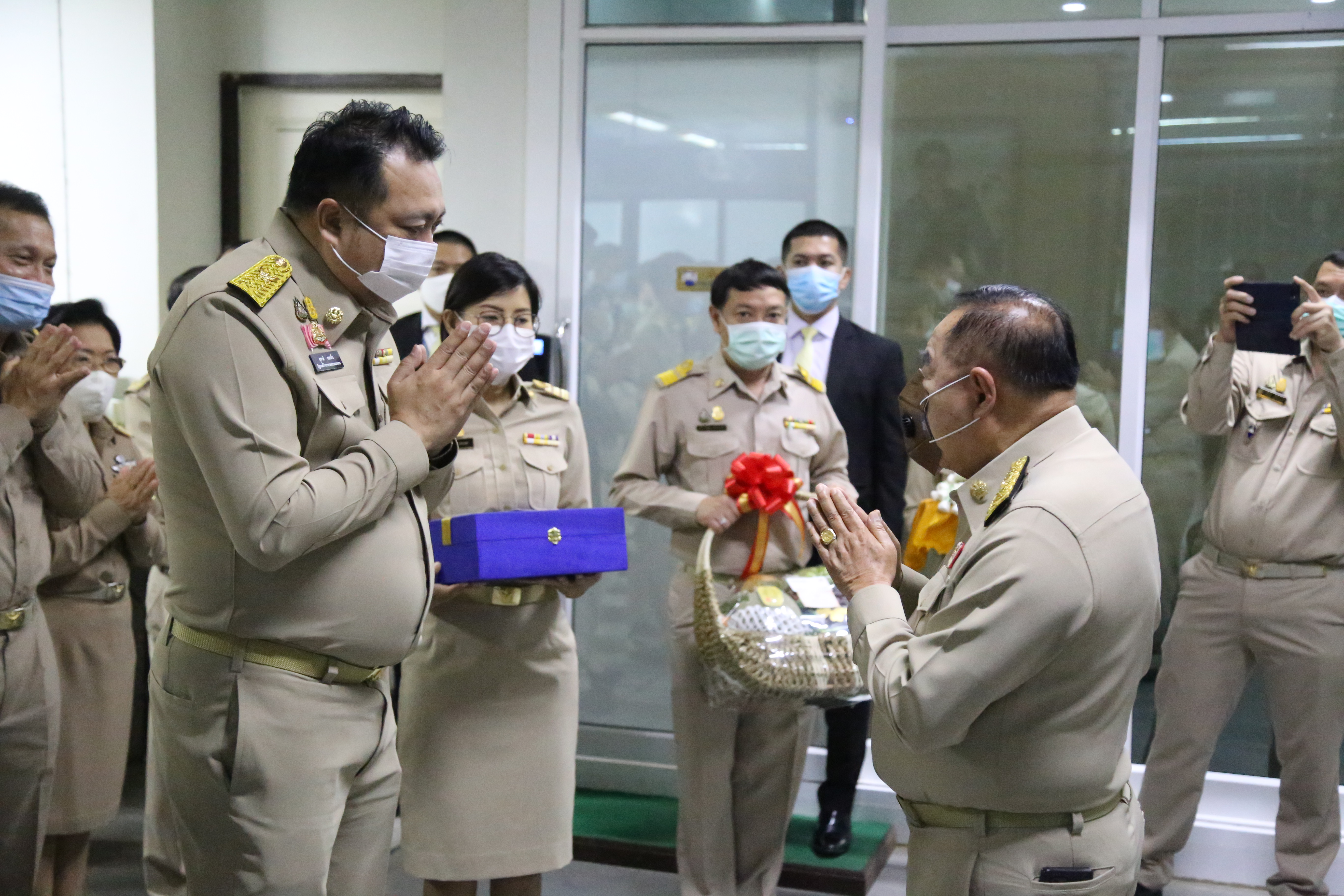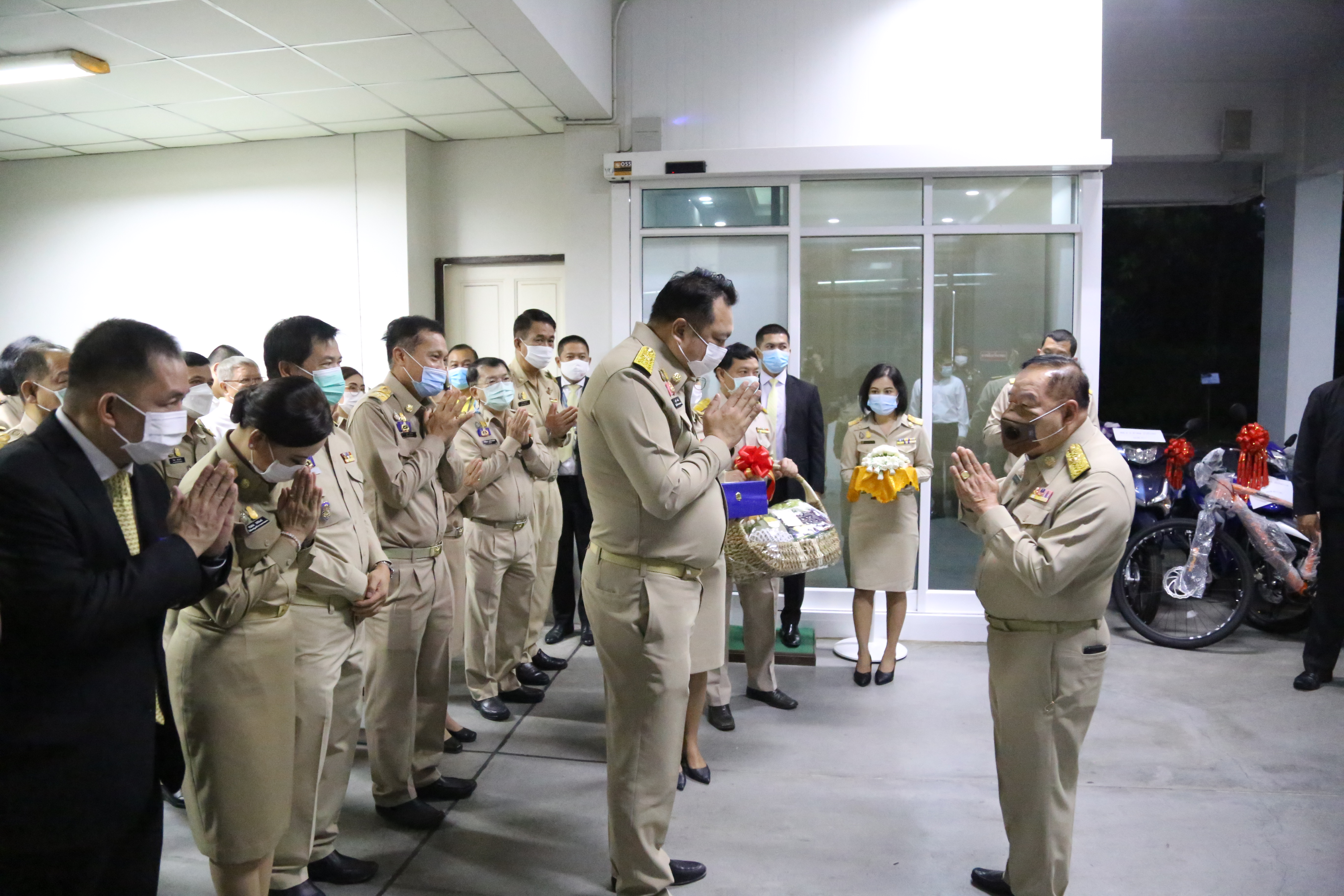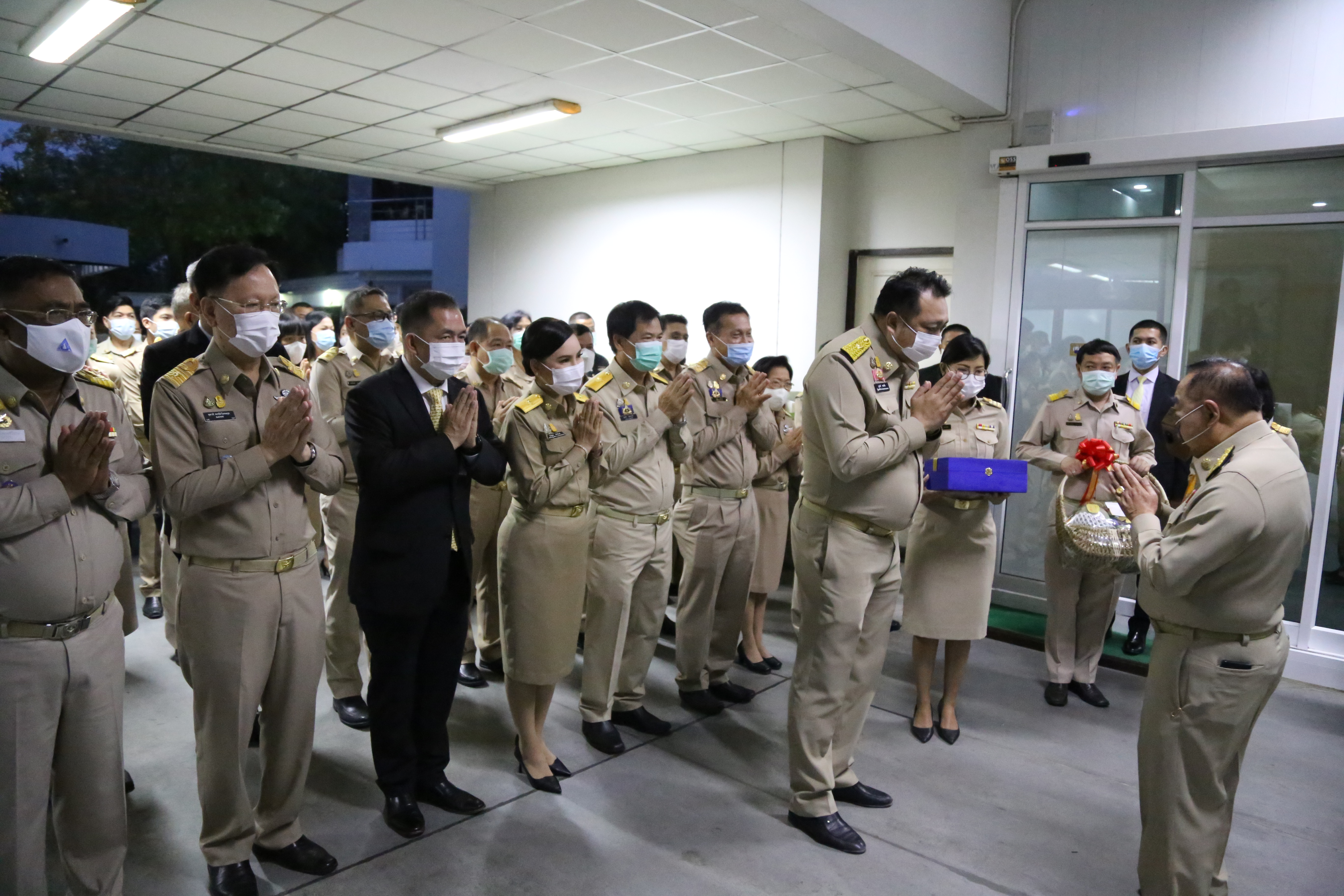 On December 28, 2020, Labour Minister Mr. Suchart Chomklin, Advisor to the Labour Minister Mrs. Thiwalrat Angkinan, and the Labour Minister’s Secretariat Mr. Suthep Chitayavong led the Ministry of Labour’s executives, civil servants, and staff to gift a basket of flowers to Deputy Prime Minister General Prawit Wongsuwan, on the occasion of the 2021 New