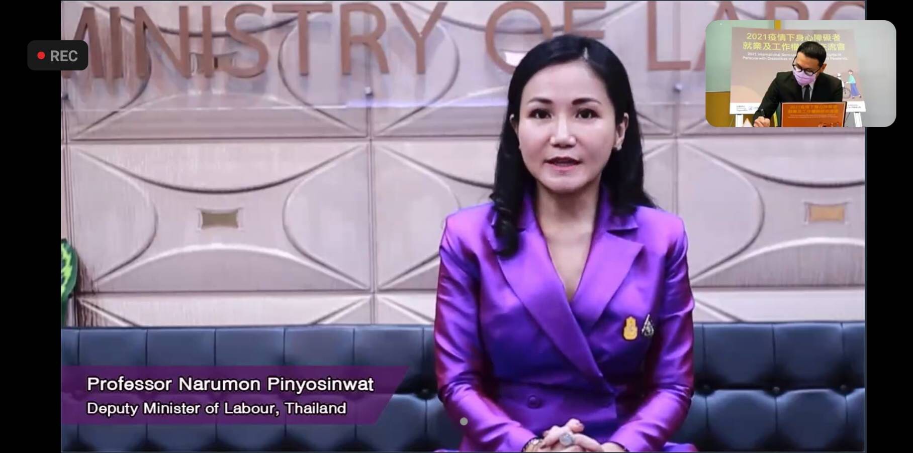 On August 13, 2021, Deputy Labour Minister Prof. Narumon Pinyosinwat presided over the opening of the 2021 International Seminar on Employment Rights of Persons with Disabilities in a Crisis of COVID-19 Pandemic, organized by the Eden Social Welfare Foundation in collaboration with Workability Asia and the Redemptorist Foundation for People with Disabilities. She said that the COVID-19 pandemic had affected workers around the world, especially workers with disabilities. Thailand has over 2 million people with disabilities, of which around 87,000 people are workers, but only one-fourth are employed. The government has worked hard to help these people, such as promoting employment and helping to find jobs that create value for people with disabilities. Today, many people with disabilities have not yet developed the skills they need to work, and some people lack the equipment to support their work or lack sources of capital to start their own business. Therefore, supporting people with disabilities to have sufficient skills training and promoting suitable skills will create a better life for this group of people.