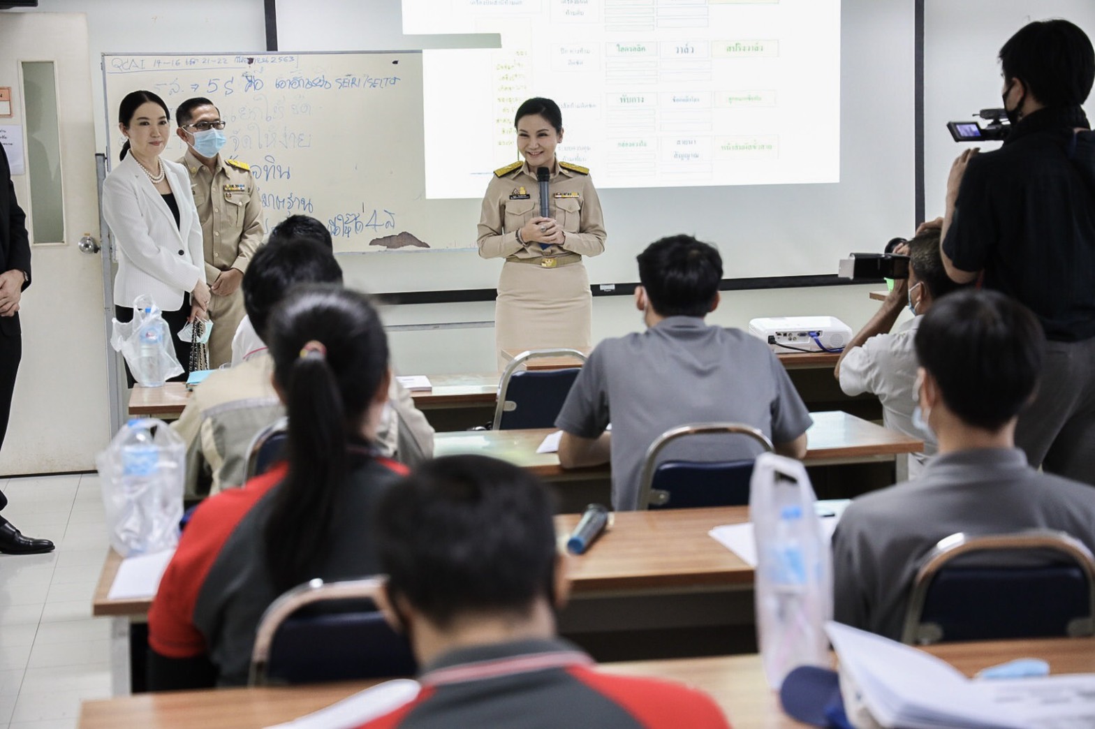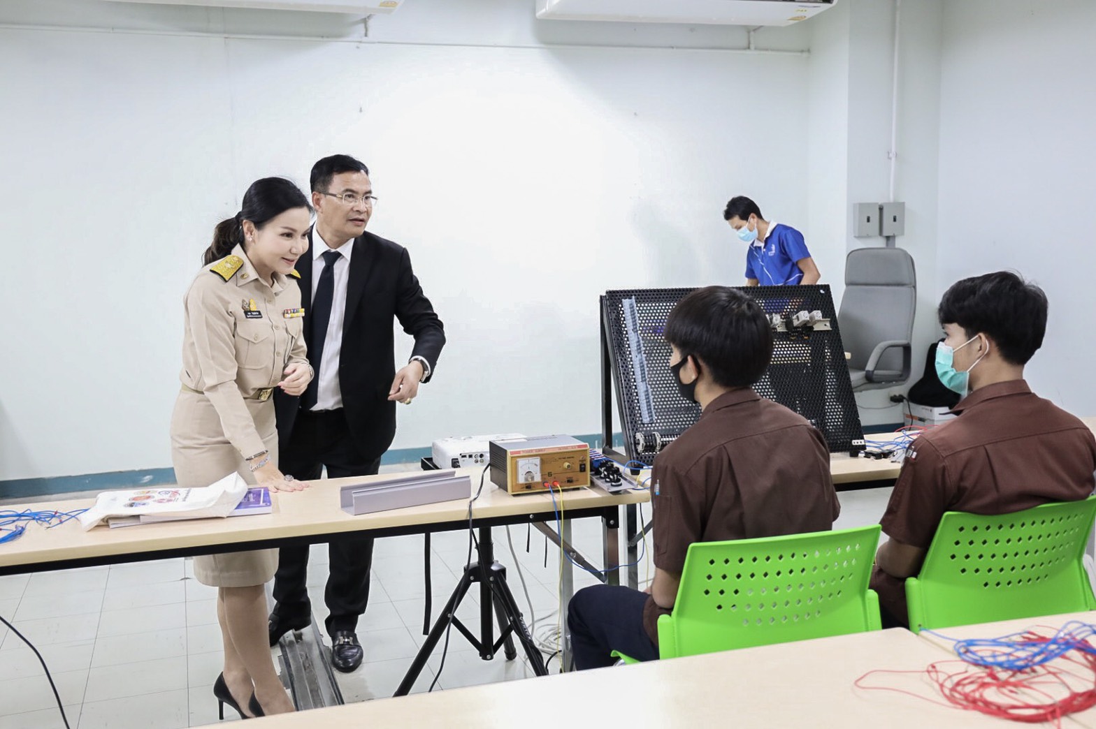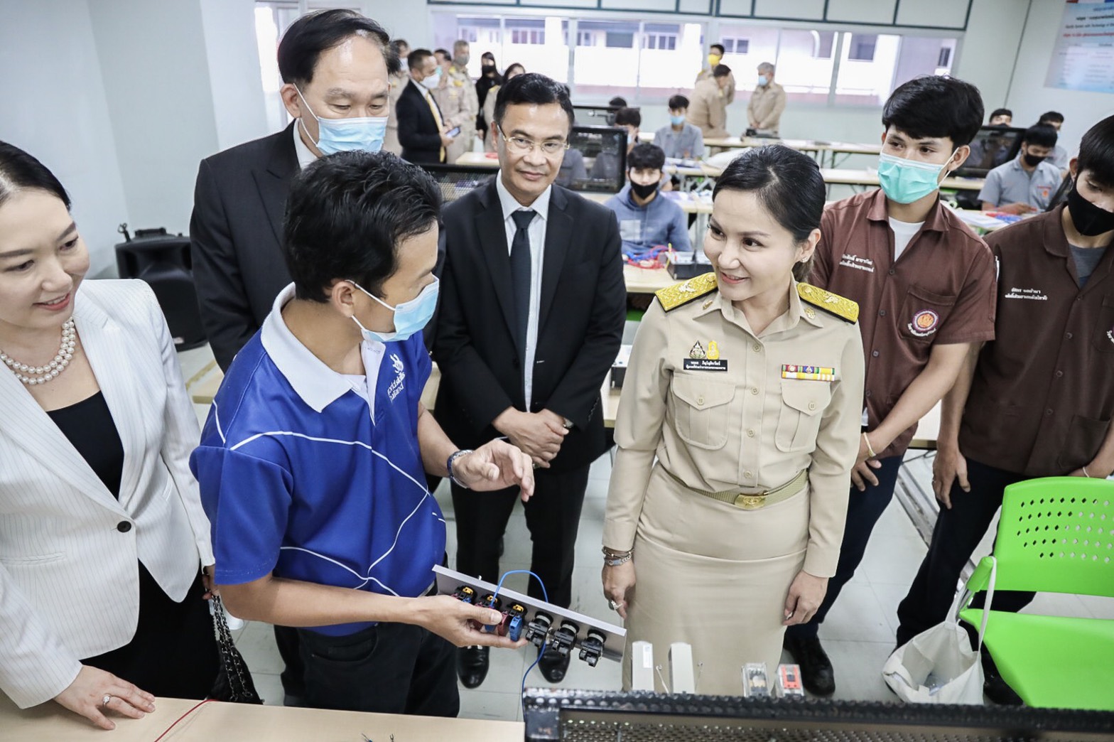 On September 14, 2020, Deputy Labour Minister Prof. Narumon Pinyosinwat, Advisor to the Deputy Labour Minister on Academic Affairs Associate Professor Dr. Busakorn Watcharasriroj, Members of the House of Representatives Khun Akarawat Asawahem and Yongyut Suwanbutr, and the Ministry of Labour’s executives visited Samut Prakan to give words of encouragement to over 100 trainees. The trainees consisted of 64 vocational students at the Vocational Certificate 2 level in automotive mechanics and another 50 workers from the automotive industry, preparing before entering the workforce. The occasion took place at the Samut Prakarn Skill Development Institute 1.