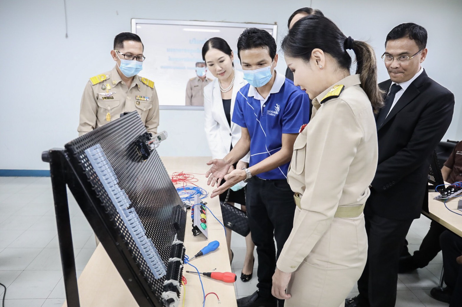After that, the Deputy Labour Minister and committee observed practices and gave words of encouragement to Thai youths representing Thailand in the ASEAN and International Skill Competition in the field of CNC machining (lathe and milling) and cooling systems technology. In 2021, there will be the 13th ASEAN Skill Competition between April 6-11, 2021, hosted in Singapore and the 46th International Skill Competition hosted in Shanghai, China. Therefore, participants who will have to travel to compete have practiced skills to gain expertise and solve immediate problems. The training covers the customs, traditions, and cultures of each country too. Thailand sent youths to compete at the ASEAN level in 6 categories: 1. Food and beverage services, 2. Cooking, 3. Cooling system technology, 4. Hairdressing, 5. Mobile robotics, and 6. Automotive technology.