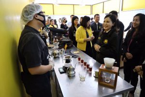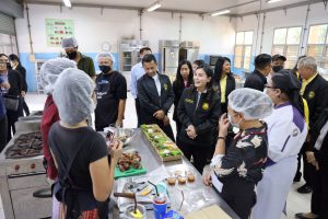 She visited and observed training at the Chiang Mai Institute of Skill Development 19, including fresh coffee brewing, single-dish cooking, and local tailoring. Participants were workers affected by COVID-19. They also visited model vegetable plantations for hydroponics vegetables, using deepwater systems and plant control systems with Internet of Things (IoT) technology under the concept of “leftover space for self-reliant agriculture in urban society.” She also paid a visit to observe the National Skill Standard Assessment for small commercial air conditioning technicians at the level 1 capacity. Assessment takers included on-site workers and individuals. In 2021, the Chiang Mai Institute of Skill Development 19 aims to develop 29,310 people in the area, consisting of 2,210 self-employed workers, and encouraging establishments to complete training for 27,100 people. Heads of Chiang Mai government agencies also joined the visit.