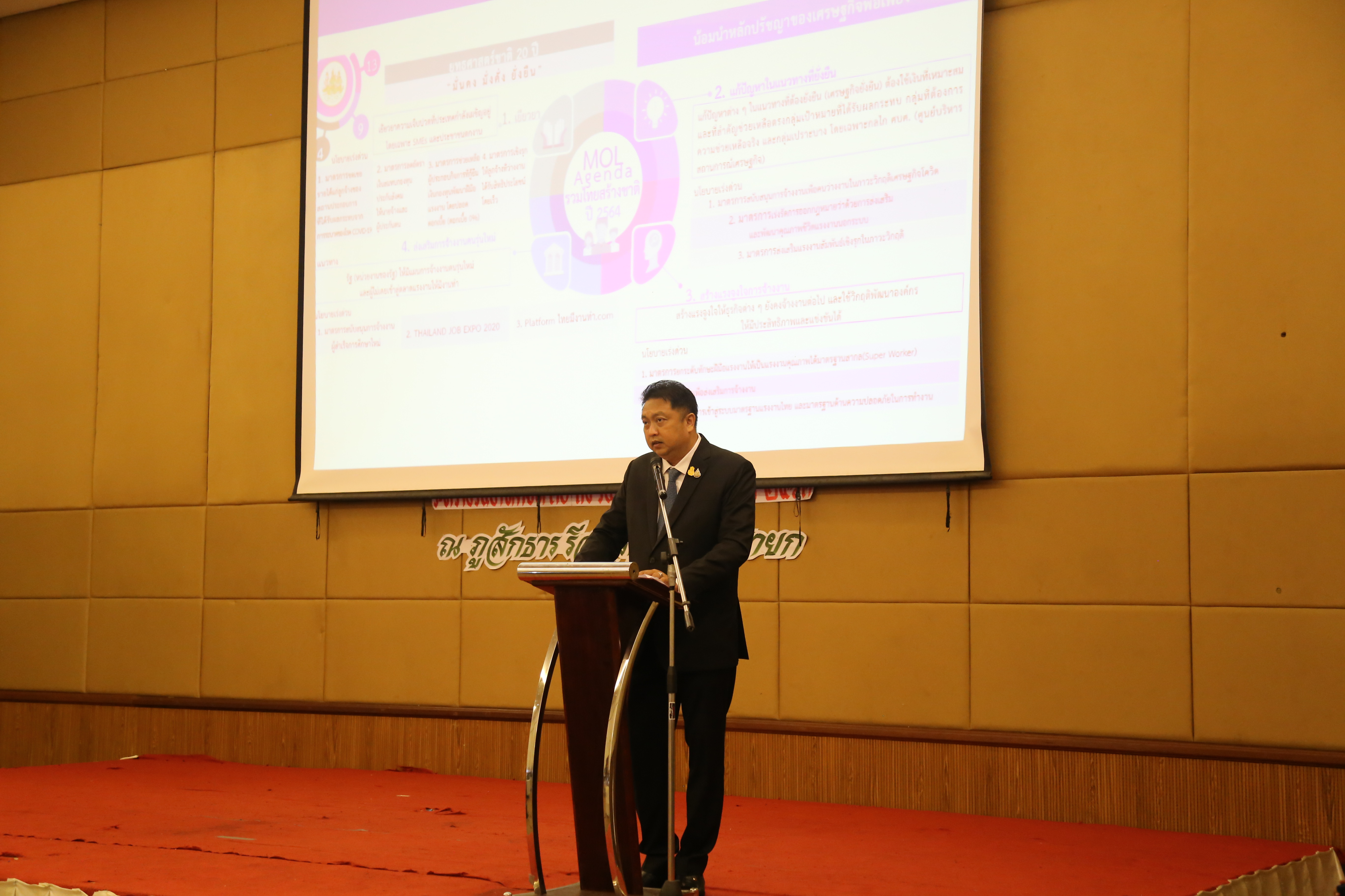 The Labour Minister commenced the seminar on “promoting cooperation in the implementation of organizational missions between the Labour Commission and the Ministry of Labour to promote productivity and create peace in the national industrial society in all dimensions, in vulnerable provinces and areas in Bangkok.” The seminar also gave a special lecture on “the Ministry of Labour’s management policies and missions amid the Covid-19 pandemic and its Impact on the workforce”. The seminar took place in Nakhon Nayok.