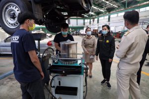 From the current situation of the Covid-19 pandemic, many companies have implemented more stringent screening for foreign workers. On this visit, the Deputy Labour Minister led a team to visit the Dechapanich Weaving Factory Co., Ltd., which has approximately 1,172 foreign workers. She emphasized strict compliance with anti-pandemic measures. They then visited the Khon Kaen Skill Development Institute 6 to observe training for work preparation, including Thai cooking, motorcycle mechanics, and auto mechanic. All three courses have a two-month training period with a one-month training in the workplace. She also listened to the performance of driving labour agendas.