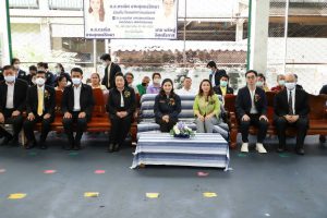 Prof. Narumon said that she was glad to have the opportunity to meet with workers in the Klong Toey community area. She said that the Ministry of Labour is important in human resource development to strengthen the nation’s economy and society. It does this by leveraging the civil state mechanism to drive missions forward to develop the nation’s workforce. The Ministry of Labour is not only focused on developing skills, knowledge, and competencies to become high-potential workers, but there is also a need to raise the quality of life for workers following international standards. This includes having strong foundations, valuable career opportunities, protection of legal rights, appropriate benefits, fair employment conditions, and safe working conditions, under the three principles, that is to create, elevate and give, Thailand coming together to build a nation, according to the policy set forth.