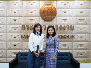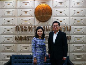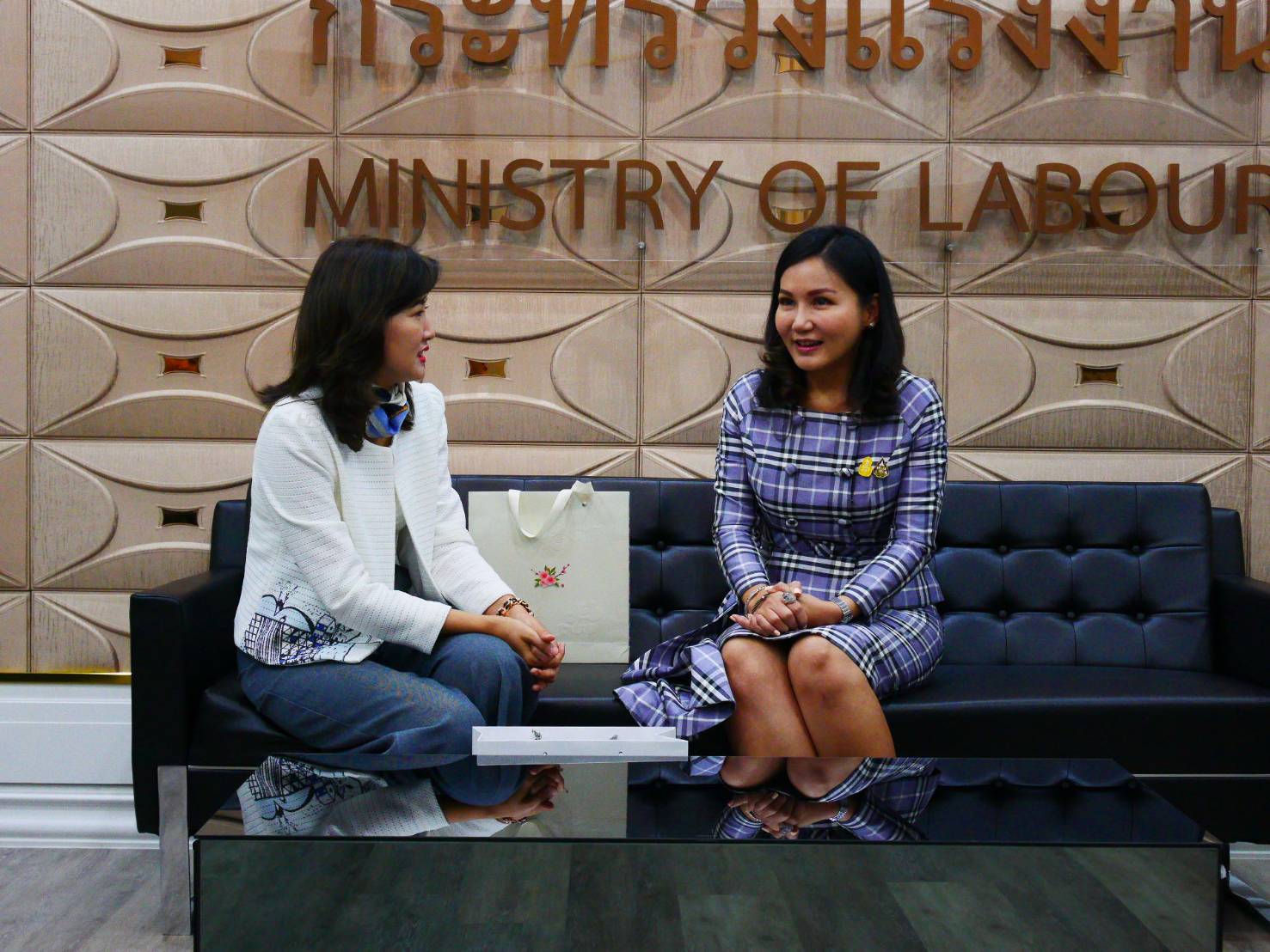 On October 5, 2020, Deputy Labour Minister Prof. Narumon Pinyosinwat welcomed the President of Thai Jiranai Group, Khun. Lui Sae-guo, a Chinese-language media executive in Thailand, online news agency “Thailand Headlines” and online magazine in Chinese, @ManGu. The meeting discussed the public relations of various missions of the Ministry of Labour and took place at the Executive Lounge, 6th floor, Ministry of Labour.