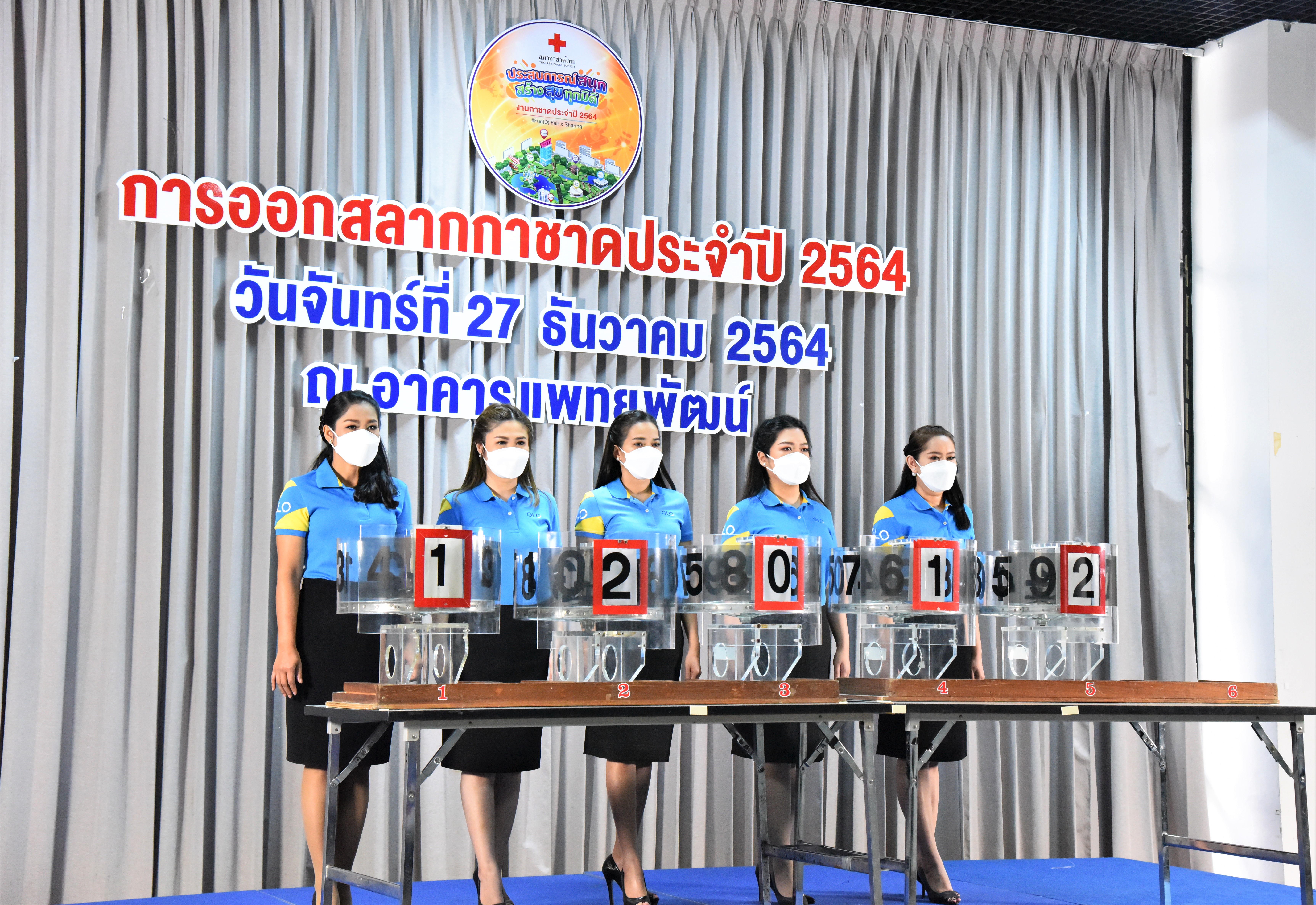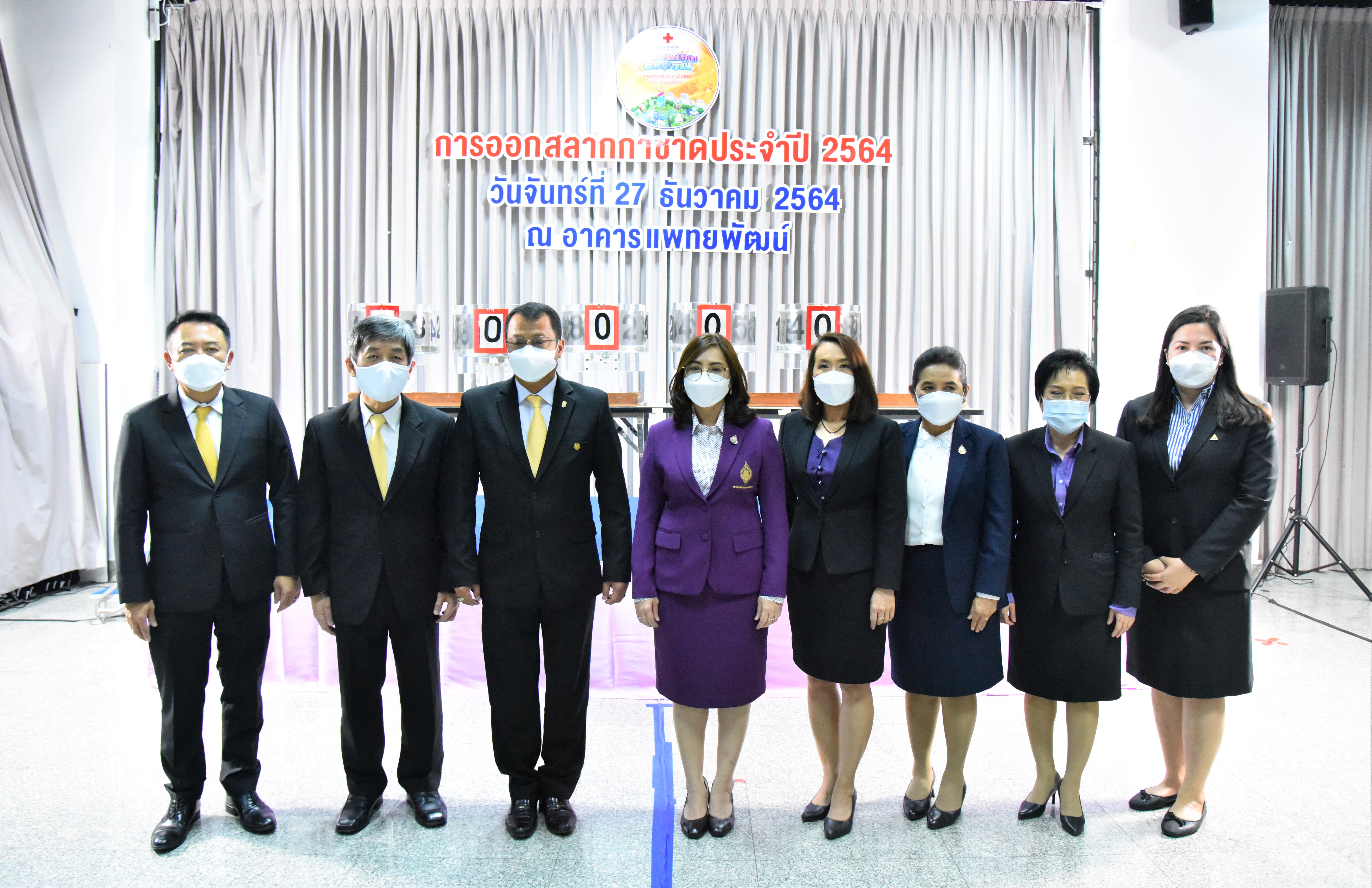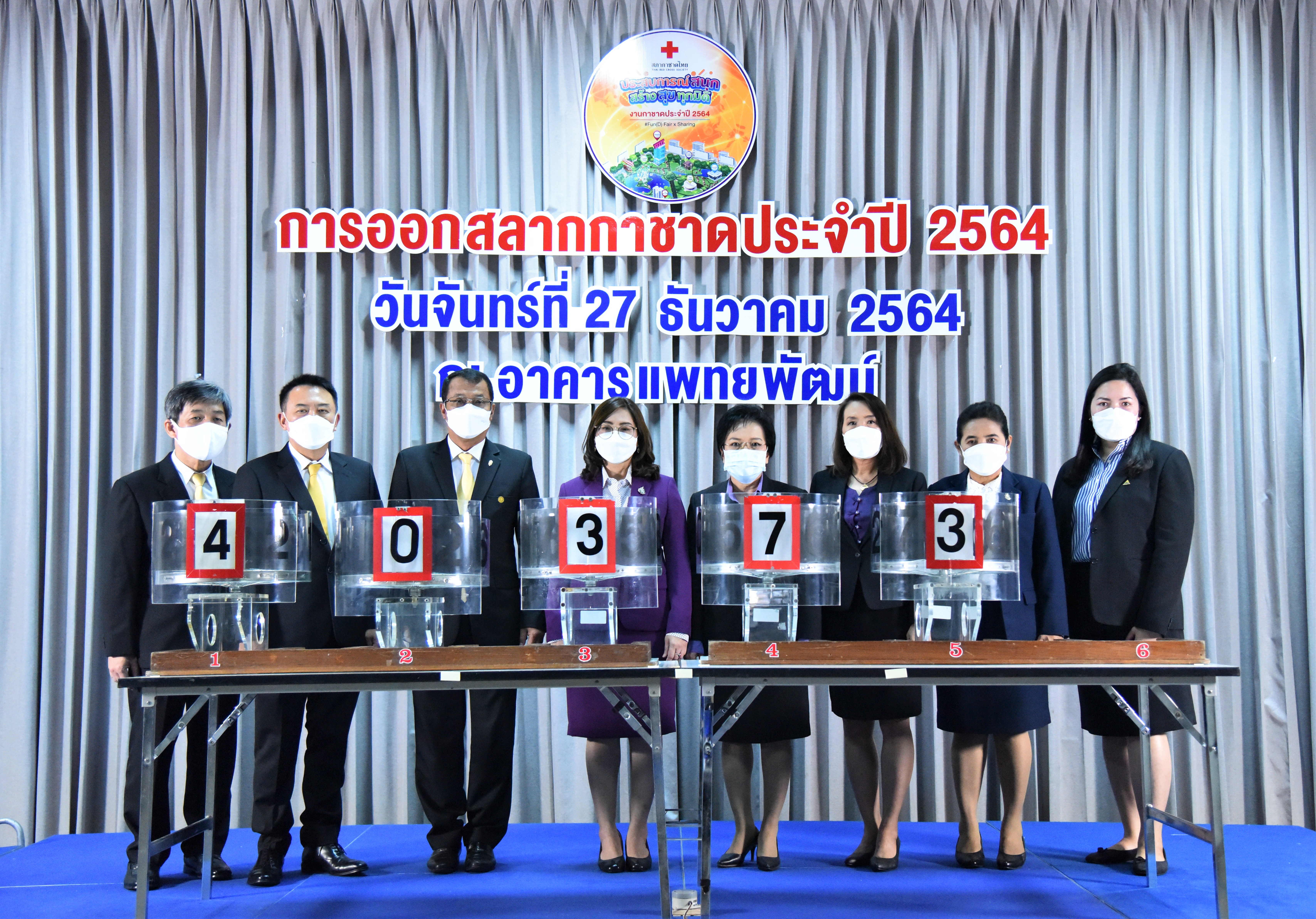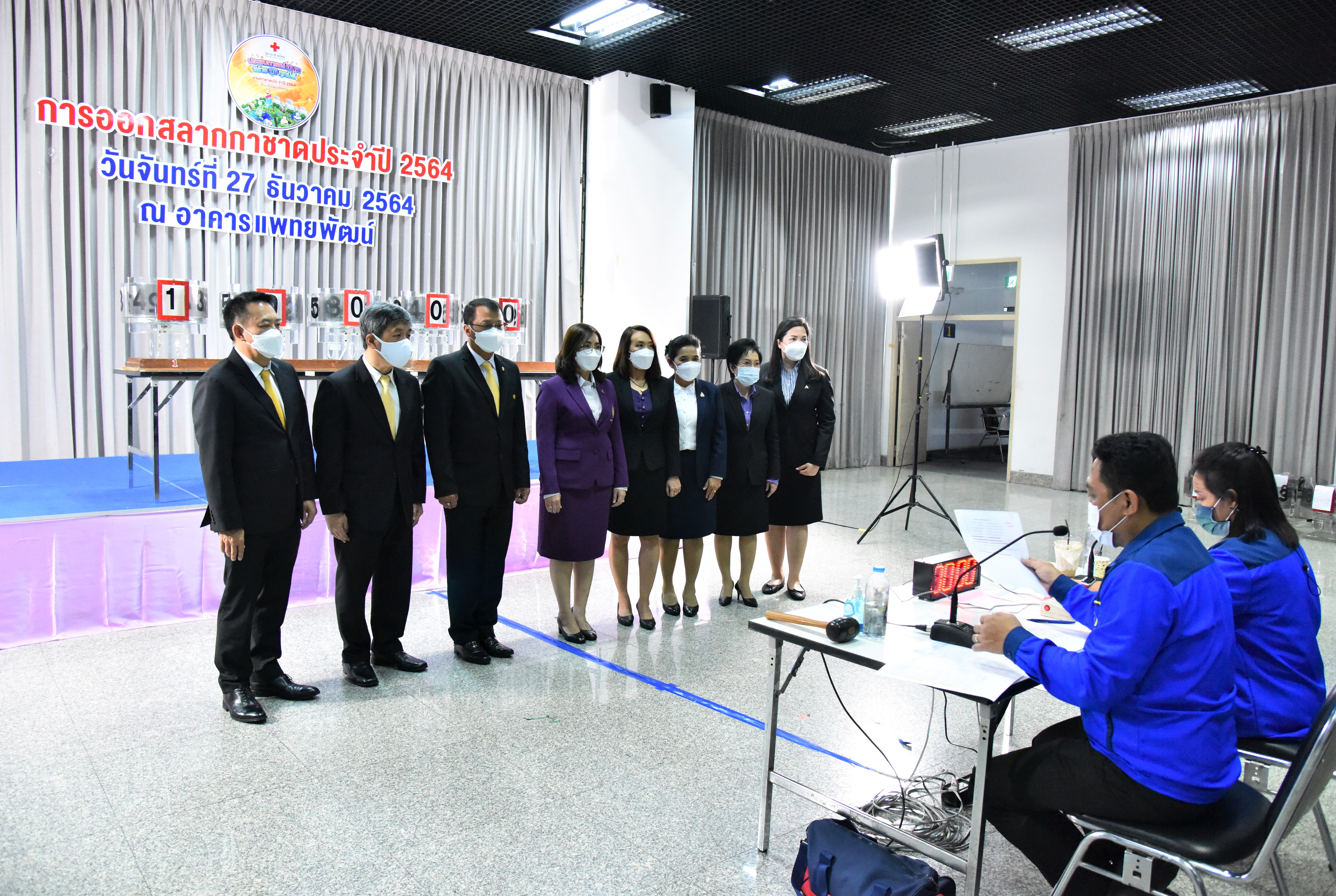On December 27, 2021, at 10.30 hours, Deputy Permanent Secretary of Labour Ms. Bubpha Rueangsud chaired the ‘spin-the-wheel’ event. The Ministry of Labour’s executives witnessed the awarding of ‘lucky labour cards’ for 2021, the Thai Red Cross Society lottery, by the Ministry of Labour. The revenue will be offered to Her Royal Highness, Director of the Thai Red Cross Society, Phaetayapat Building, Chulalongkorn Hospital. The awards were as follows: