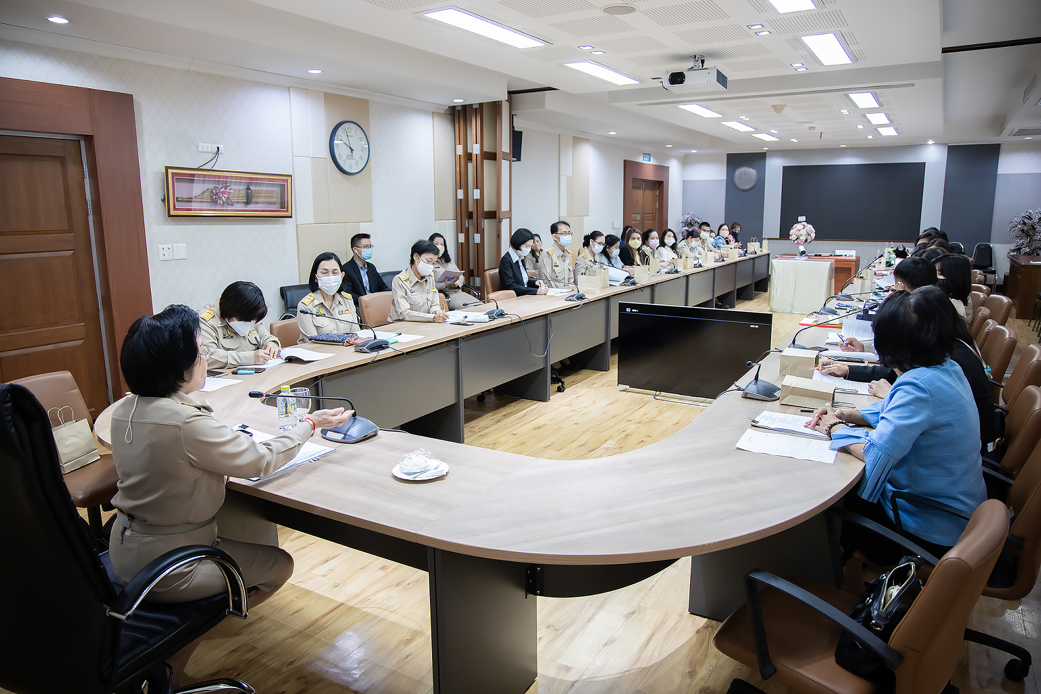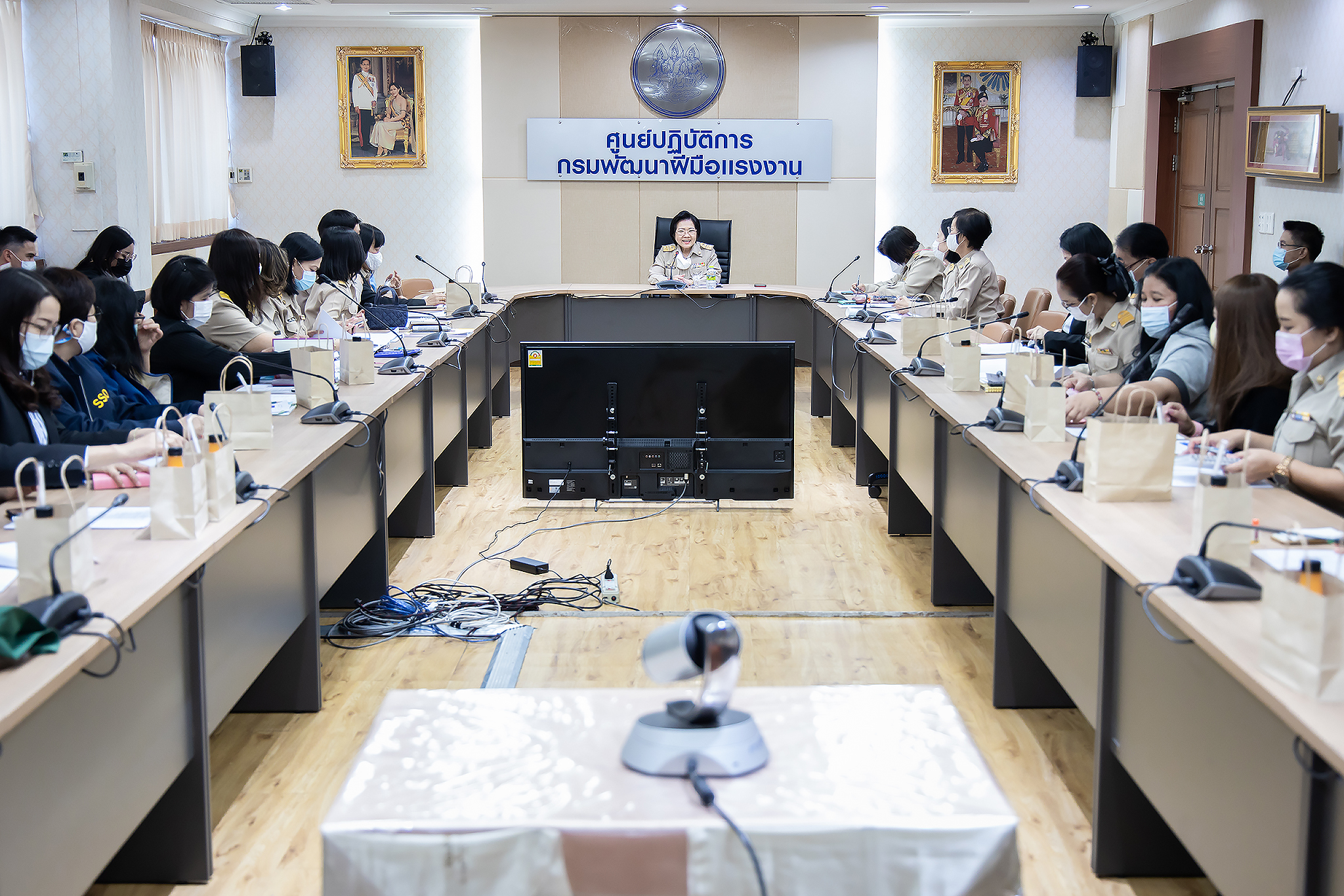 Today (December 21, 2020) at 09.30 hours, Deputy Permanent Secretary of Labour Ms. Aumpun Thuvavit chaired the Ministry of Labour’s Housewives Association 2020 Annual General Meeting. The relevant departments also attended the meeting at the Somchart Lekalawan meeting room, 10th floor, Department of Skill Development. The meeting considered the certification of the balance sheet 2019, the auditors report for the year 2020, the work plan/activities of the Ministry of Labour’s Housewives Association in 2021, the support of the Ministry of Labour’s missions and other agencies, and the recruitment of members to the Ministry of Labour’s Housewives Association.