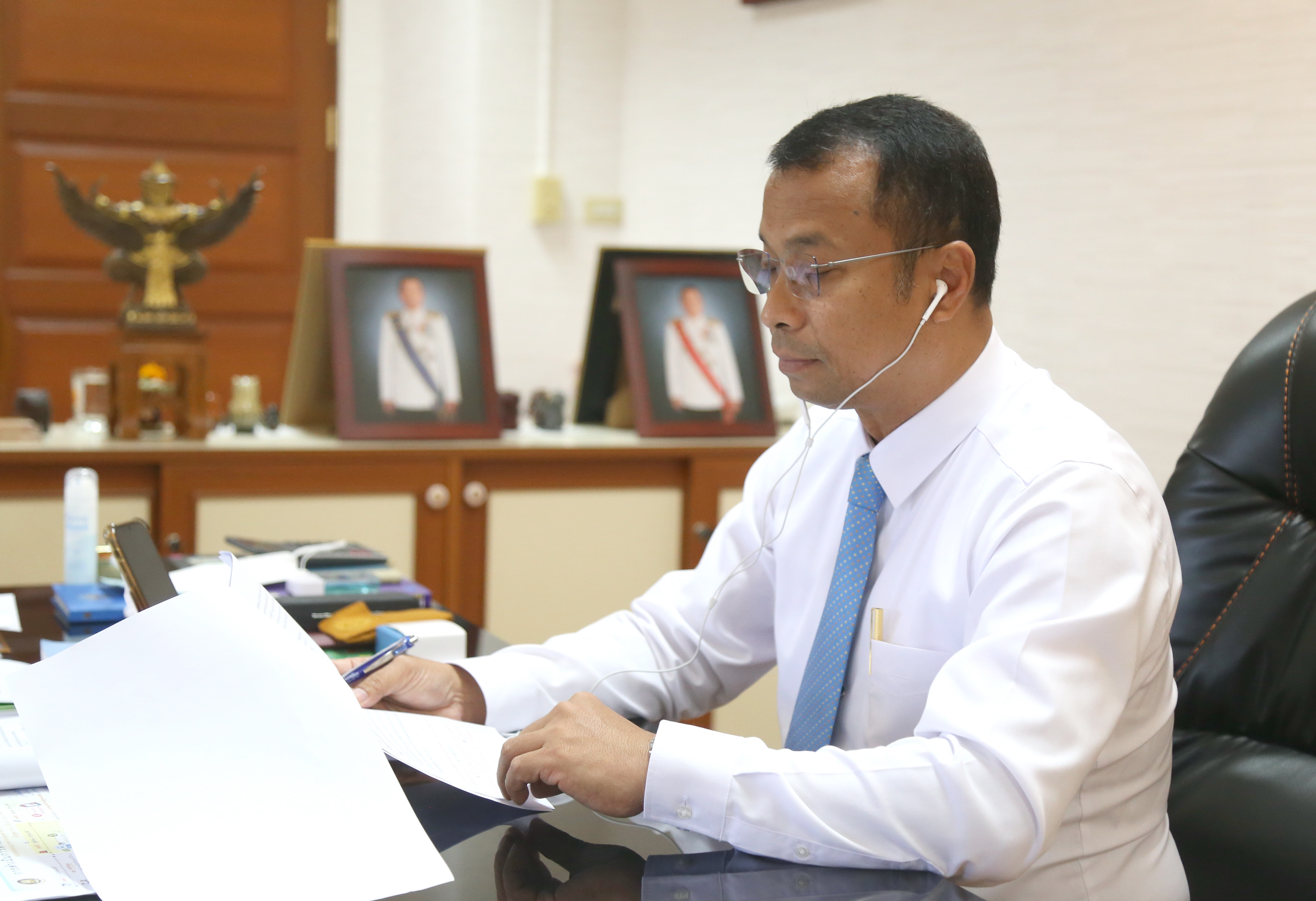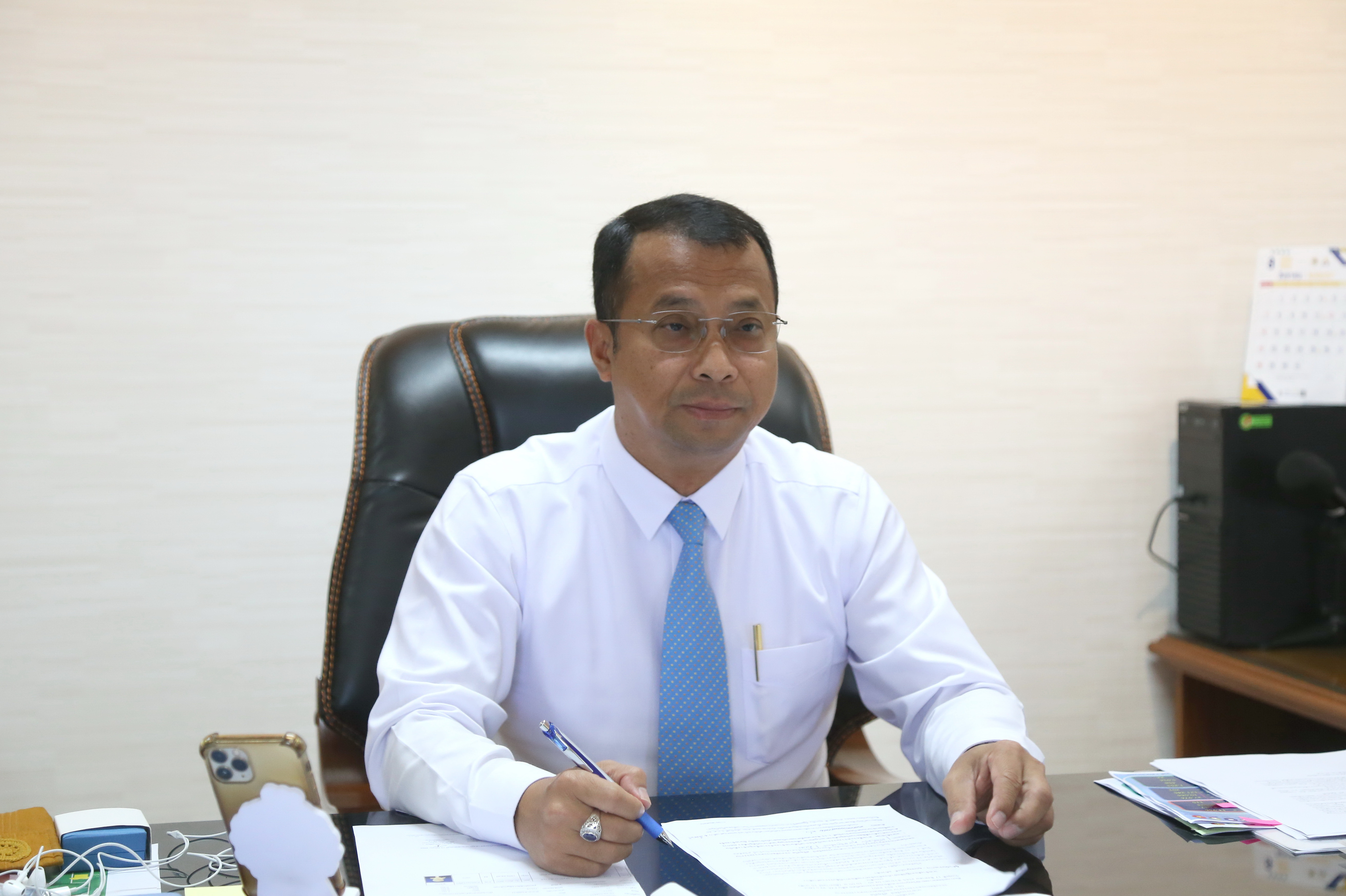 On August 18, 2022, at 13.30 hours, Deputy Permanent Secretary of Labour, Mr. Wannarat Srisuksai, gave a live interview on Lukthung Rak Thai Radio Station, F.M. 90 Mhz, on what employers should do after registering their needs for foreign workers. The occasion took place at the Office of the Deputy Permanent Secretary of Labour, 7th floor, Ministry of Labour.