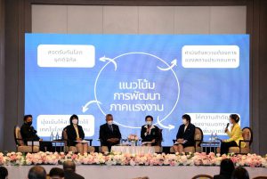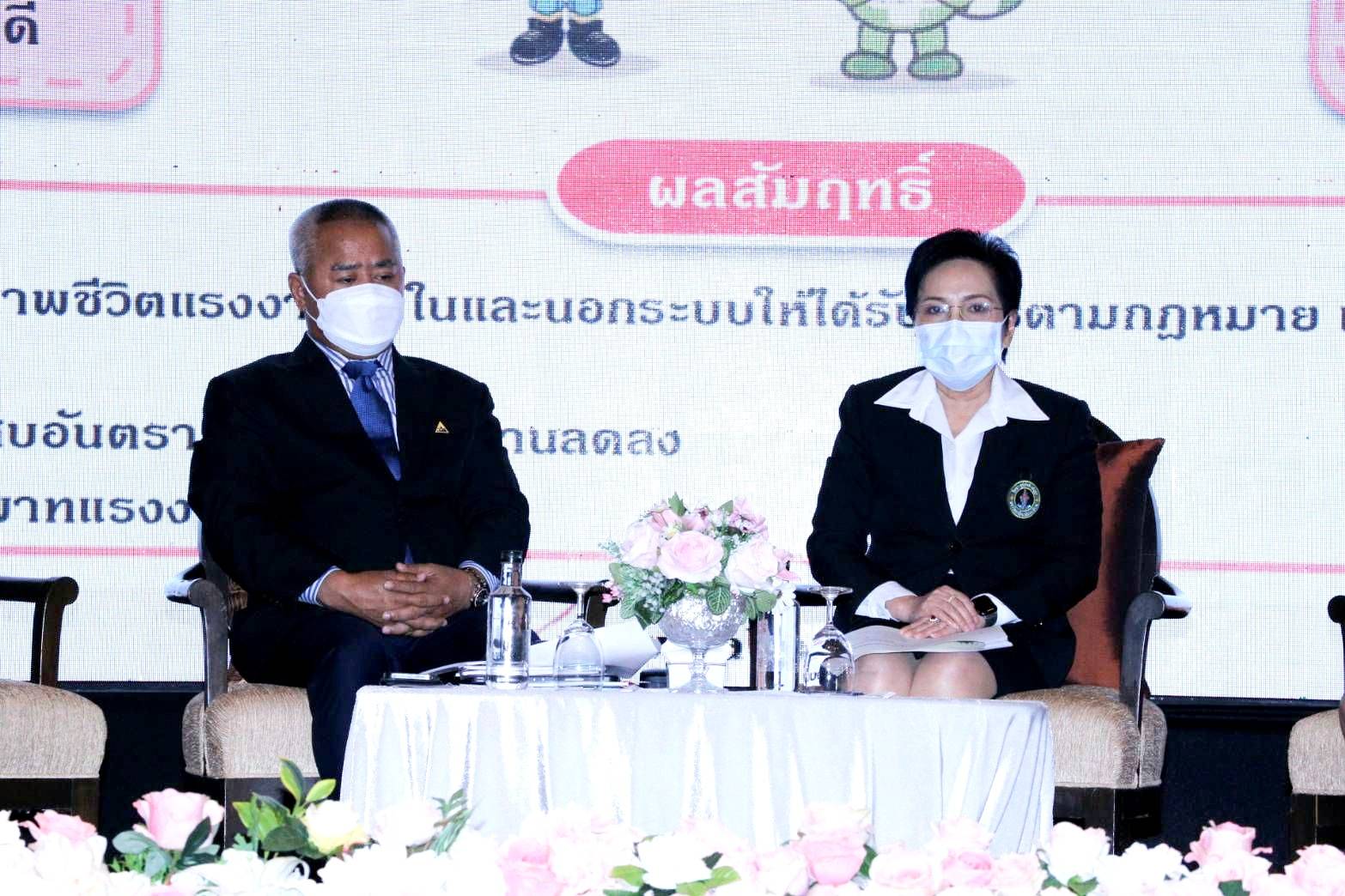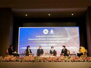 On November 4, 2022, at 13.00 hours, the Permanent Secretary of Labour, Mr. Boonchob Suttamanaswong, assigned Deputy Permanent Secretary of Labour, Mrs. Bubpha Phanpeng, to participate in the discussion on “The Ministry of Labour’s Role in Raising the Worker’s Quality of Life Towards Stability.” The discussion took place at the social security academic conference 2022 (Central Region) entitled Modernizing SSO 2022: Driving Towards A Modern Social Security System Modernizing SSO 2022: Stepping into a modern social security system at the Miracle Grand Hotel. The Convention, Laksi, Bangkok