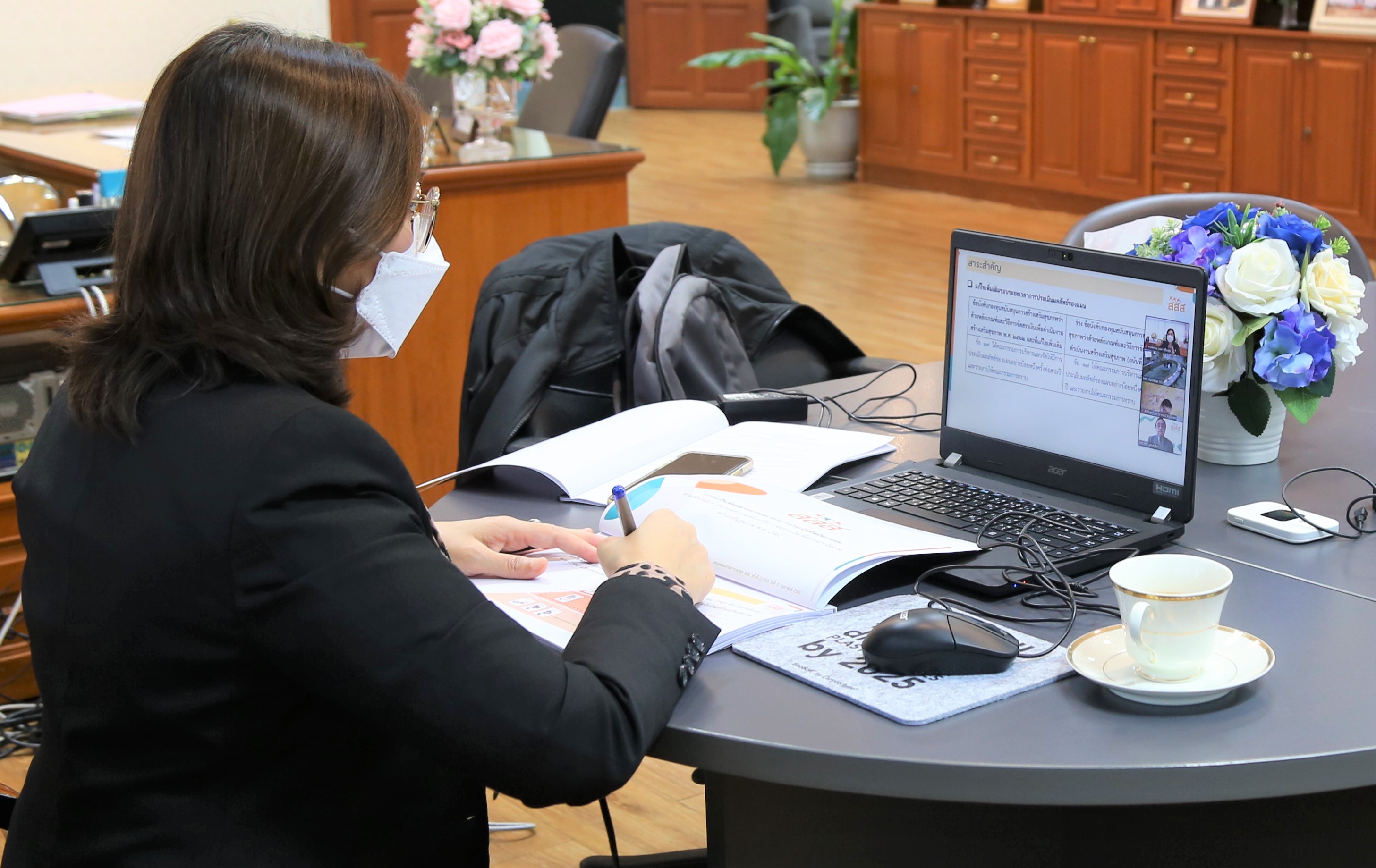 On February 17, 2022, Deputy Permanent Secretary of Labour, Ms. Bubpha Rueangsud, participated in the Health Promotion Fund Committee Meeting No. 2/2022 via Zoom Meeting. The meeting considered the addition of expenses related to the provision of special agency services, guidelines for determining expenses following the criteria for compensation based on the performance of specialized agencies, and the improvement of powers and duties of the Advisory Subcommittee of the Fund Office. The meeting took place at the Office of the Deputy Permanent Secretary of Labour, 7th floor, Ministry of Labour.