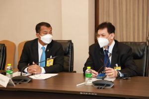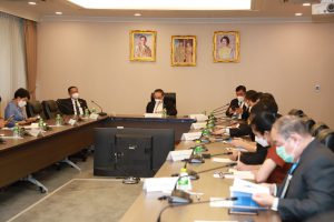 On June 15, 2022, at 09.30 hours, Deputy Permanent Secretary of Labour, as the Ministry of Labour’s Spokesperson, Mr. Wannarat Srisuksai, joined the media network meeting under the supervision of the Deputy Prime Minister at Meeting Room 302, Command Building 1, Government Houses. The meeting was chaired by Deputy Secretary-General to the Prime Minister, Police General Thammasak Wicharaya. The meeting had presentations of important works by the agencies that the Deputy Prime Minister supervised in June 2022 and the public relations guidelines of each agency to coordinate and collect media to cover all target groups and make the performance of duties more efficient.
