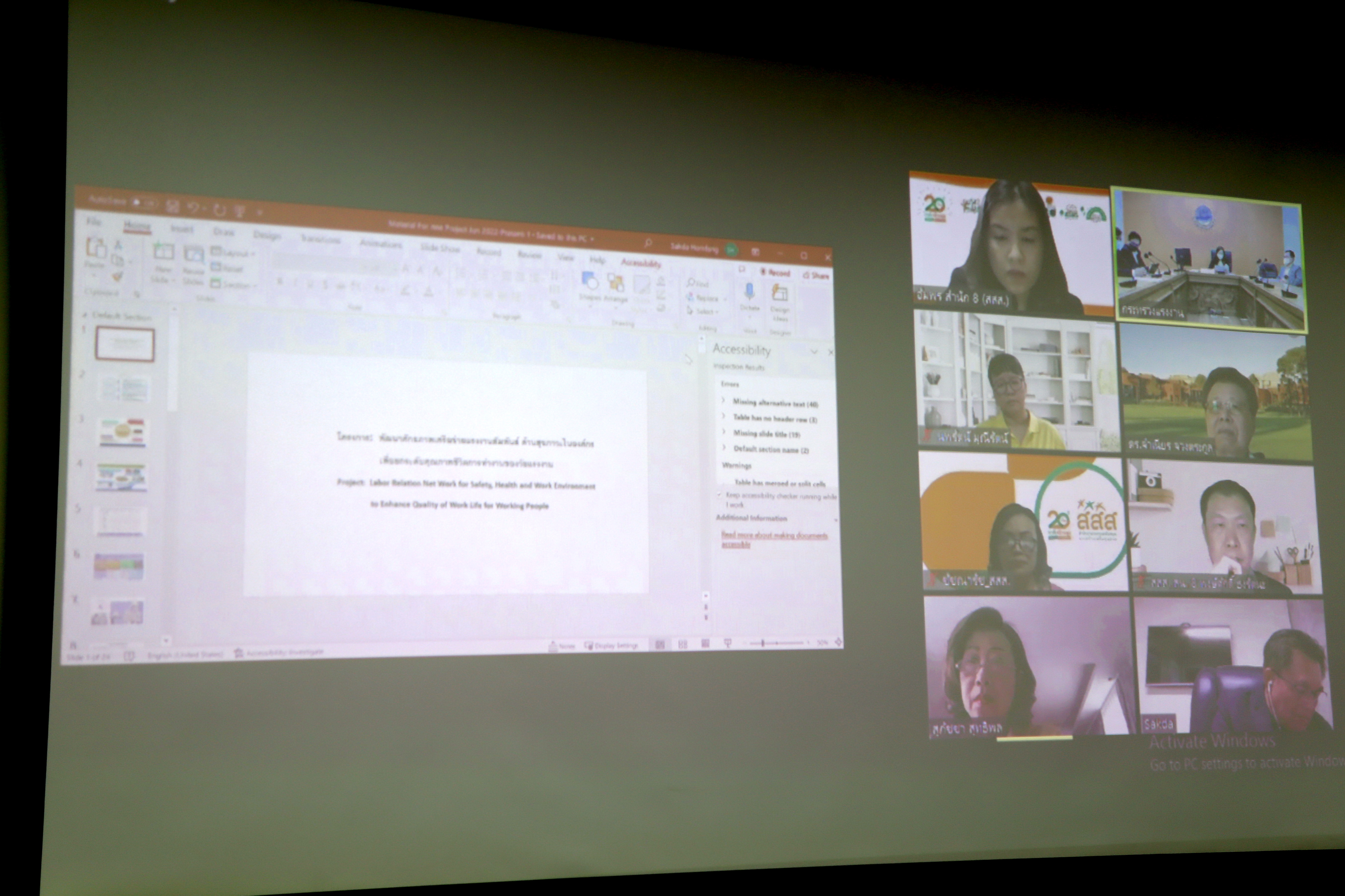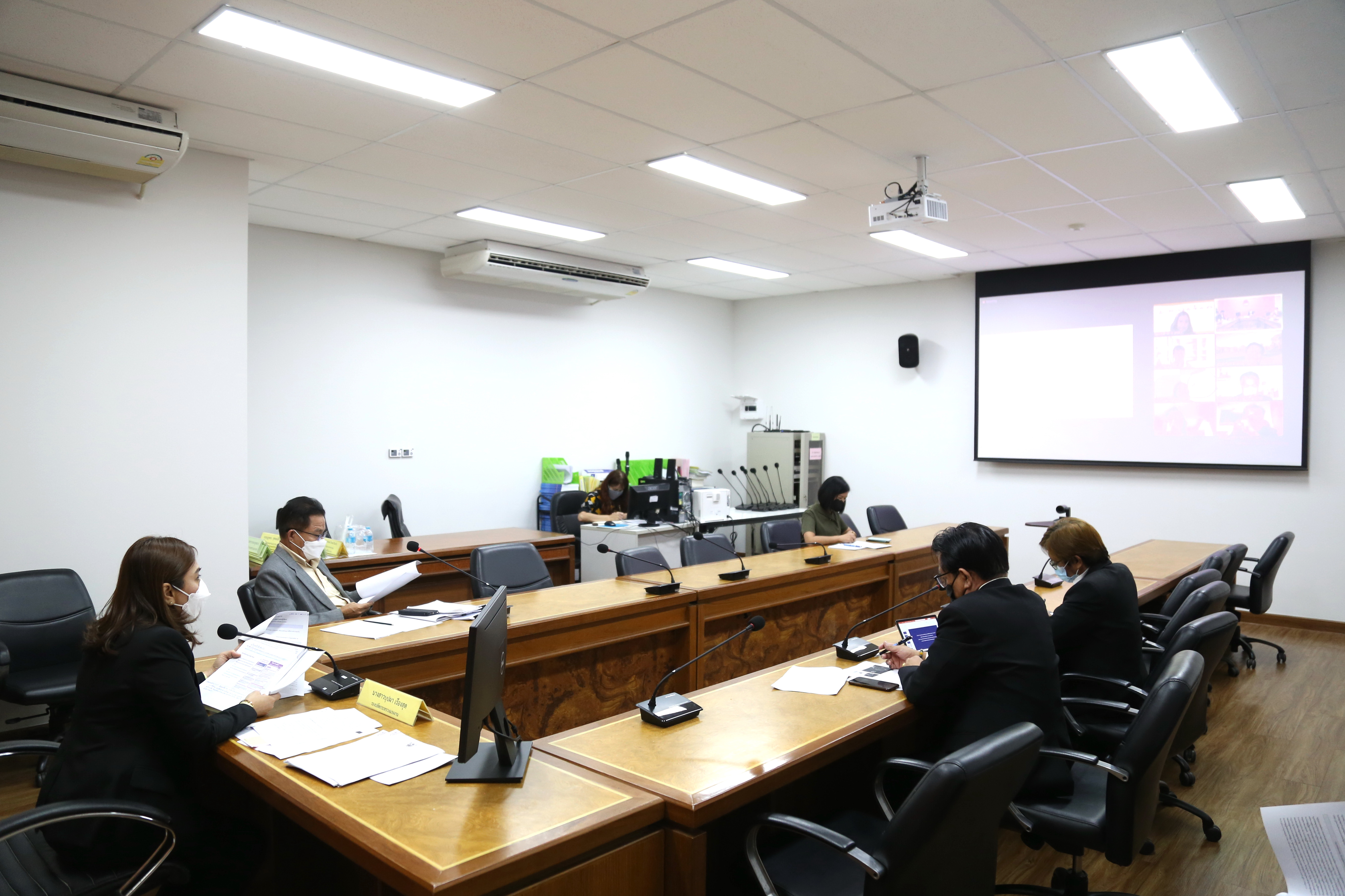 On June 13, 2022, at 13.30 hours, Deputy Permanent Secretary of Labour, Mrs. Bubpha Phanpeng, joined a meeting with the Thai Health Promotion Foundation (ThaiHealth) for online discussion. The meeting considered the project to develop the potential of the labour relations network on health in the organization and enhance the quality of life among the working age. The meeting took place at the Legal Division meeting room, 11th floor, Ministry of Labour.