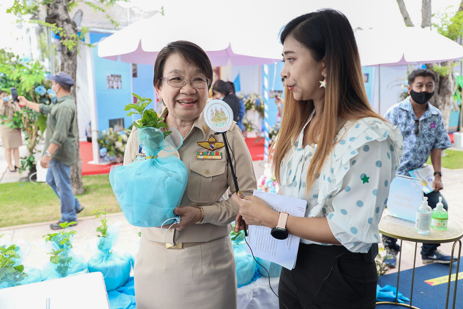Today (August 14, 2020) at 14.30 hours, Deputy Permanent Secretary of Labour Mrs. Theanrat Nawamawat and Deputy Permanent Secretary of Labour Mrs. Tongjai Suthat Na Ayutthaya attended professional training activities and visited the exhibition and public service activities of agencies under the Ministry of Labour, on the occasion of HM Queen Sirikit’s royal birthday at Sanam Luang (the Supreme Court side). The activities aim to promote women and the elderly to have a career, income, and good quality of life, together with good health, in response to the royal initiative and present on the birthday of HM Queen Sirikit.