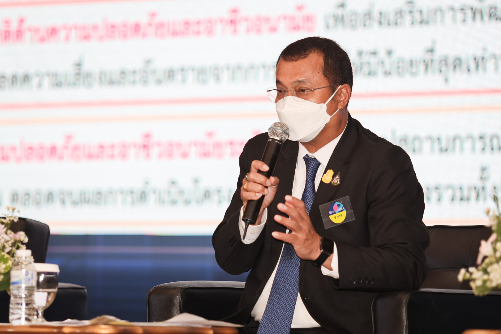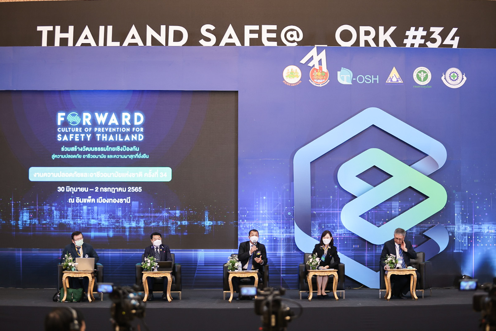 On June 30, 2022, Deputy Permanent Secretary of Labour, as the Ministry of Labour’s Spokesperson, Mr. Wannarat Srisuksai, participated in the discussion on a “Forward Culture of Prevention for Safety Thailand” at the THAILAND SAFE@WORK#34 event, which took place at the Royal Jubilee Ballroom, IMPACT Exhibition and Convention Center, Muang Thong Thani, Nonthaburi Province. The event was organized by the Ministry of Labour’s Institute Of Occupational Safety And Health (Public Organization), or TOSH, and related agencies from June 30 to July 2, 2022, at the IMPACT Exhibition and Convention Center Muang Thong Thani.