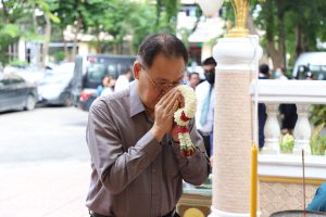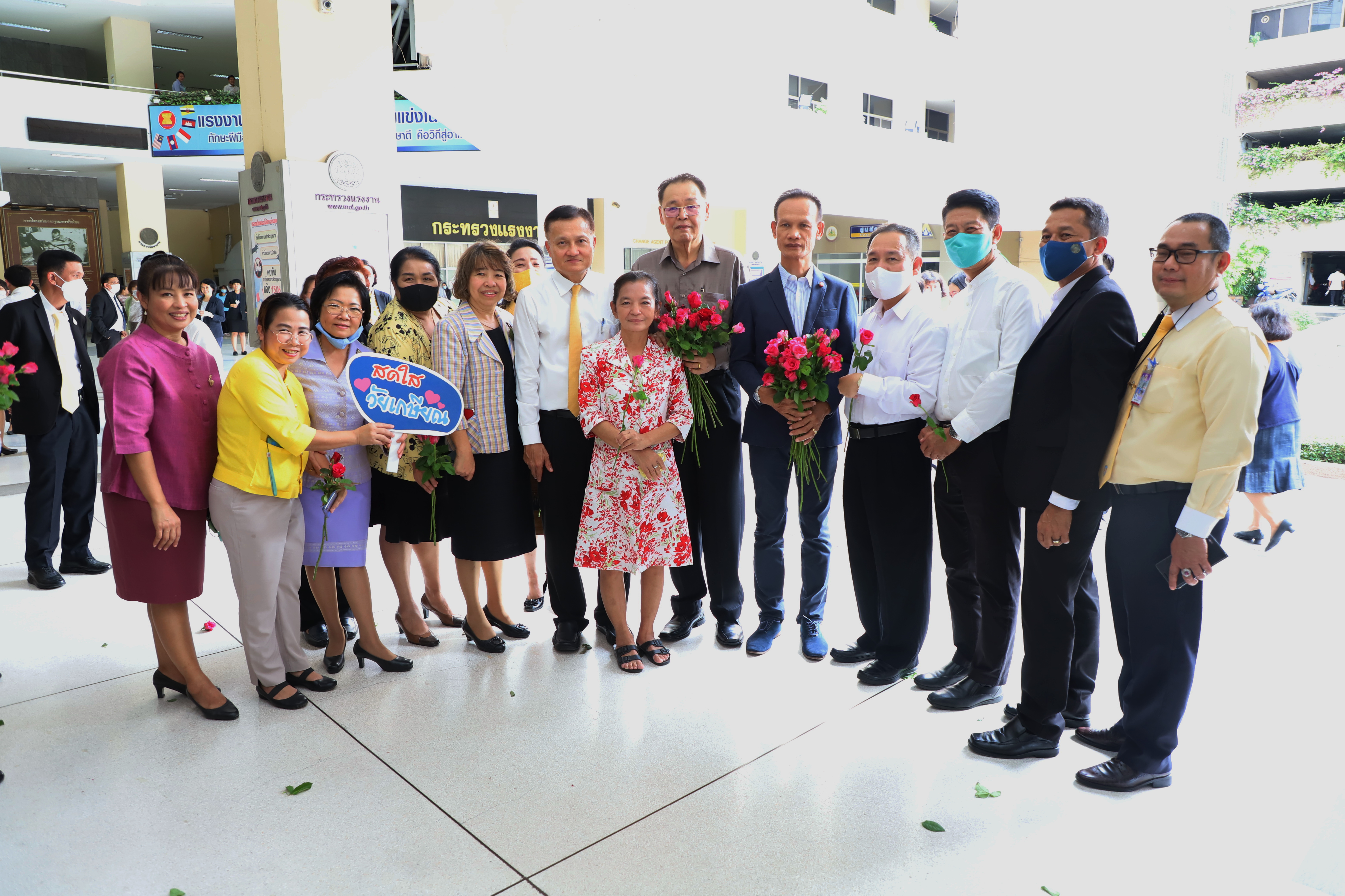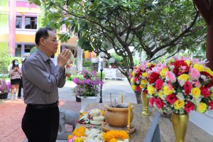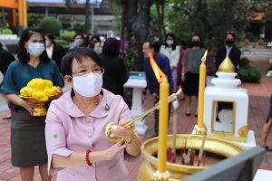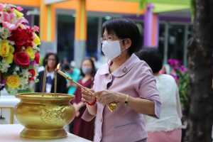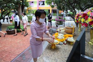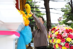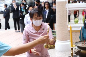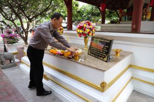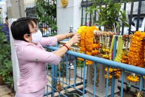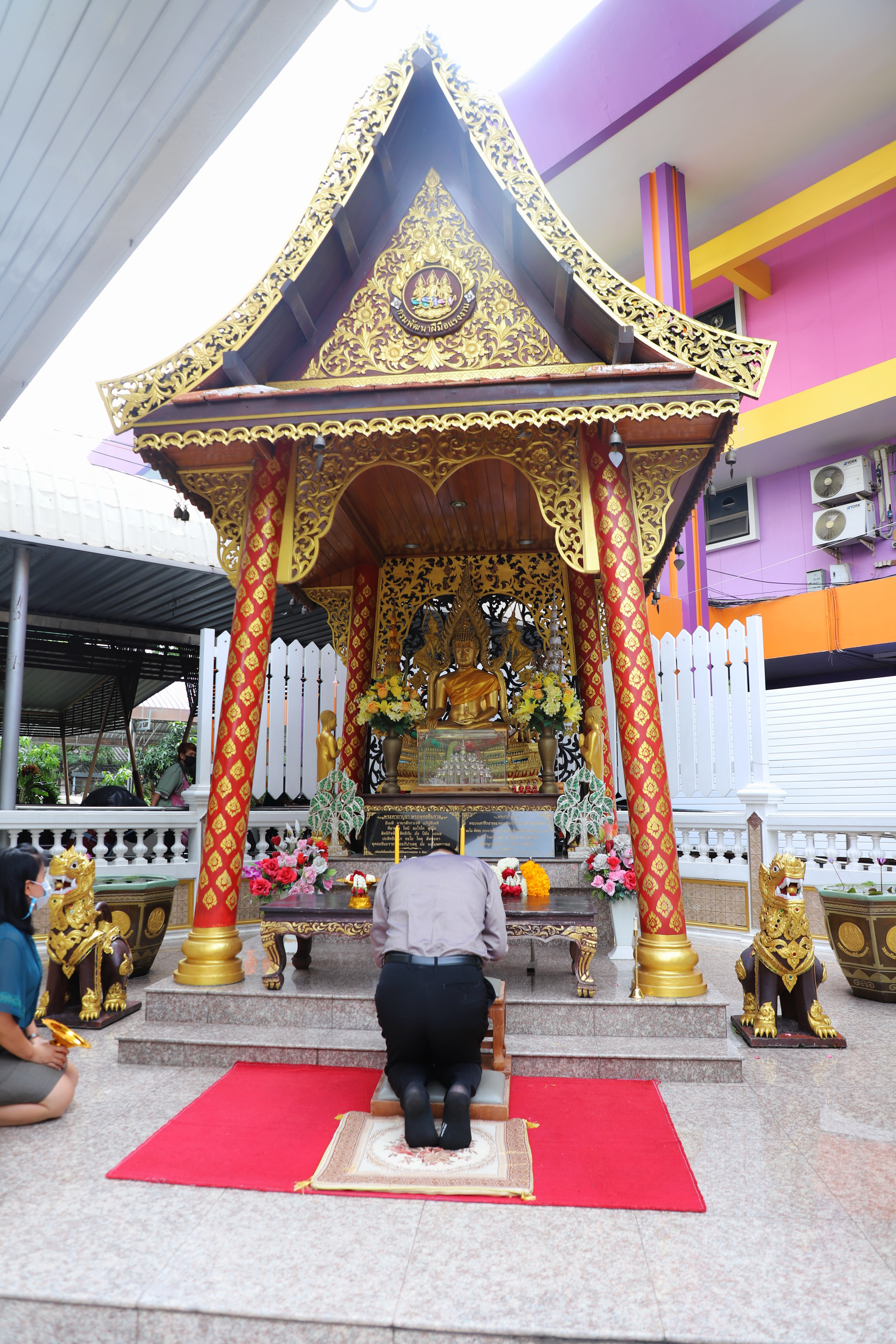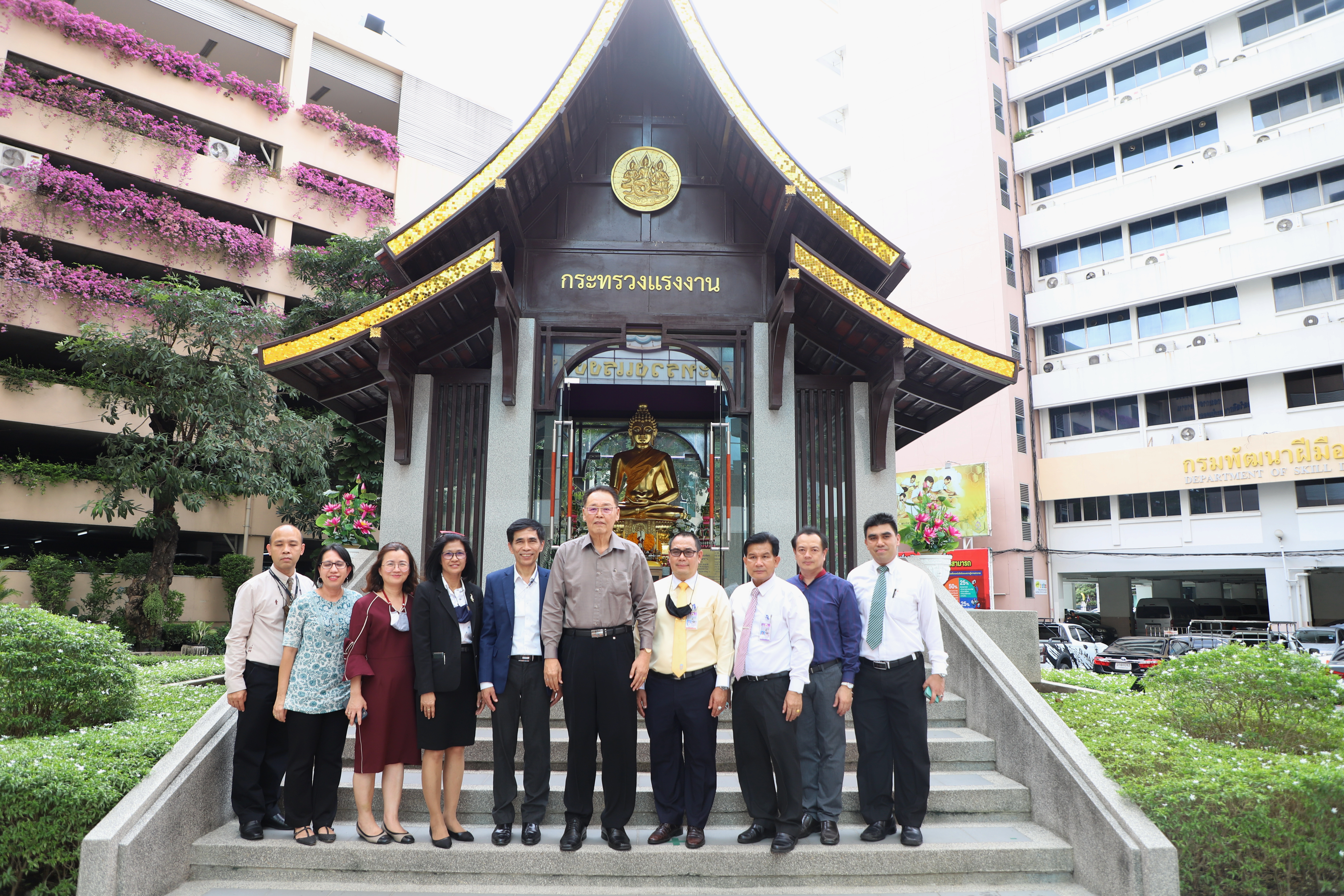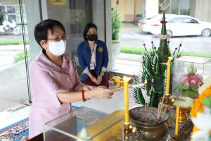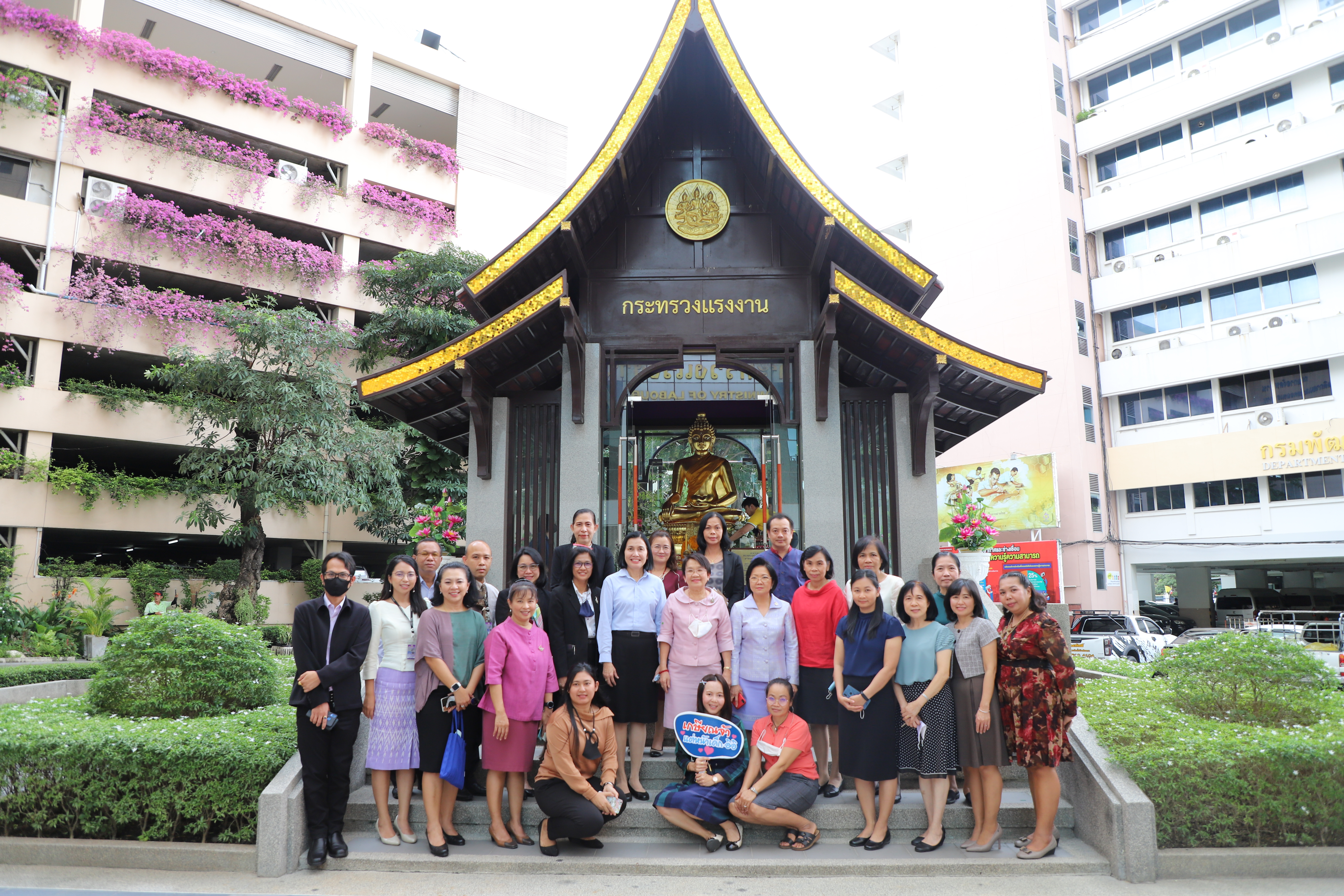 On September 30, 2020, at 15.30 hours, Deputy Permanent Secretary of Labour Mrs. Theanrat Nawamawat and Deputy Permanent Secretary of Labour Mr. Surapol Ploysook worshipped sacred items at the Ministry of Labour, including Phra Phut Sutthitham Bophit, Phra Phut Chinnarat, San Por Pu Chai Mongkhon, San Thao Mahaprom Thewarit, and San Por Pu Suchin, on the occasion of his retirement. The Ministry of Labour’s executives and civil servants gave flowers for good wishes.