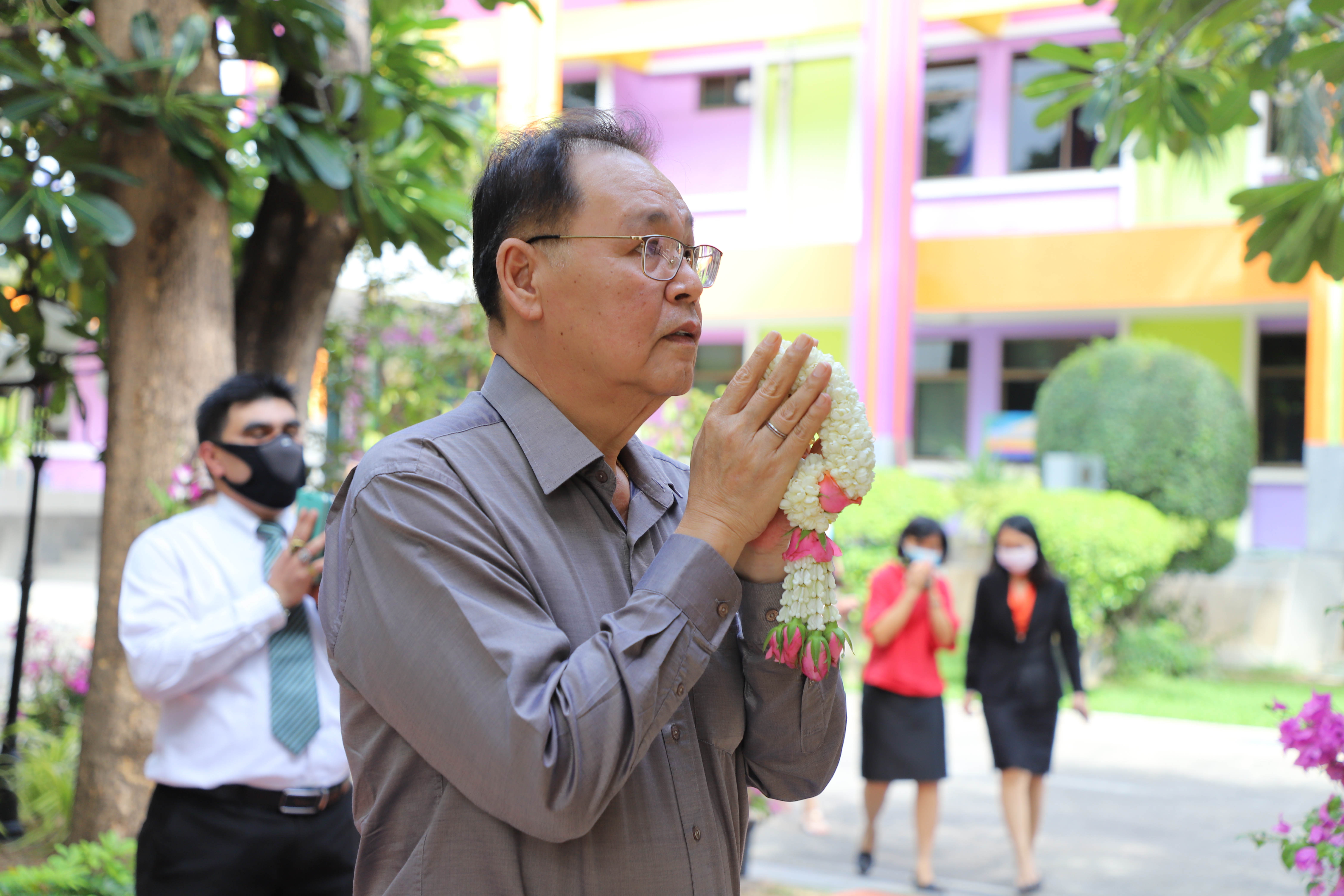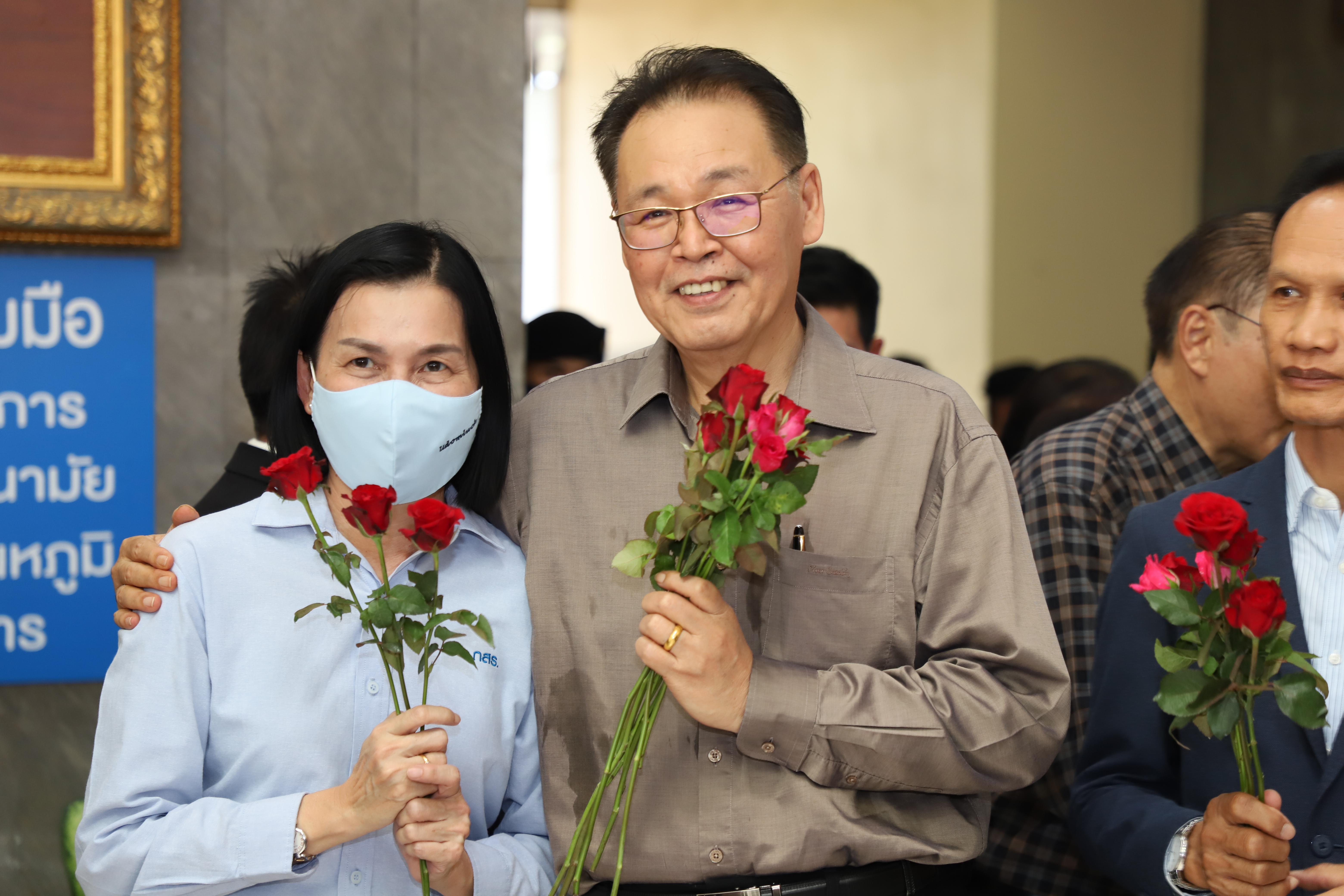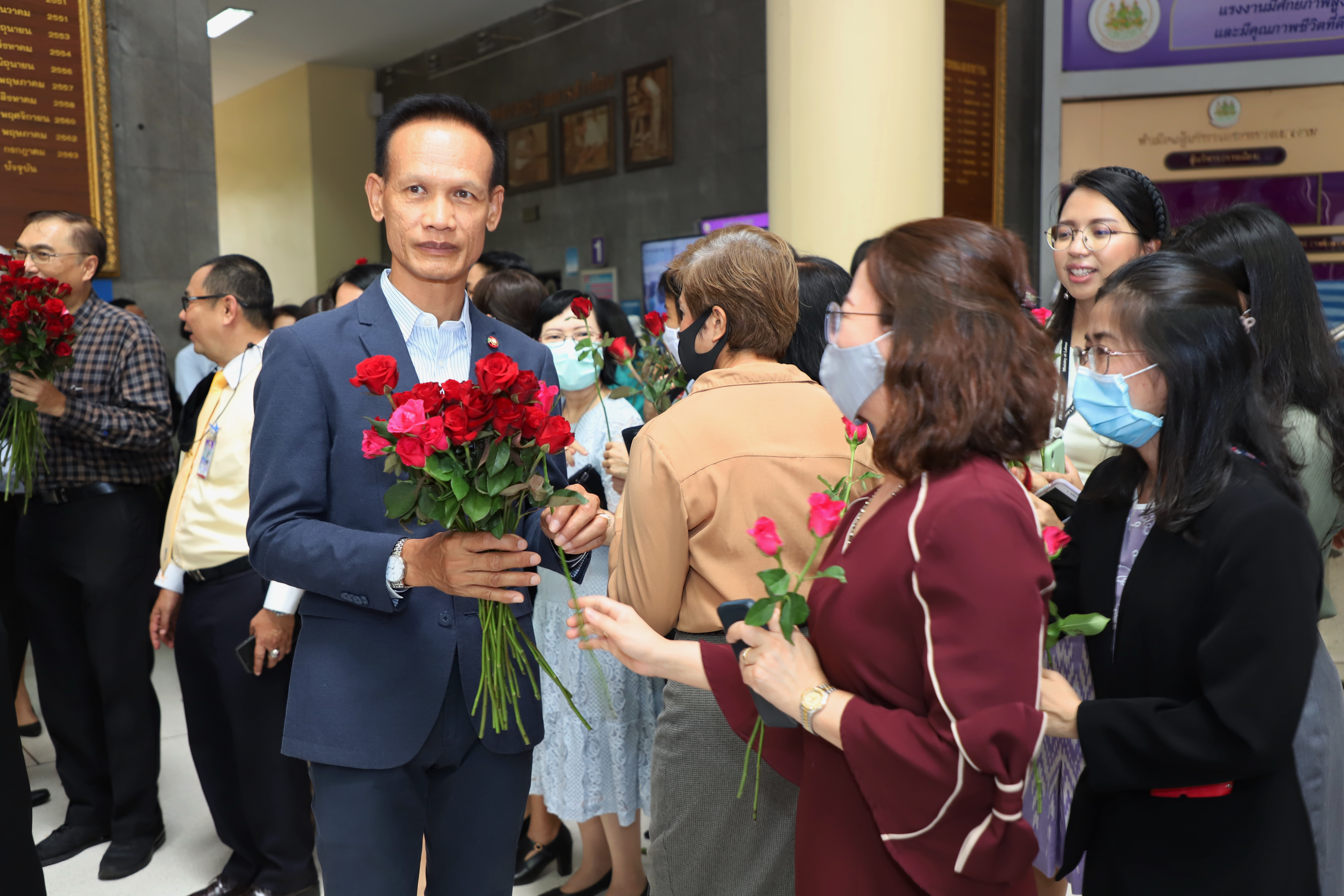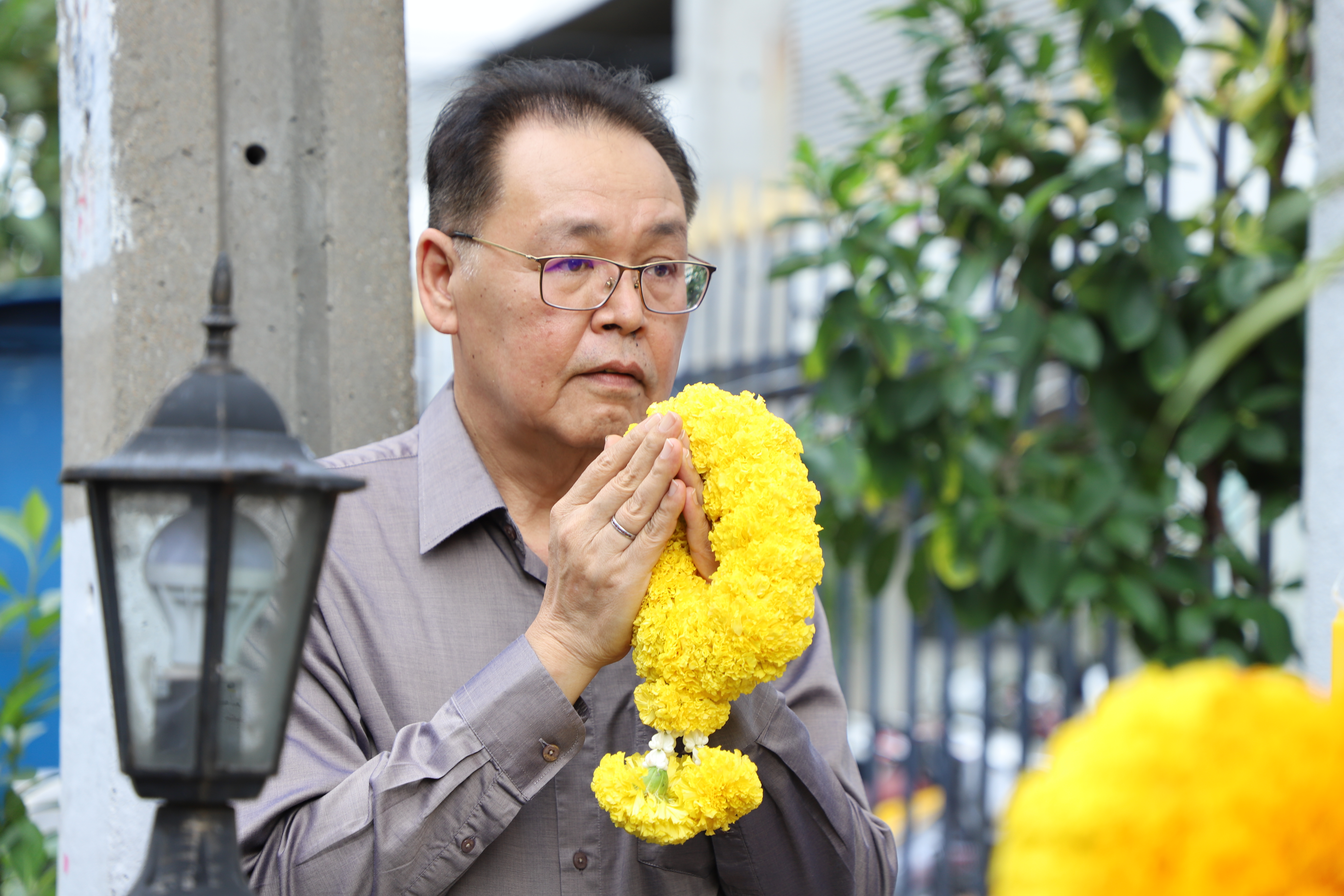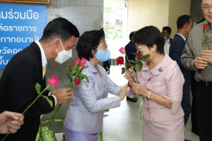 On September 30, 2020, at 15.30 hours, Deputy Permanent Secretary of Labour Mrs. Theanrat Nawamawat and Deputy Permanent Secretary of Labour Mr. Surapol Ploysook worshipped sacred items at the Ministry of Labour, including Phra Phut Sutthitham Bophit, Phra Phut Chinnarat, San Por Pu Chai Mongkhon, San Thao Mahaprom Thewarit, and San Por Pu Suchin, on the occasion of his retirement. The Ministry of Labour’s executives and civil servants gave flowers for good wishes.