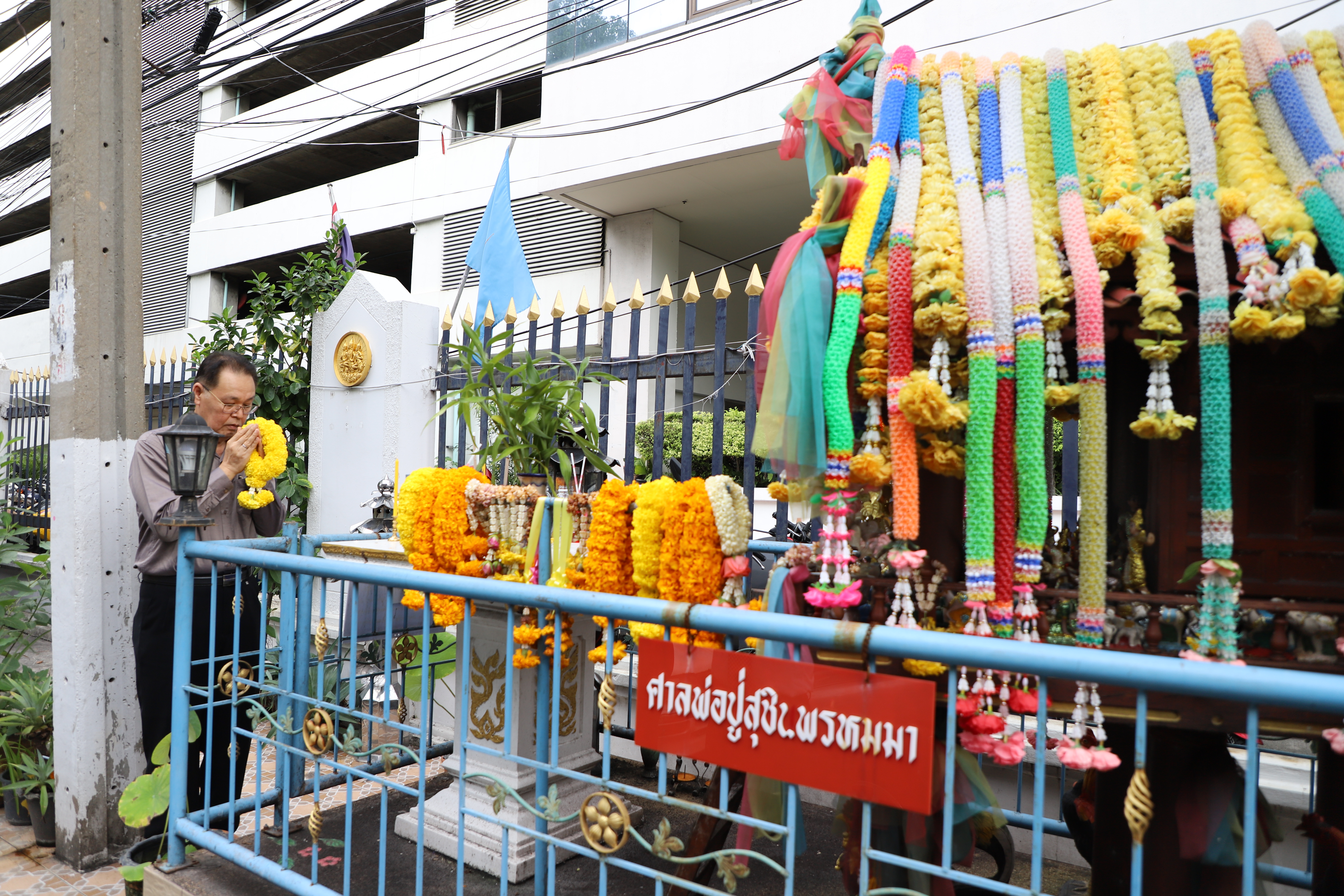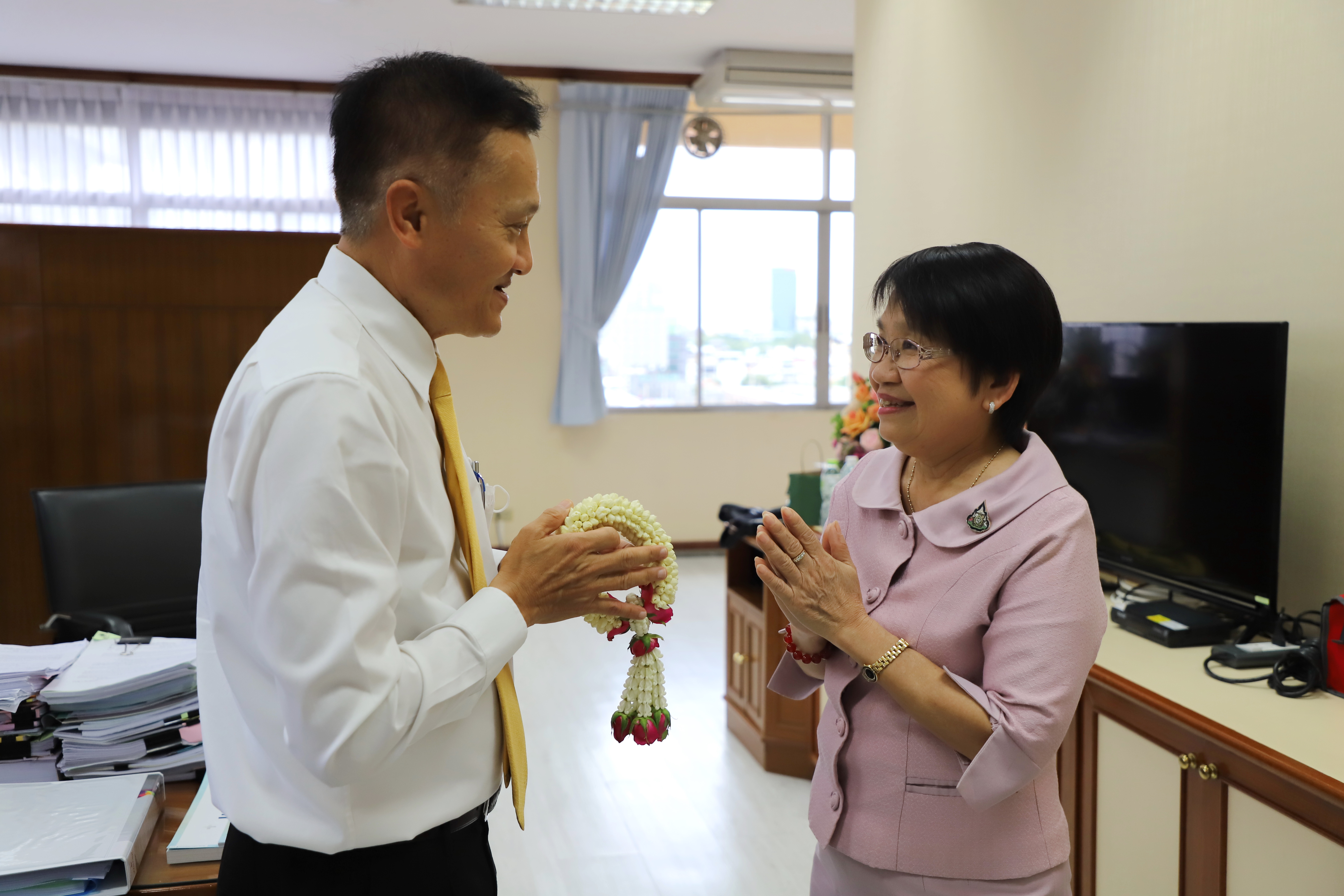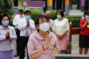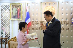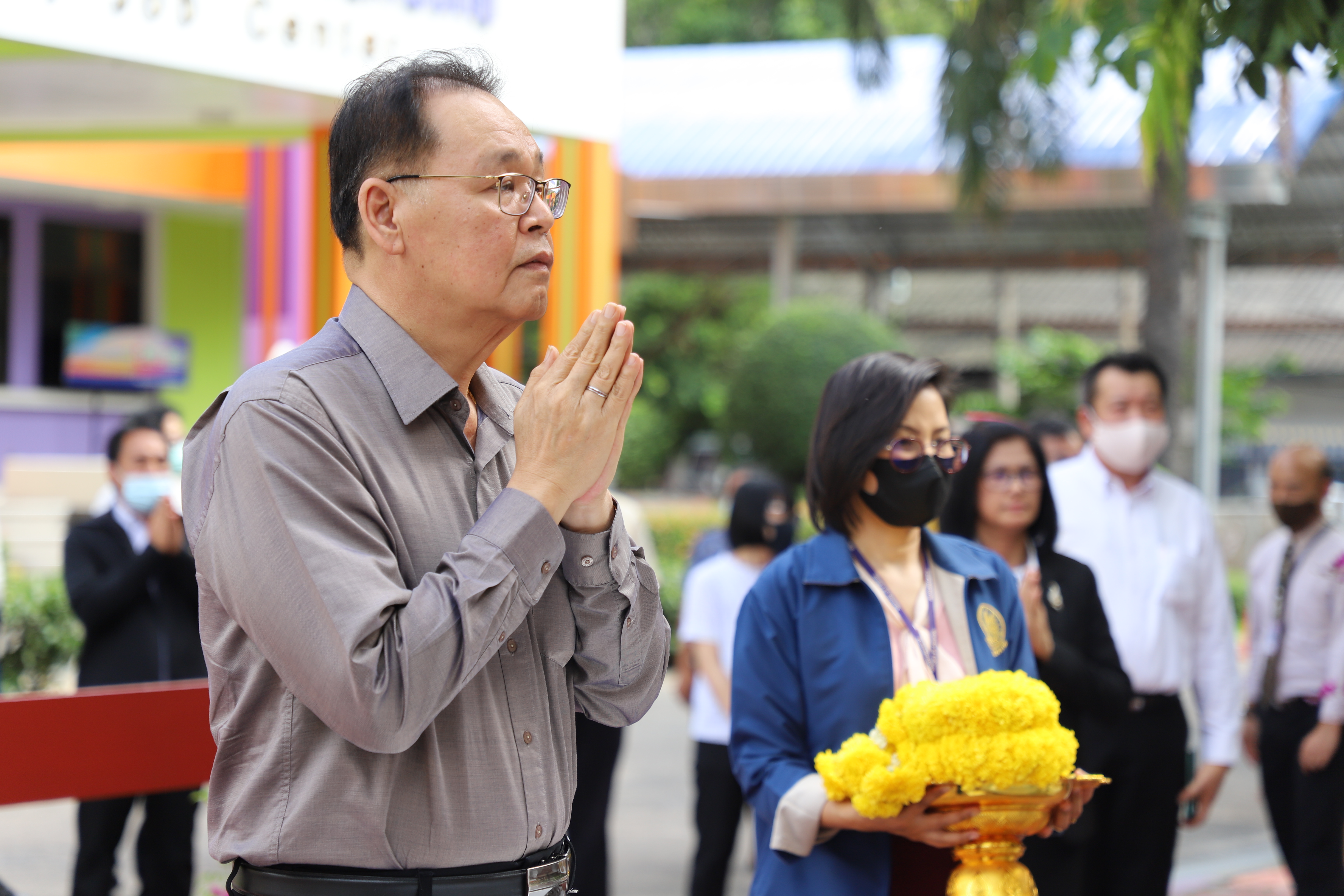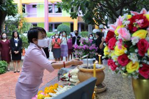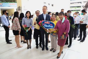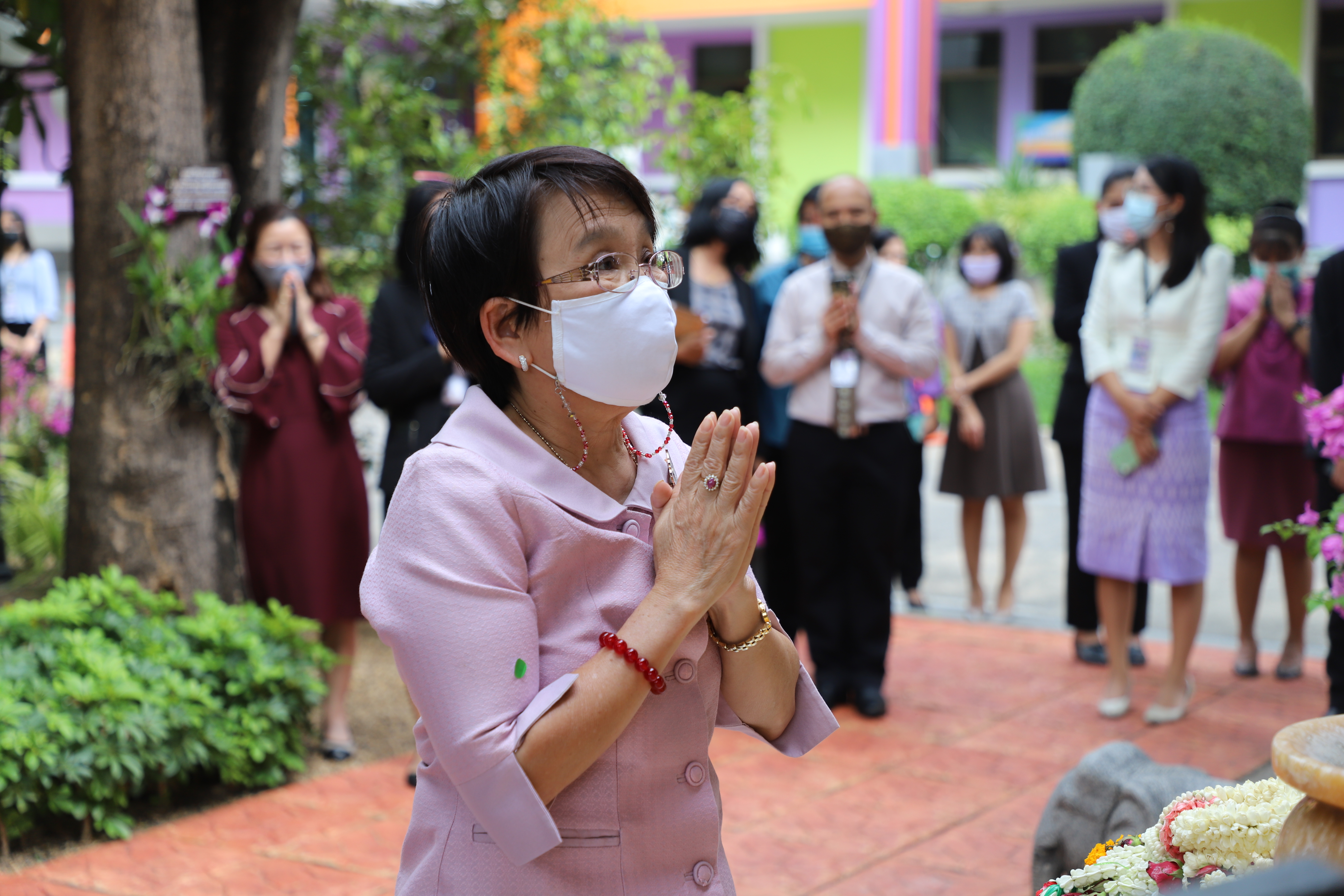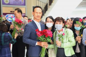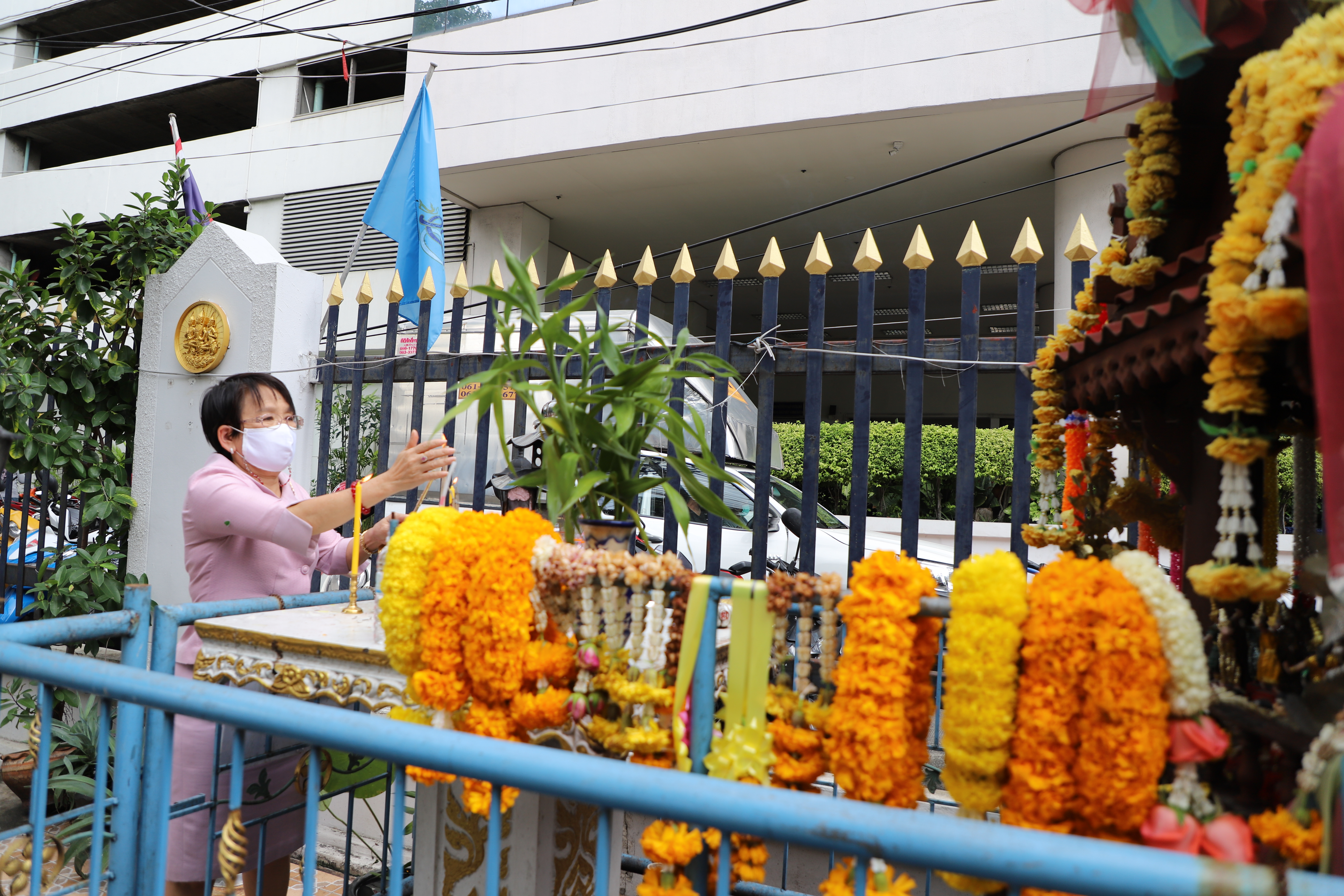 On September 30, 2020, at 15.30 hours, Deputy Permanent Secretary of Labour Mrs. Theanrat Nawamawat and Deputy Permanent Secretary of Labour Mr. Surapol Ploysook worshipped sacred items at the Ministry of Labour, including Phra Phut Sutthitham Bophit, Phra Phut Chinnarat, San Por Pu Chai Mongkhon, San Thao Mahaprom Thewarit, and San Por Pu Suchin, on the occasion of his retirement. The Ministry of Labour’s executives and civil servants gave flowers for good wishes.