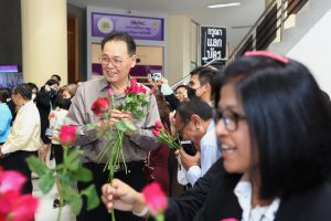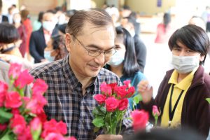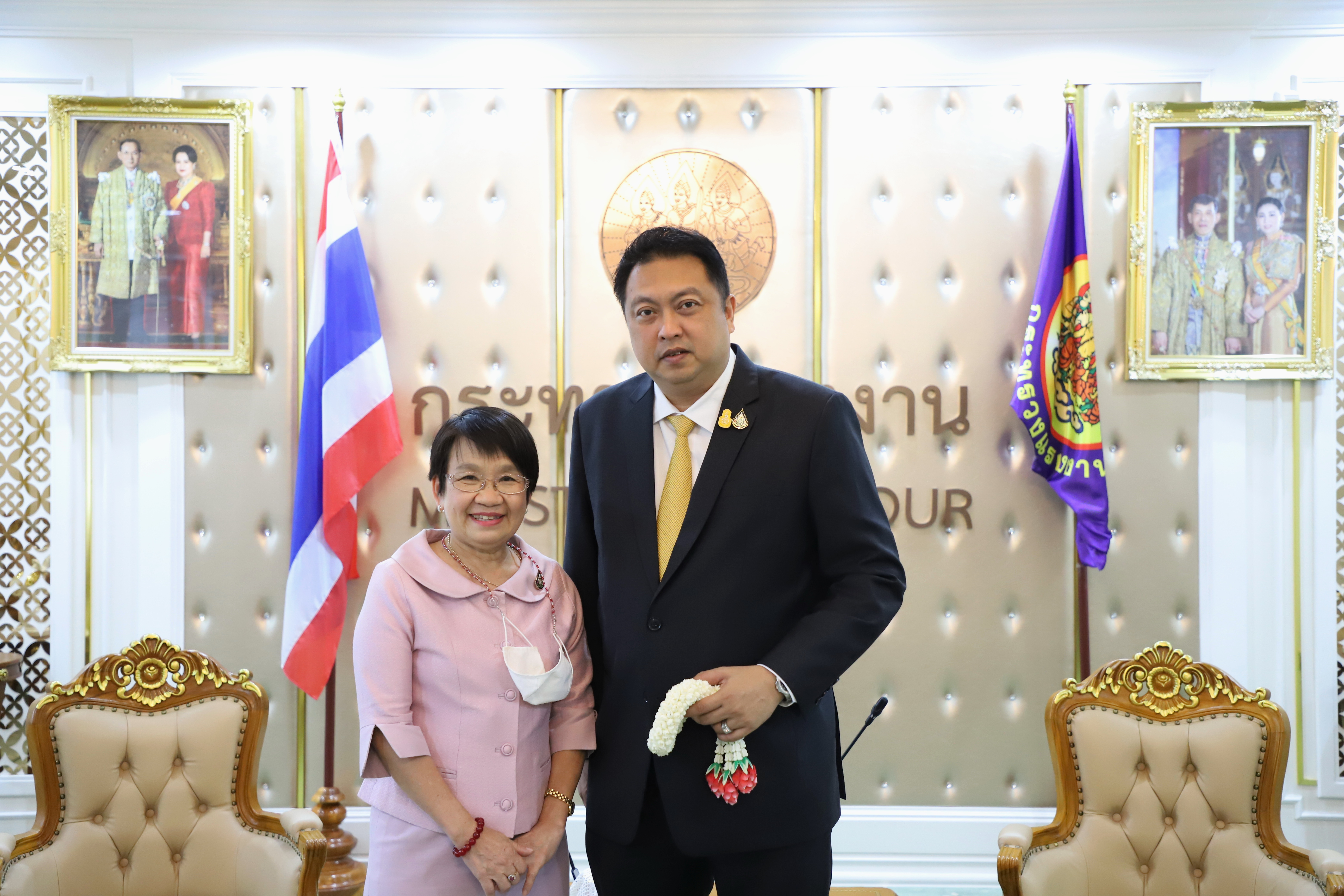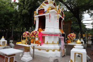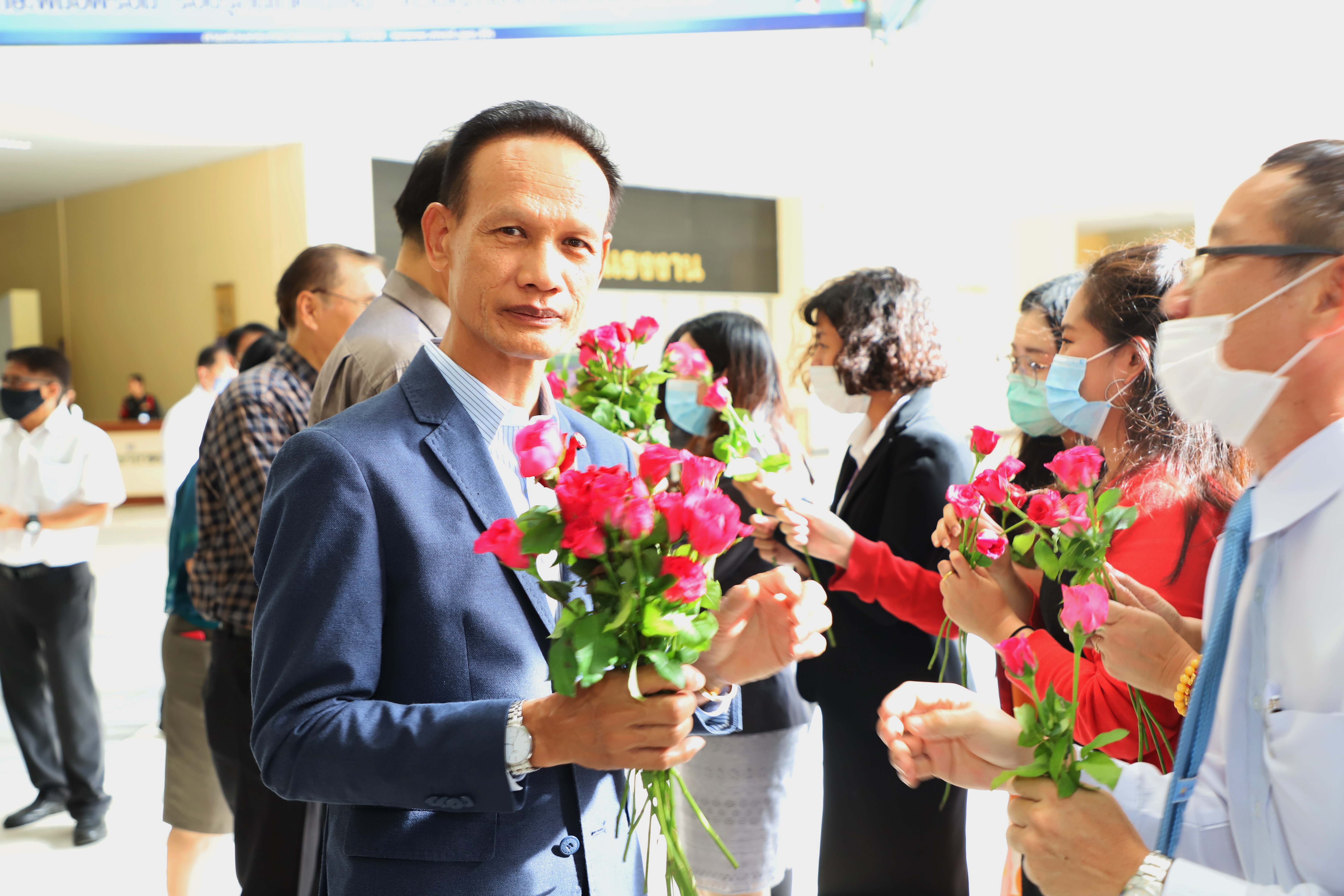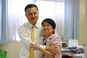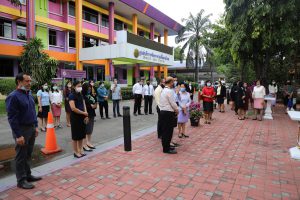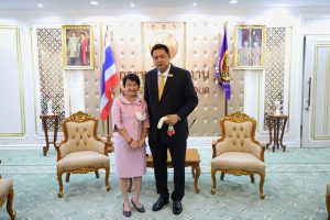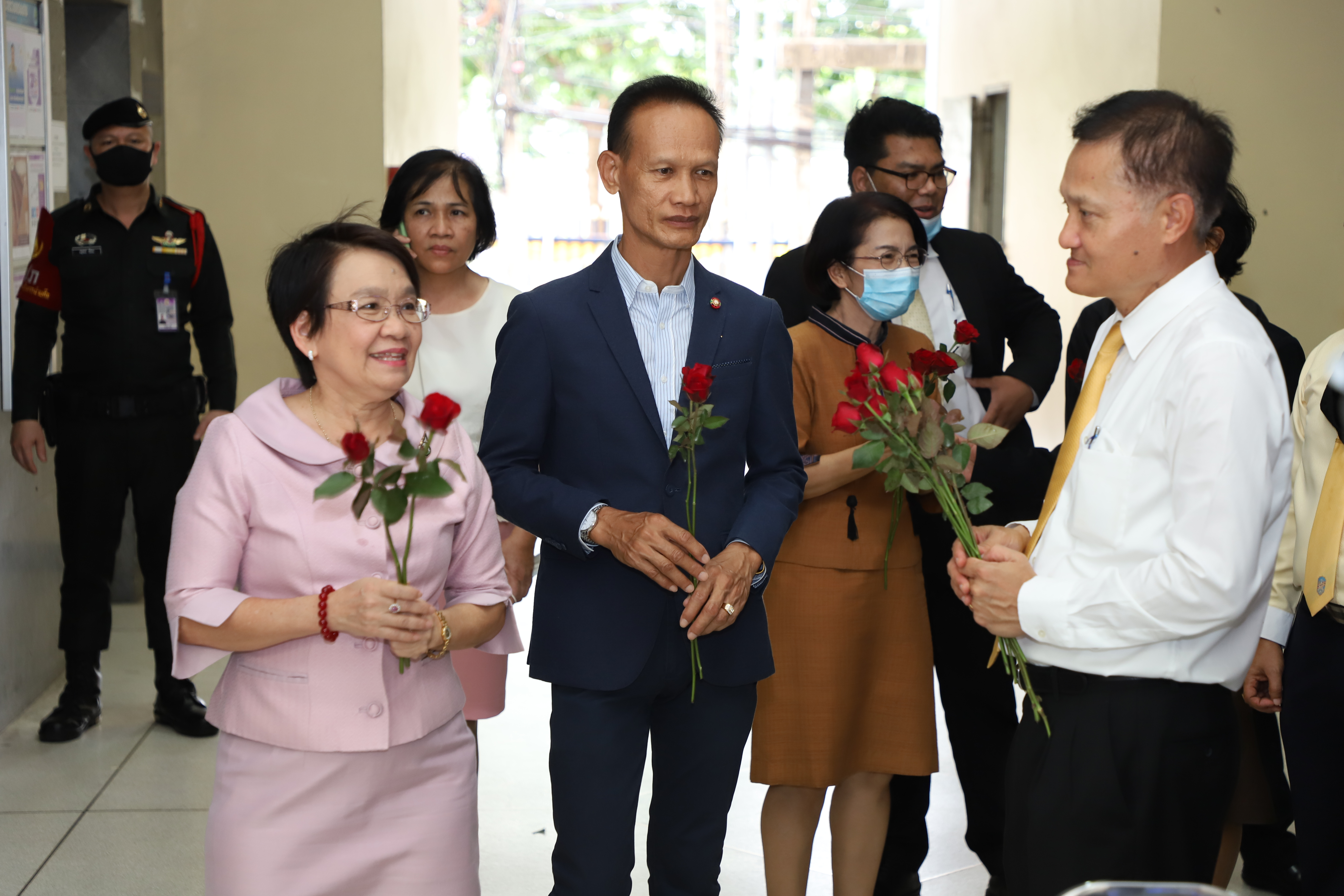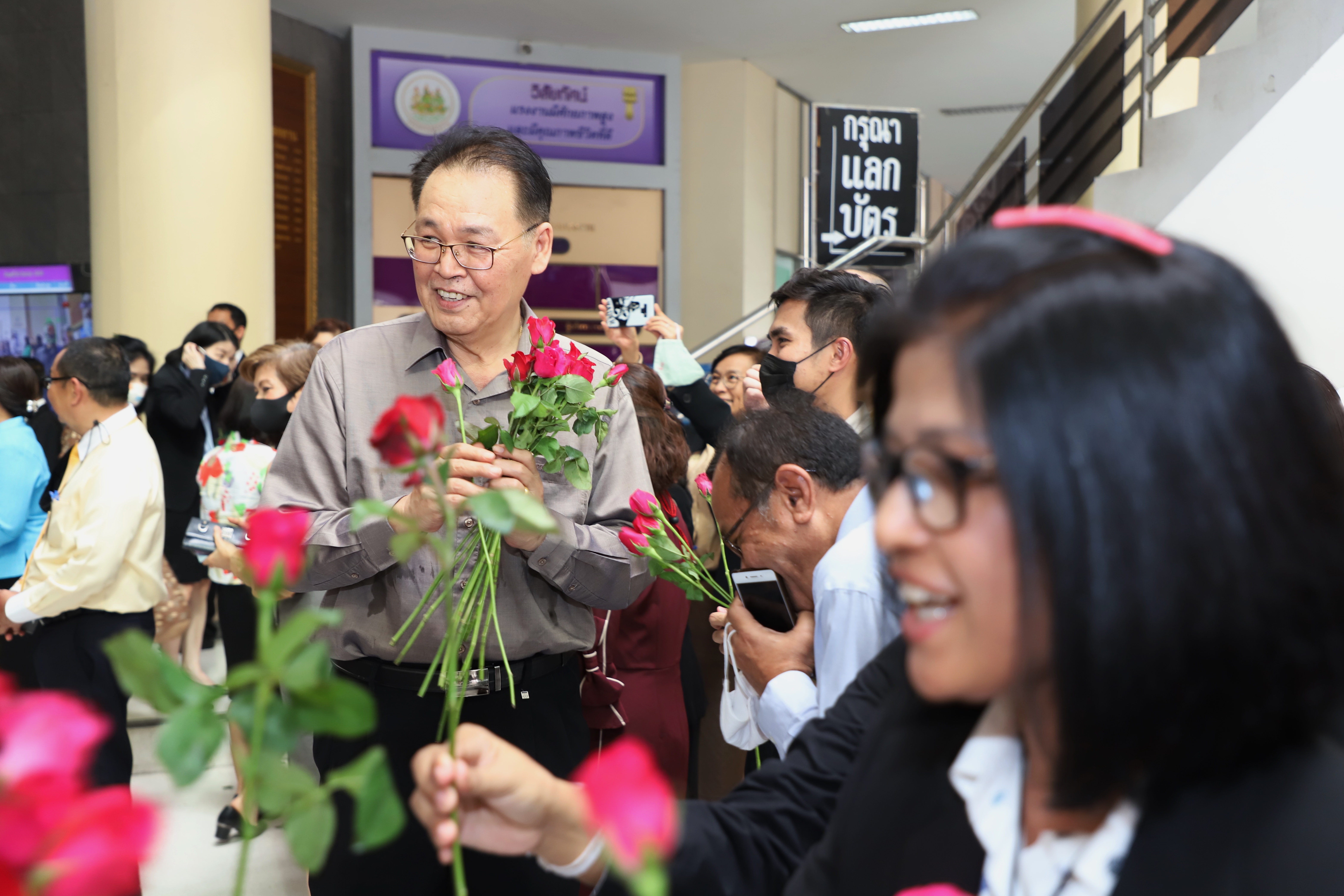 On September 30, 2020, at 15.30 hours, Deputy Permanent Secretary of Labour Mrs. Theanrat Nawamawat and Deputy Permanent Secretary of Labour Mr. Surapol Ploysook worshipped sacred items at the Ministry of Labour, including Phra Phut Sutthitham Bophit, Phra Phut Chinnarat, San Por Pu Chai Mongkhon, San Thao Mahaprom Thewarit, and San Por Pu Suchin, on the occasion of his retirement. The Ministry of Labour’s executives and civil servants gave flowers for good wishes.