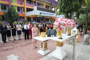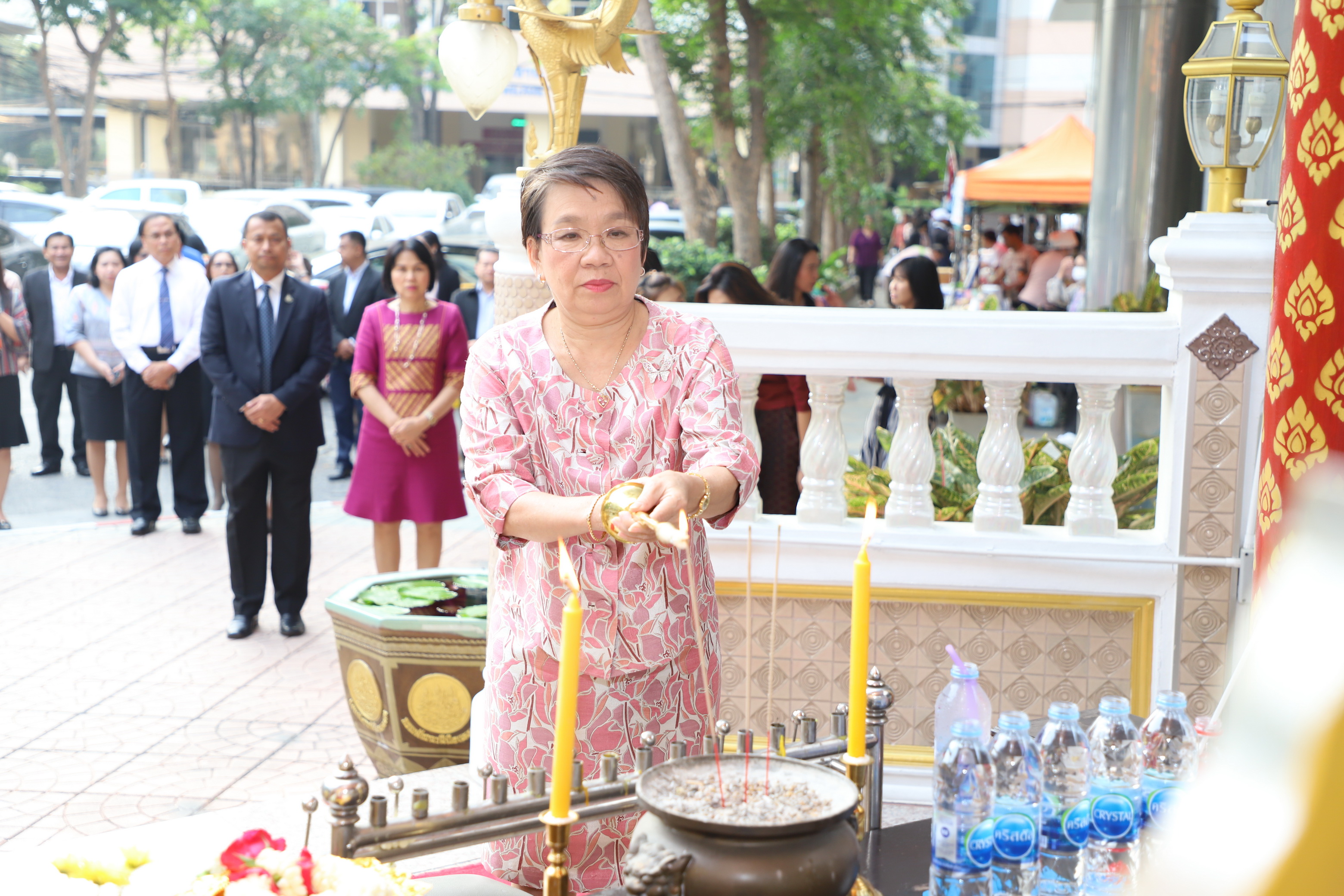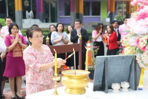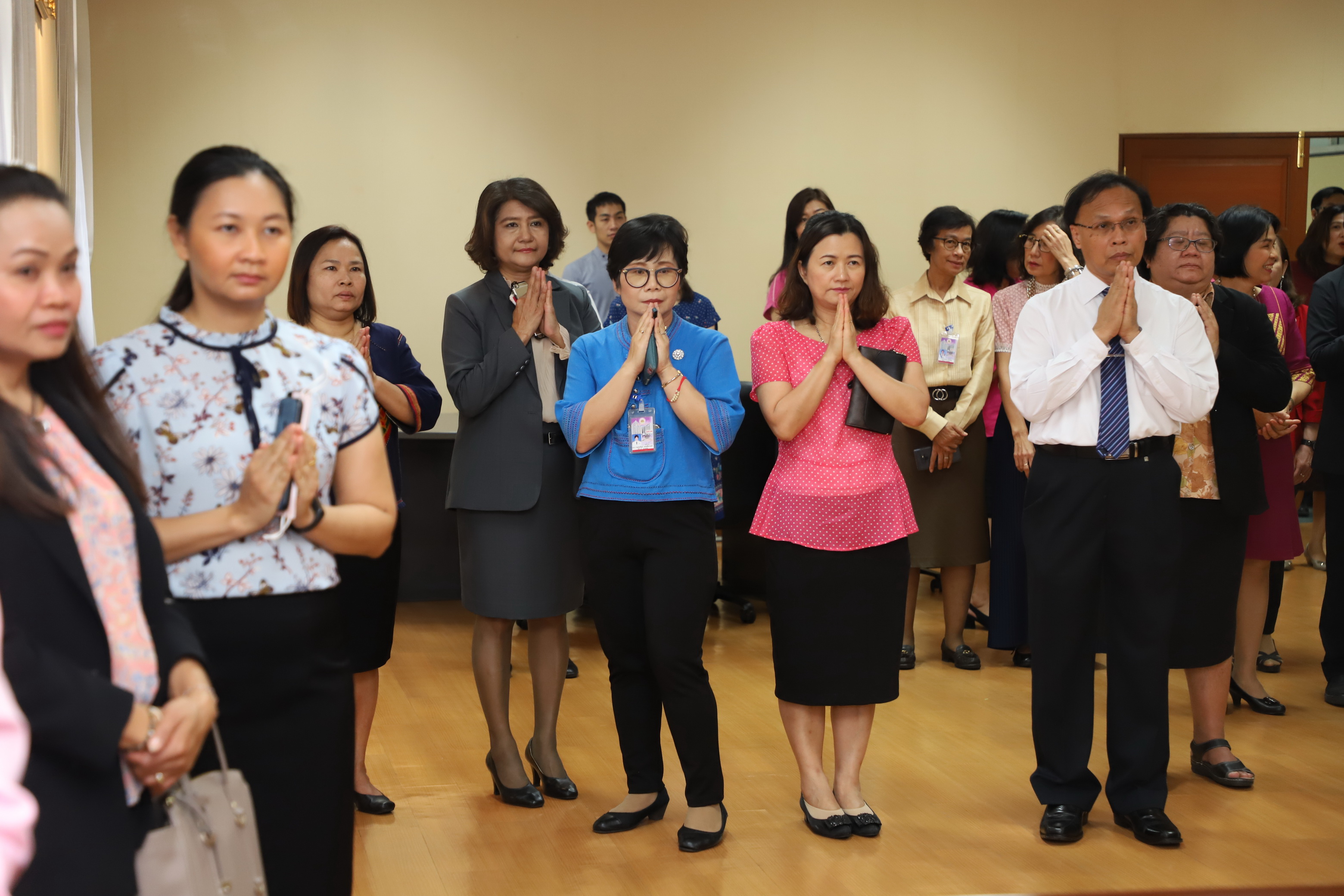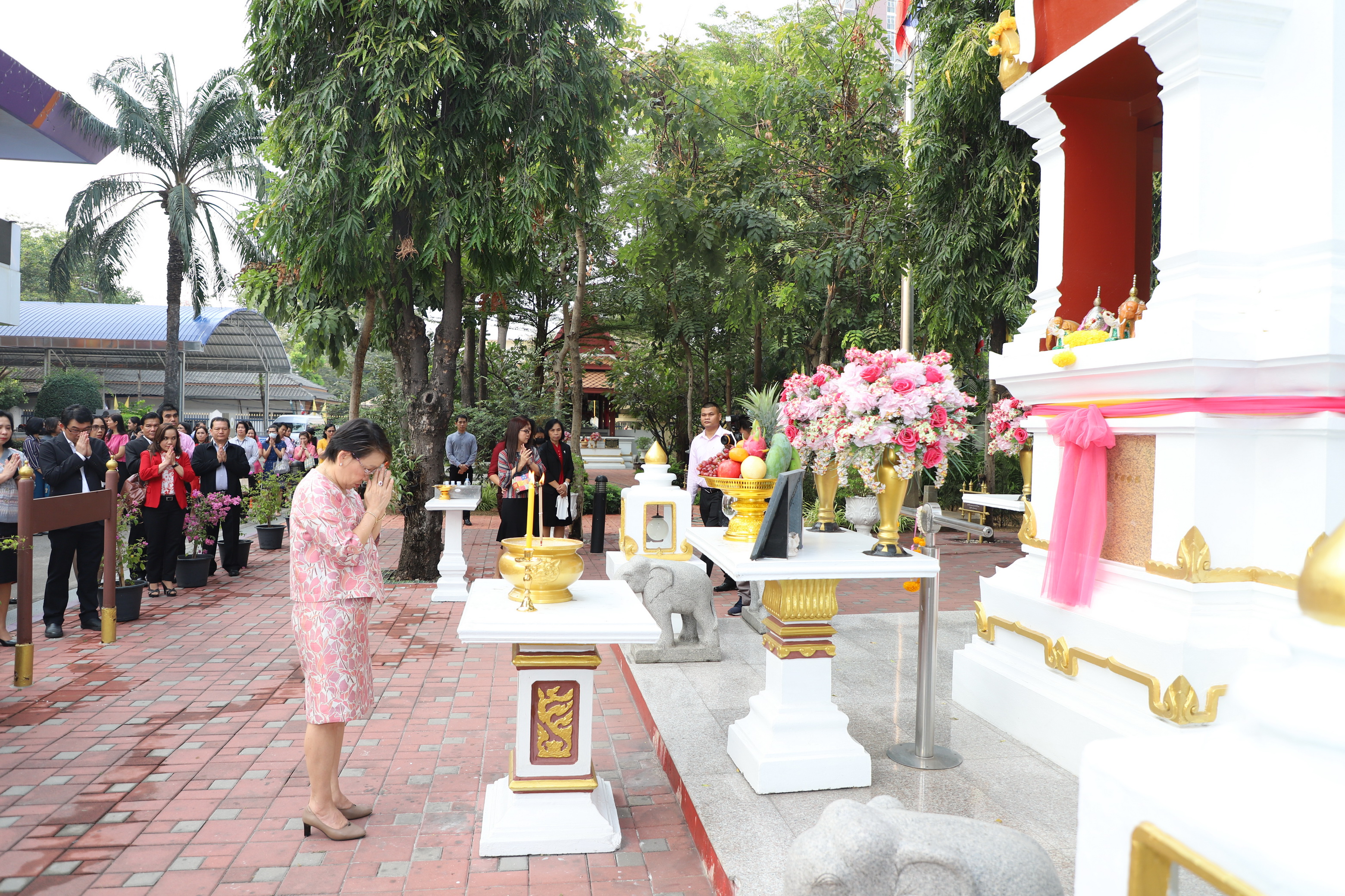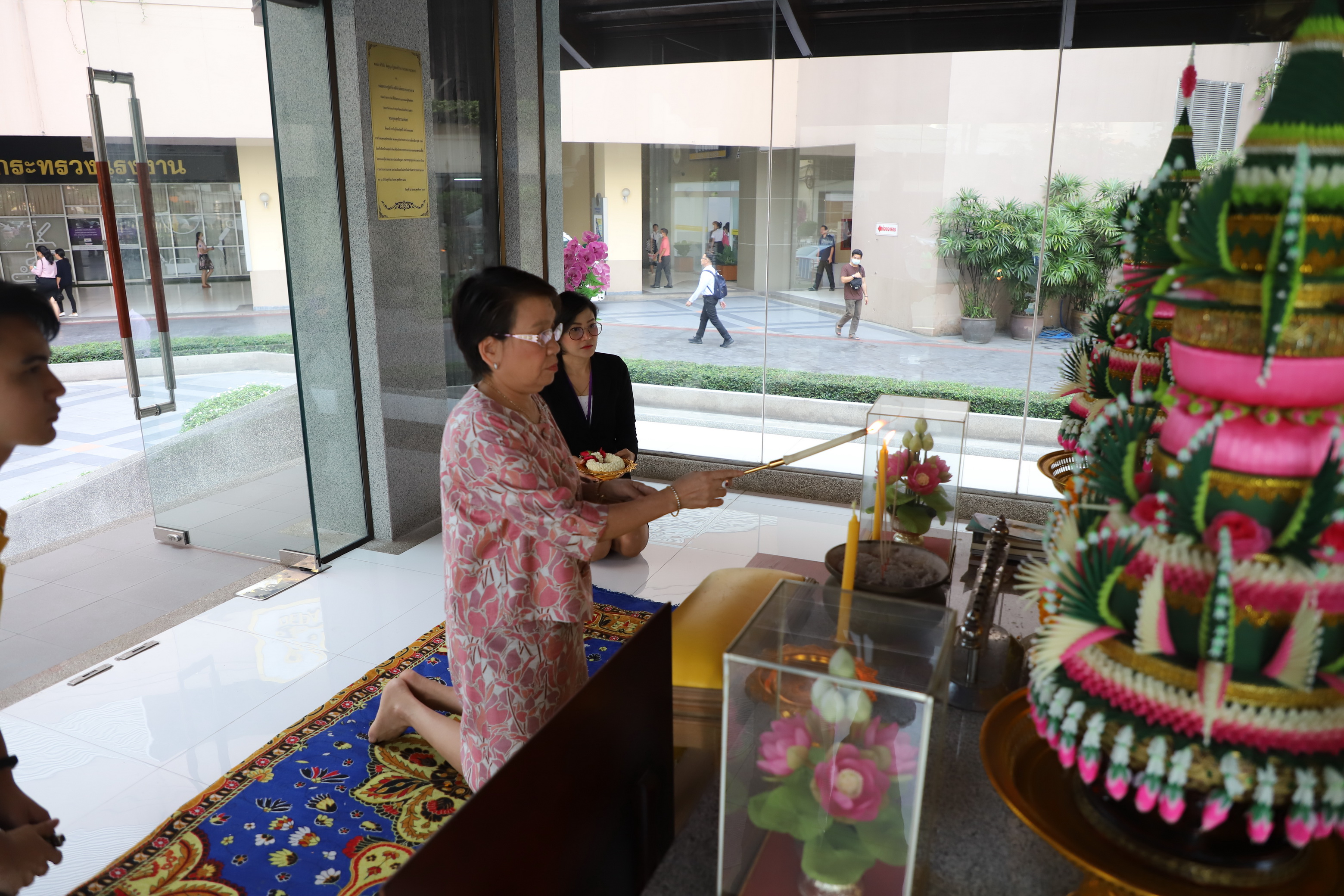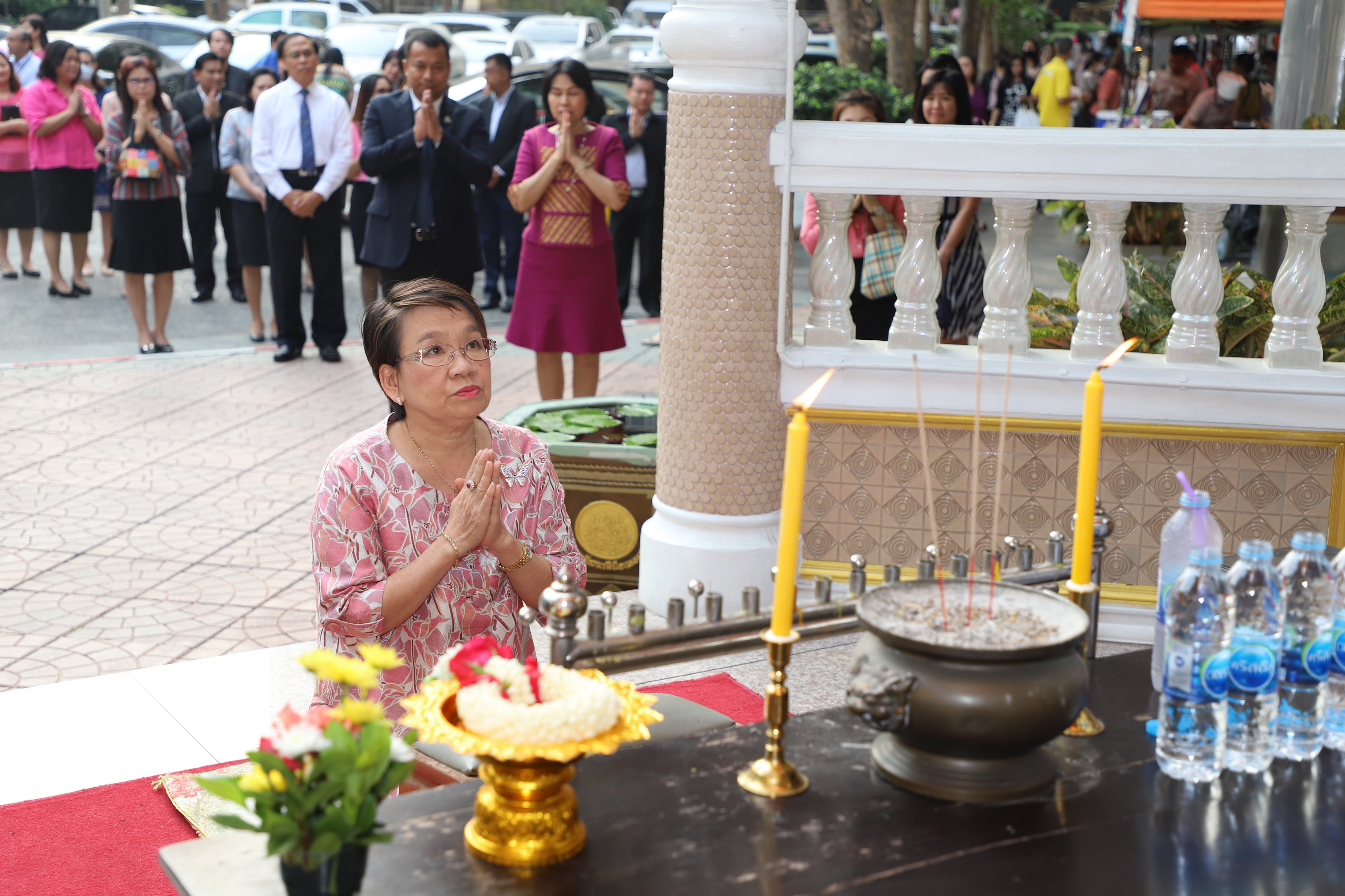 On February 4, 2020, at 08.30 hours, Deputy Permanent Secretary of Labour Mrs. Theanrat Nawamawat paid homage to the sacred items at the Ministry of Labour, including Phra Phut Sutthitham Bophit, Phra Phut Chinnarat, San Por Pu Chai Mongkhon, San Thao Mahaprom Thewarit, and San Por Pu Suchin Promma, on the occasion of appointment to Deputy Permanent Secretary of Labour.