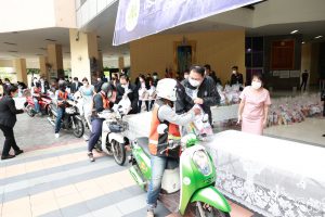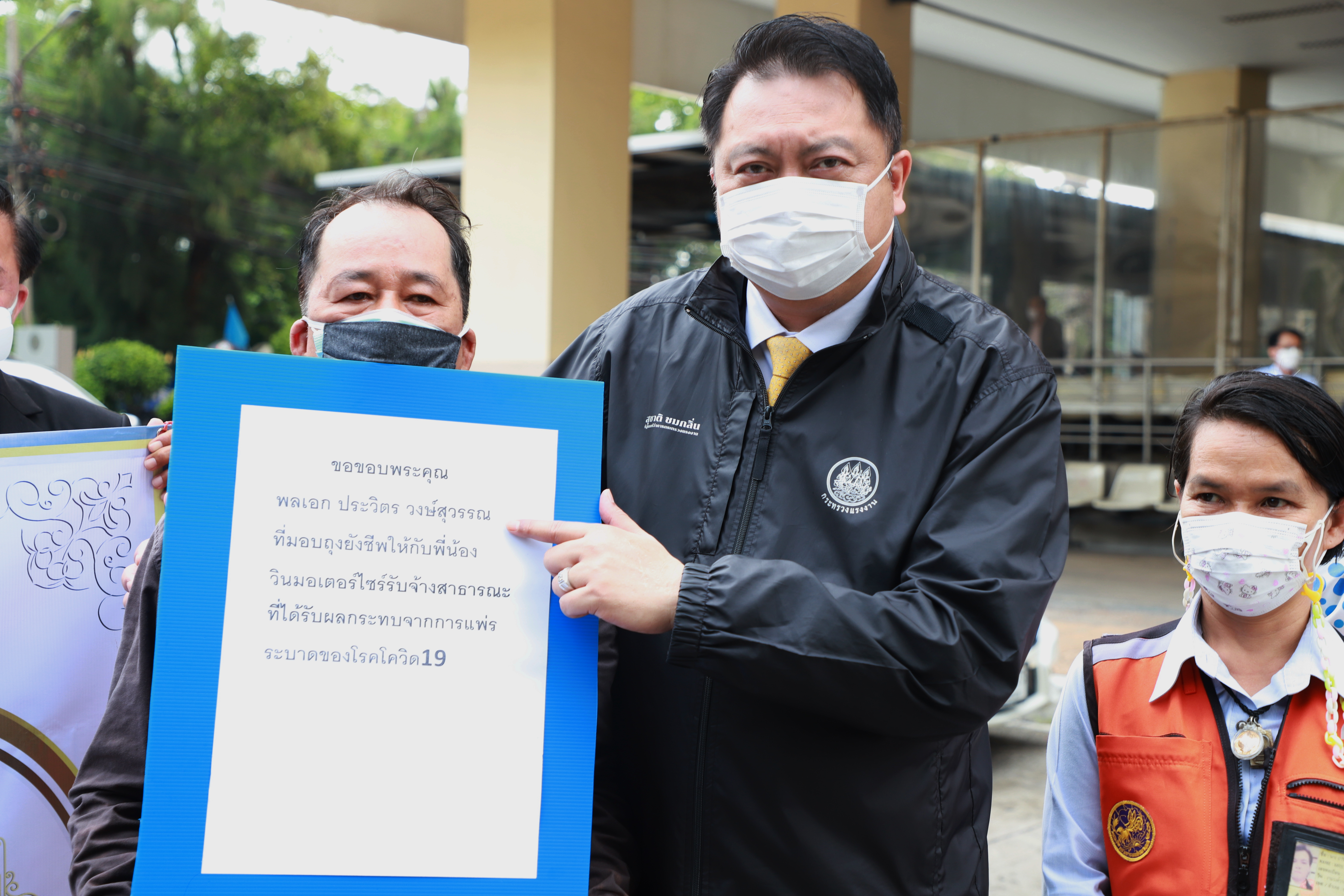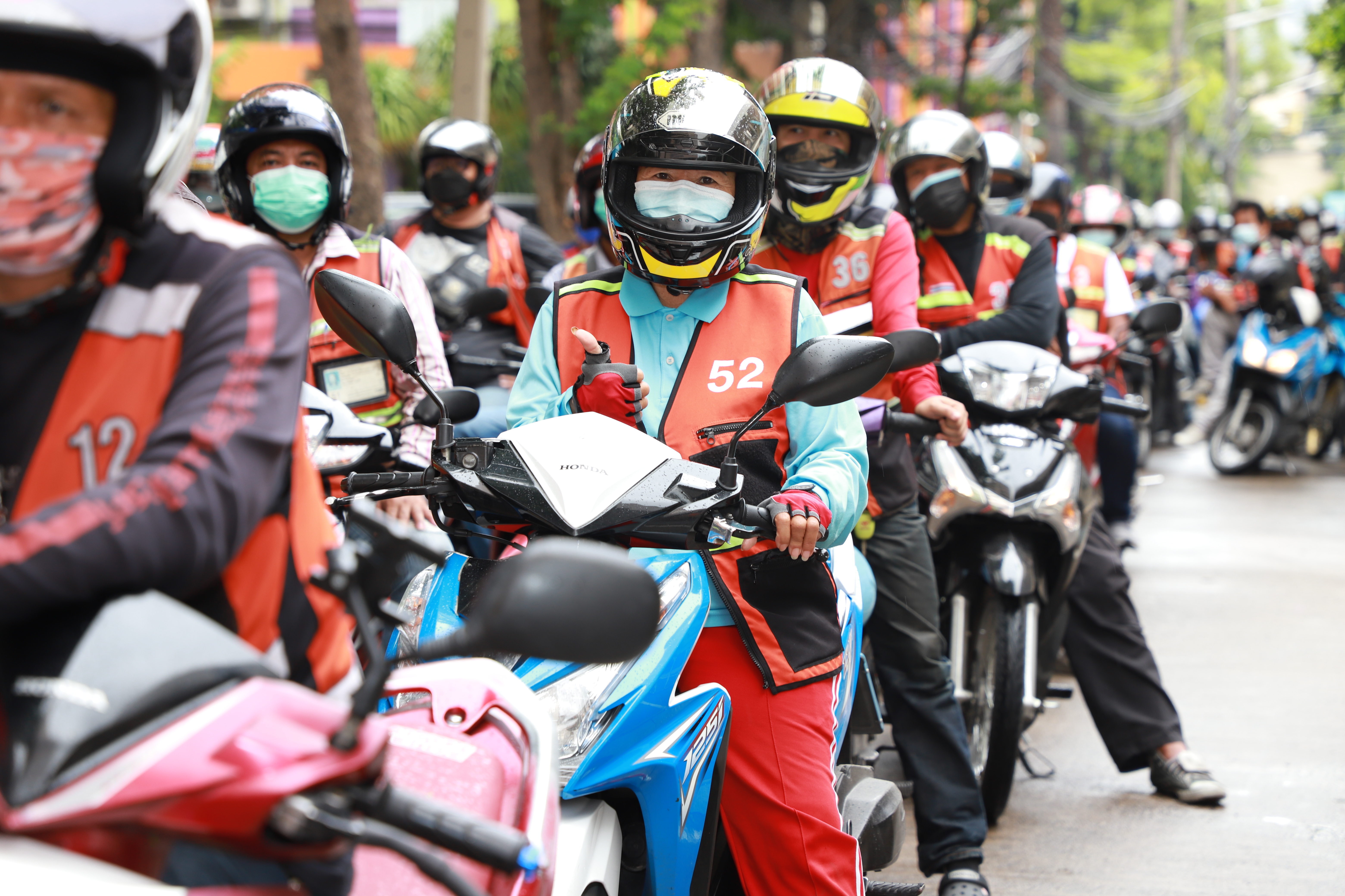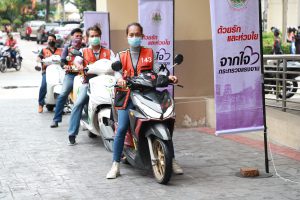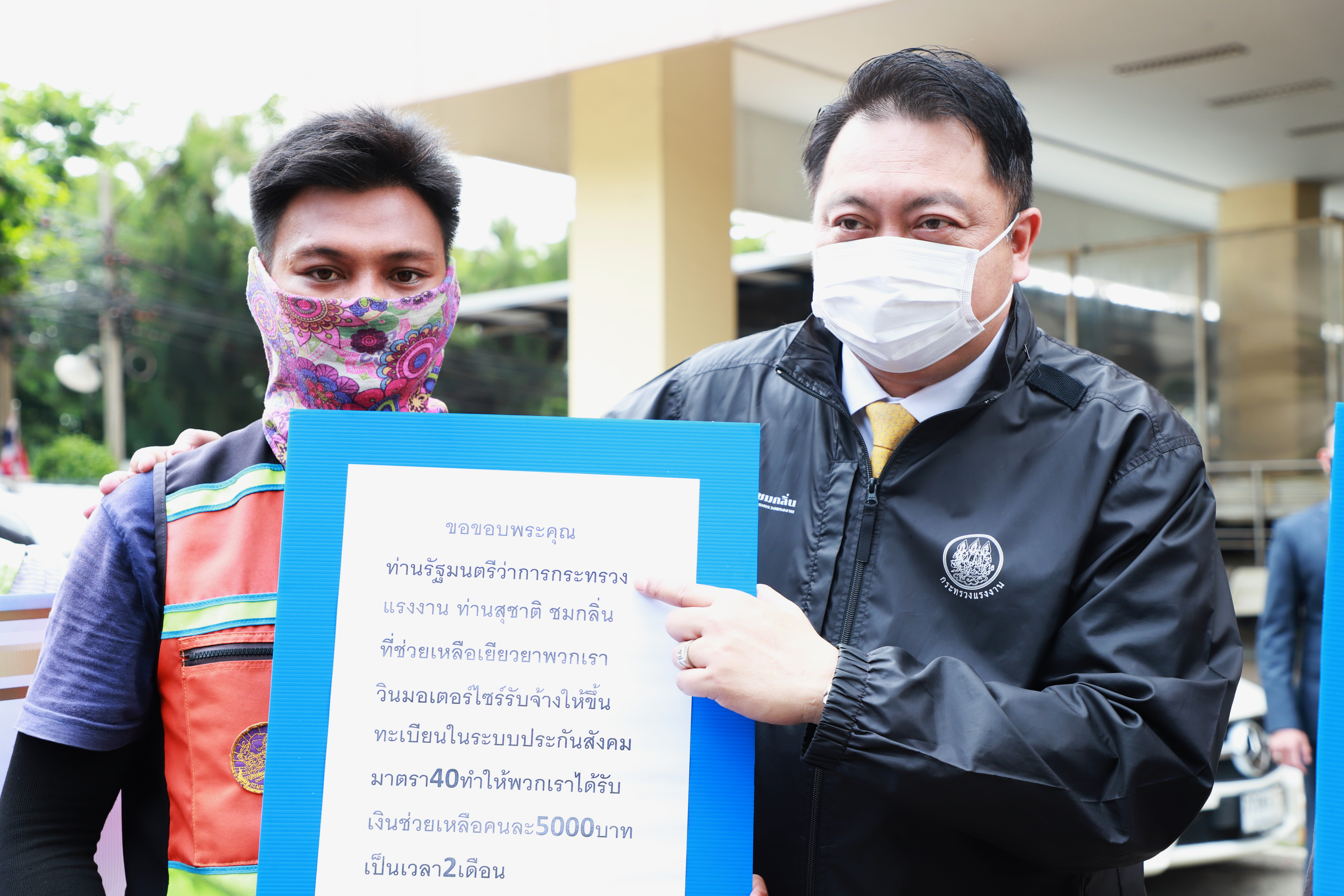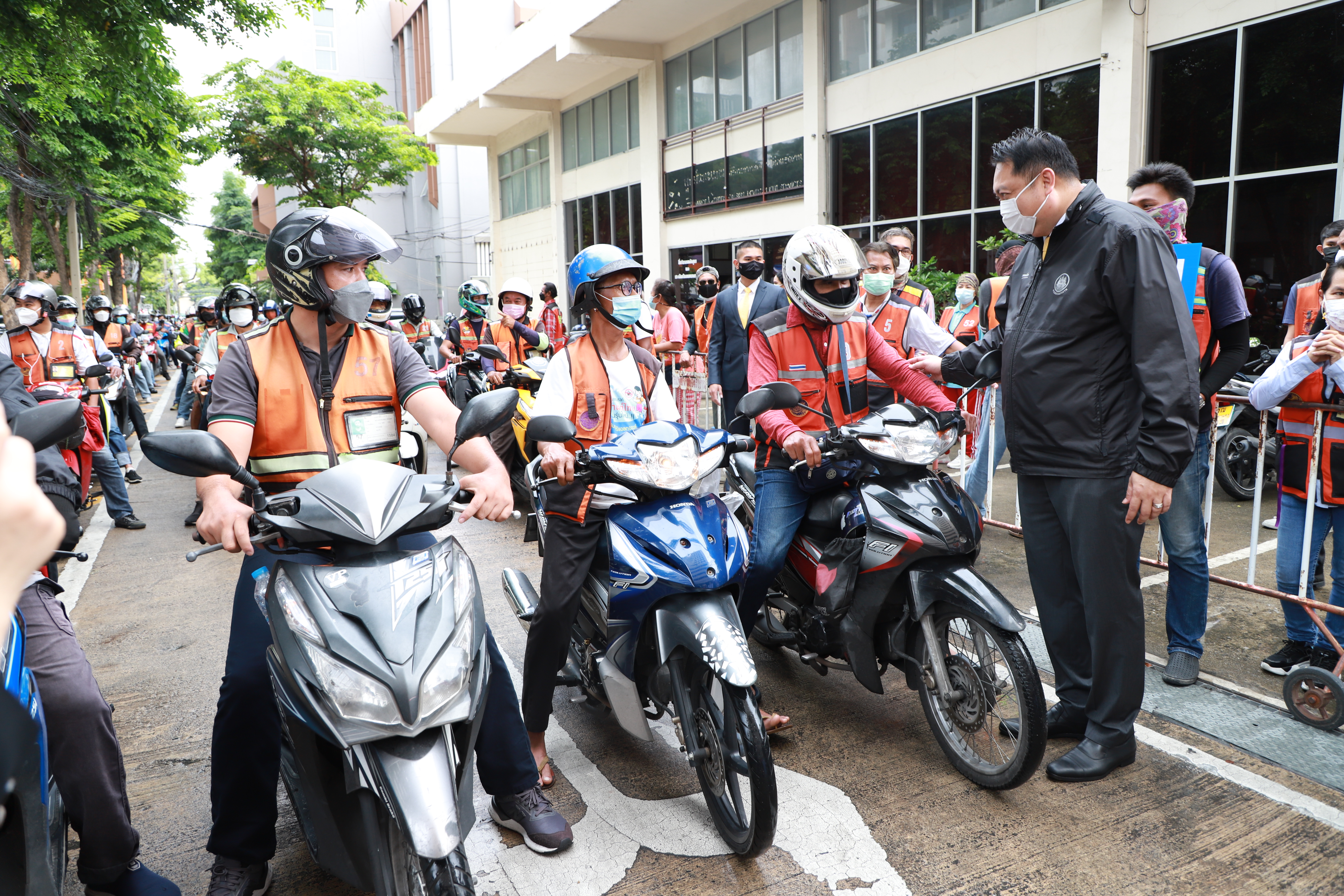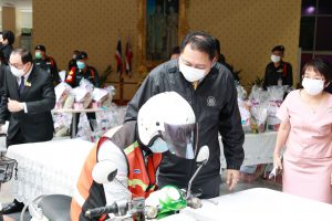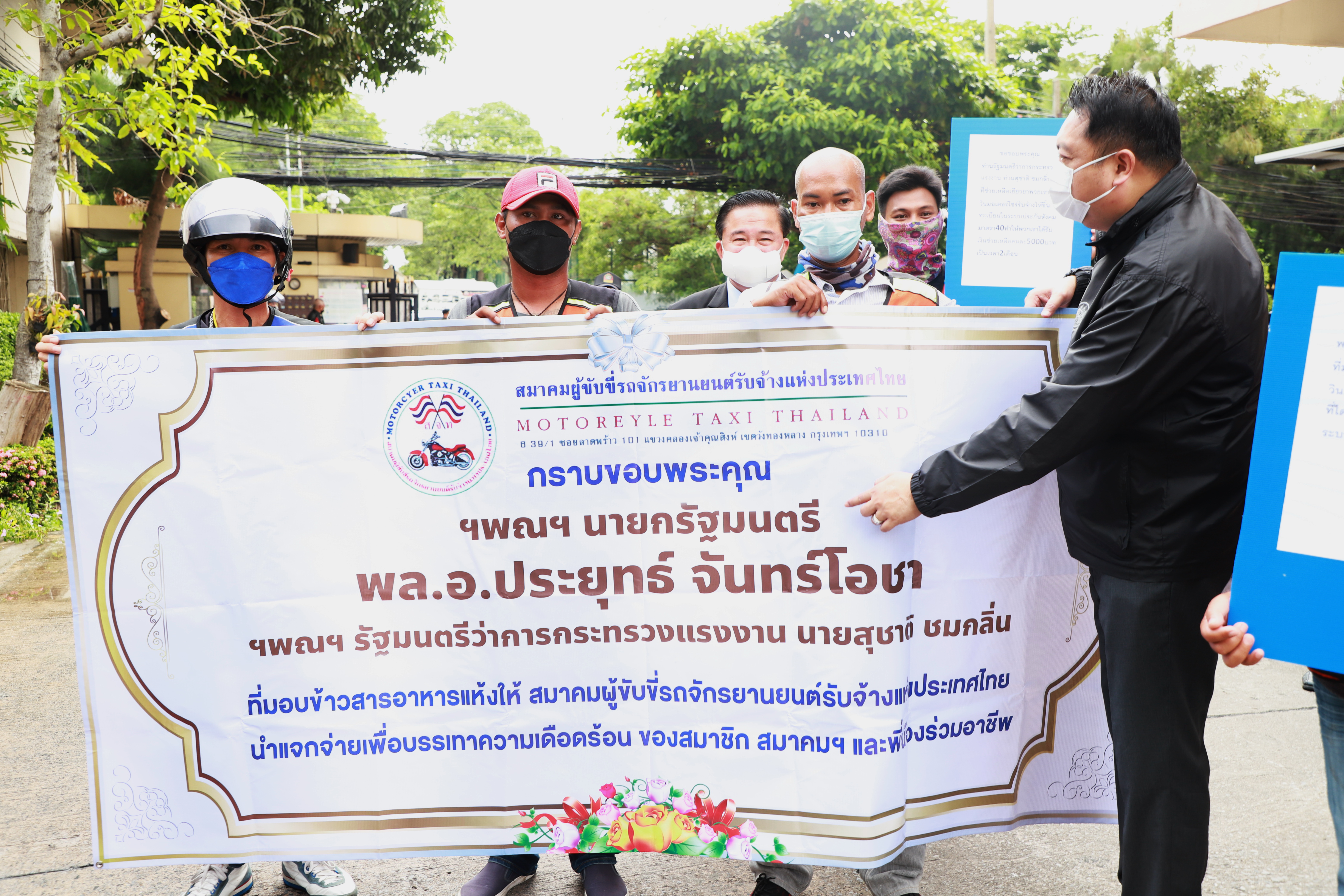 President of the Motorcycle Taxi Association of Thailand, Mr. Chalerm Changthongmadan, said that today, his team and himself on behalf of the Motorcycle Taxi Association of Thailand came to express their gratitude to the government, led by Prime Minister General Prayuth Chan-ocha, Deputy Prime Minister General Prawit Wongsuwan, and Labour Minister Mr. Suchart Chomklin. The visit also aimed to encourage Prime Minister General Prayuth Chan-ocha and give thanks for recognizing the importance of motorcycle taxi drivers and allowing them to apply for Section 40 and receive remedies of 5,000 Baht each. The members also thanked the government for the care packs with consumer goods, including rice, dry foods, canned fish, and instant noodles, to which they received one pack each, for a total of 1,200 packs, to alleviate the suffering of the families of motorcycle taxi drivers affected by the ongoing COVID-19 situation.