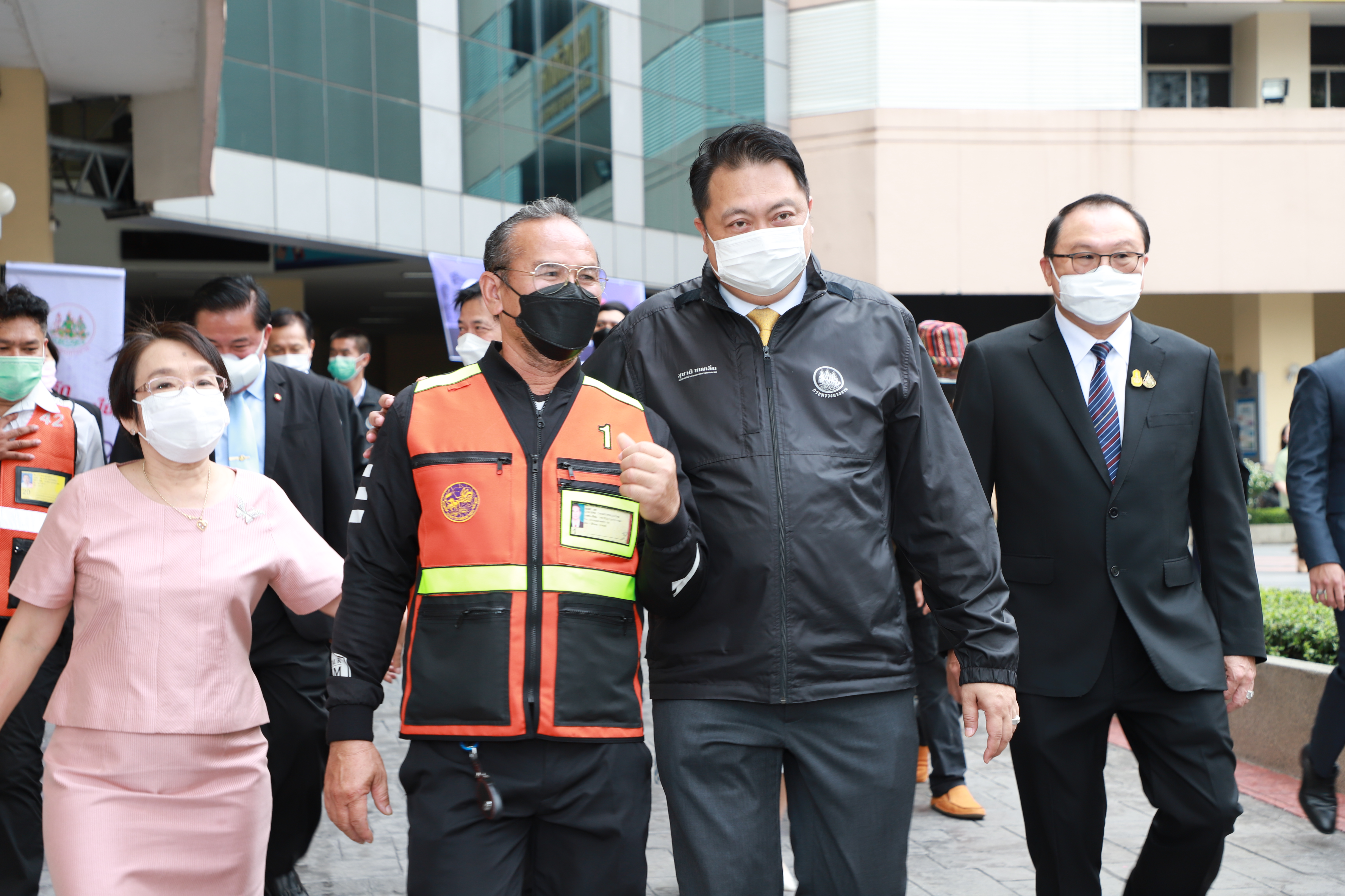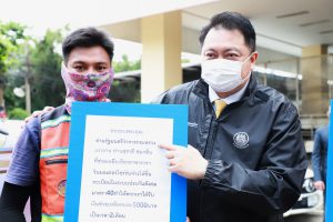 On August 27, 2021, Labour Minister Mr. Suchart Chomklin delivered 1,200 care packs from the Ministry of Labour, and 15,000 chicken eggs to the President of the Motorcycle Taxi Association of Thailand, Mr. Chalerm Changthongmadan, Deputy President Mr. Chamnan Cherdchai, Secretary of the Association, Mr. Santi Patipanarat and Director of the Association Mr. Parichart Tanwaratana as recipients. The care packs and goods will be delivered to 1,200 members of the Motorcycle Taxi Association of Thailand to help families suffering from the COVID-19 situation. Assistant to the Labour Minister Mr. Surachai Chaitrakulthong, the Labour Minister’s Advisor Mrs. Thiwalrat Angkinan, the Labour Minister’s Secretariat Mr. Suthep Chitayawong, Pol.Maj.Gen. Nantachat Supamongkol from the Office of the Prime Minister’s Secretariat, performing duties for the Ministry of Labour, the Ministry of Labour’s Spokesperson (on politics) Mrs. Theanrat Nawamawat, Permanent Secretary of Labour Mr. Suthi Sukosol and the Ministry of Labour’s executives also joined the occasion at the foyer on the ground floor, Ministry of Labour.