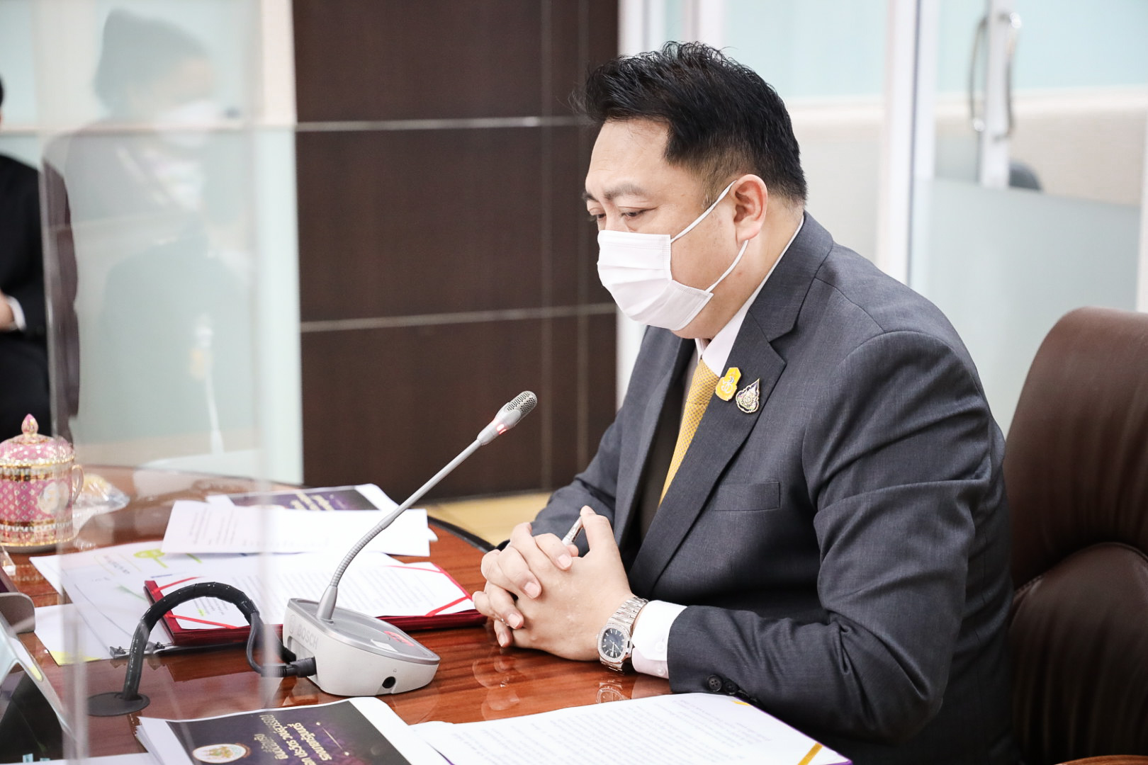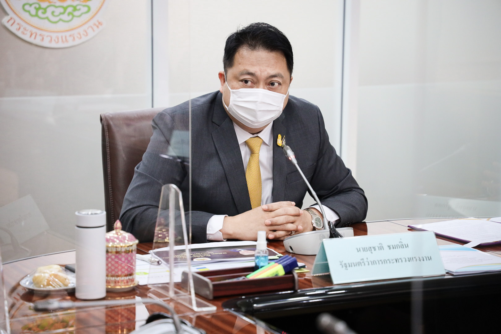 General Prawit Wongsuwan praised the Labour Minister, the Ministry of Labour’s executives, and officials for driving government policies to help workers quickly and concretely. He shared encouragement for them to continue working and passed the policy to the Ministry of Labour to help both employers and insured persons under Section 33, 39, and 40 affected by COVID-19, who are still waiting, to ensure that remedies are complete and thorough. He also asked for the organization of foreign workers and emphasized the prevention of human trafficking through enforcement and strict prevention from government officials’ interference.