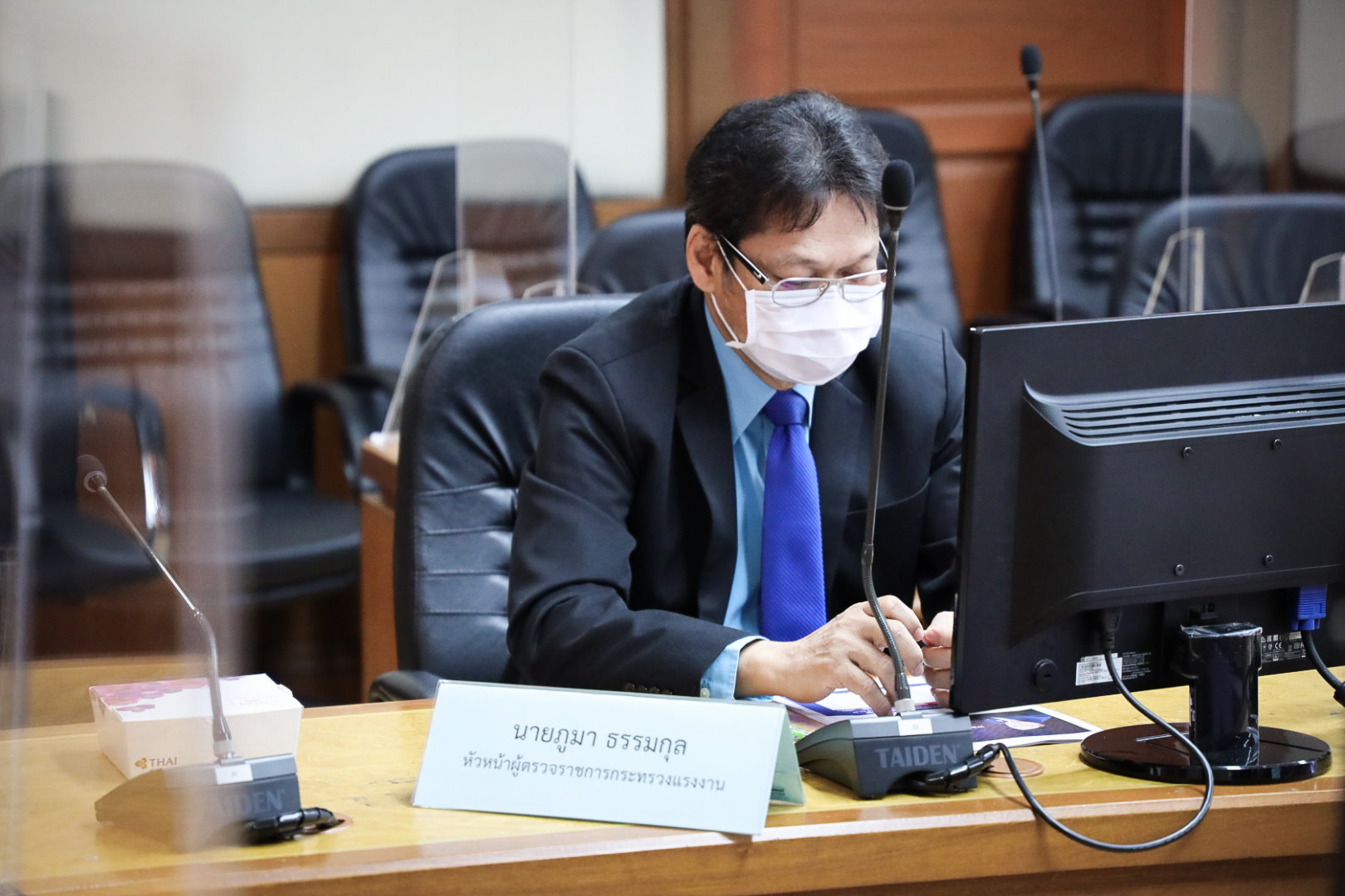 On August 18, 2021, Deputy Prime Minister General Prawit Wongsuwan chaired the meeting to listen to the Ministry of Labour’s performance over the past year. The meeting took place in the form of a video conference, with Labour Minister Mr. Suchart Chomklin, Deputy Labour Minister Prof. Narumon Pinyosinwat, Assistant to the Labour Minister Mr. Surachai Chaitrakulthong, Assistant Minister from the Prime Minister’s Office, performing duties at the Ministry of Labour, Mr. Pornsak Charoenprasert, the Ministry of Labour’s Advisor, Mrs. Thiwalrat Angkinan, the Labour Minister’s Secretariat Mr. Suthep Chitayawong, Permanent Secretary of Labour Mr. Suthi Sukosol, and the Ministry of Labour’s executives also joined the meeting, which took place at the Saengsingkaew meeting room, 5th floor, Ministry of Labour. General Prawit said that today was a good opportunity to listen to the Ministry of Labour’s performance, which took place in a video conference, consistent with the current situation and following public health measures. He showed appreciation for the Ministry of Labour in driving the government’s urgent and important policies and providing timely assistance to workers. He expressed his care for the Ministry of Labour’s personnel who have devoted themselves to helping those affected by COVID-19. He thanked the Ministry of Labour for expediting vaccinations to insured persons, especially risk groups, and to continue the efforts in line with the government’s intention, listing COVID-19 vaccinations as a national agenda. General Prawit also emphasized the work on key issues: 1) Vaccination administration to accelerate the immunization among workers, especially in the dark red areas, and speed up vaccinations for workers camps to meet the specified goals. 2) Remedies for those affected by the lockdown measures in 29 dark red provinces, including employers and insured persons under Sections 33, 39, and 40, to proceed according to the respective timelines to help those affected. 3) Create awareness and publicize among the workforce to take preventative action and care for themselves from COVID-19, including the Ministry of Labour’s personnel. 4) The Blue Factory project to provide comprehensive management by surveying the willingness of the establishments in comprehensive screening. And if an infected person is found, urgent care and assistance are required promptly following public health measures. 5) Foreign workers shall be supervised and managed concerning work to strictly comply with the laws and public health measures. 6) Strictly raise the level of prevention and resolution of human trafficking to meet international standards and the International Labour Organization’s standards. Government officials must be closely supervised to prevent any involvement in human trafficking. If any wrongdoing is found, decisive action must be taken from both disciplinary and criminal standpoints. 7) Upgrading skilled workers online to stay relevant in the COVID-19 situation, focusing on developing digital skills, such as producing advertising materials and short films with smartphones, including techniques for creating an online store and selling online.