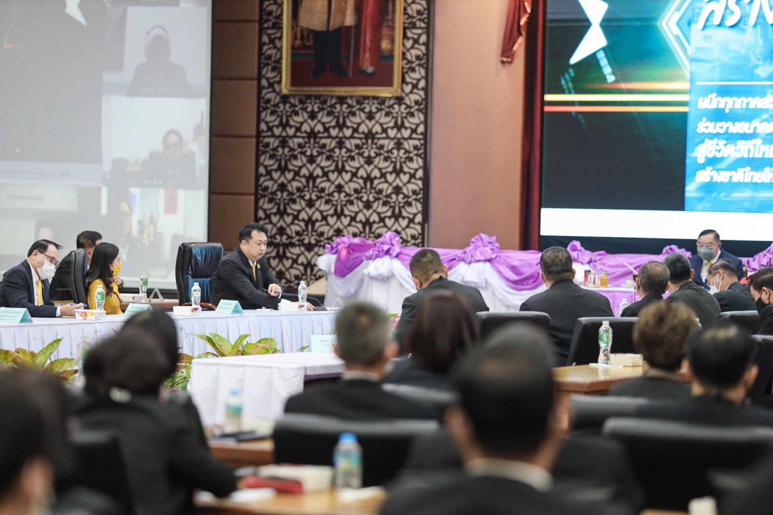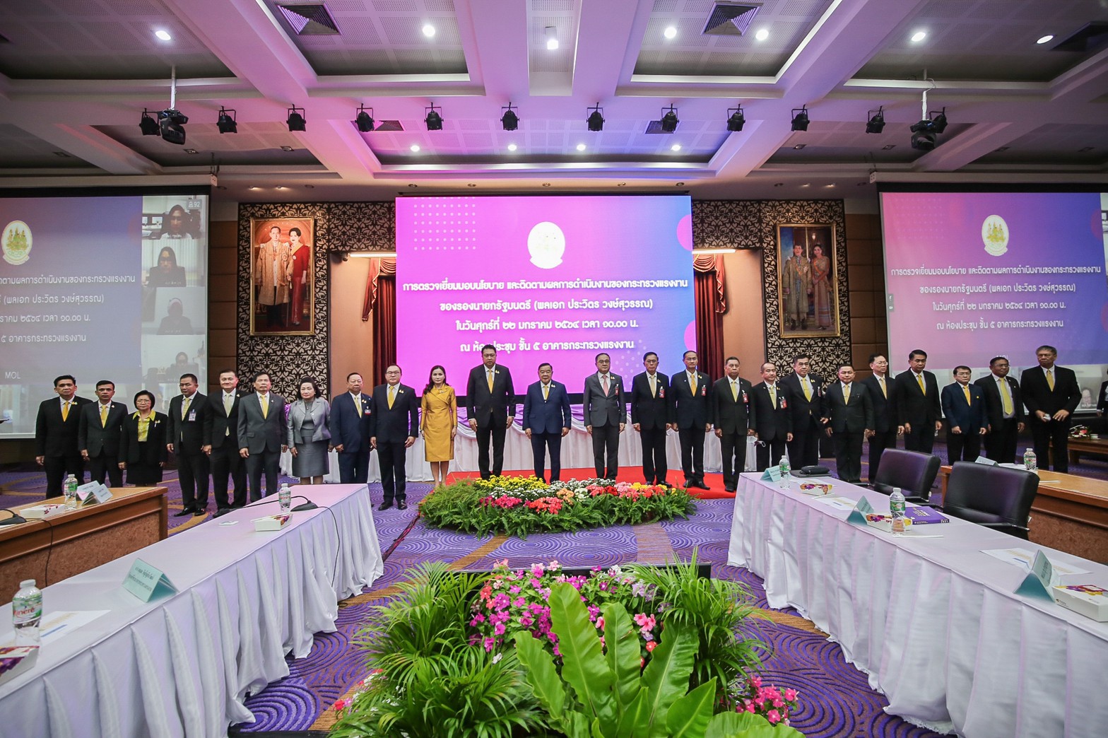 On January 22, 2021, at 10.00 hours at the meeting room on the 5th floor of the Ministry of Labour, Deputy Prime Minister General Prawit Wongsuwan chaired the meeting deliver policies and monitor the performance of the Ministry of Labour. Labour Minister Mr. Suchart Chomklin, Deputy Labour Minister Prof. Narumon Pinyosinwat, Permanent Secretary of Labour Mr. Suthi Sukosol, and the Ministry of Labour’s executives joined the welcoming. The Deputy Prime Minister said that from the Covid-19 pandemic, he would like to thank all officials and staff under the Ministry of Labour for helping people affected by Covid-19 to the best of their ability. He said that it is important to jointly prevent the spread of Covid-19 and work with relevant departments. He emphasized additional work on the following issues: 1) Surveillance and prevention of the spread among migrant workers. Delaying the import of foreign workers and management of foreign workers in the country. 2) To establish measures for the relief of foreign workers of the three nationalities according to the Cabinet’s resolution dated December 29, 2020, to be concise in every step. 3) To establish surveillance and screening measures for Covid-19 to cover all establishments. 4) Expedite assistance for people affected by the Covid-19 pandemic, keeping pace with the situation. 5) To establish assistance measures to maintain employment conditions and promote employment to cover both formal and informal workers and provide measures to assist in occupational training to raise the skill level and help workers find employment as quickly as possible. 6) Upgrading the prevention and solutions to human trafficking to Tier 1 to meet international standards and international organizations. 7) To expand the overseas labour market. Today there was a video conference to the Labour Offices overseas to promote employment, asking the offices to help source vacancies to support Thai workers to work abroad to earn income and drive the country’s economy after the Covid-19 situation eases. 8) To assist and prepare remediation measures for unemployed people, requesting to expedite the payment of unemployment benefits to insured persons thoroughly, including providing measures to assist in vocational training to improve skills and find employment as quickly as possible. 9) To take care and expedite compensation for the lack of income among workers.