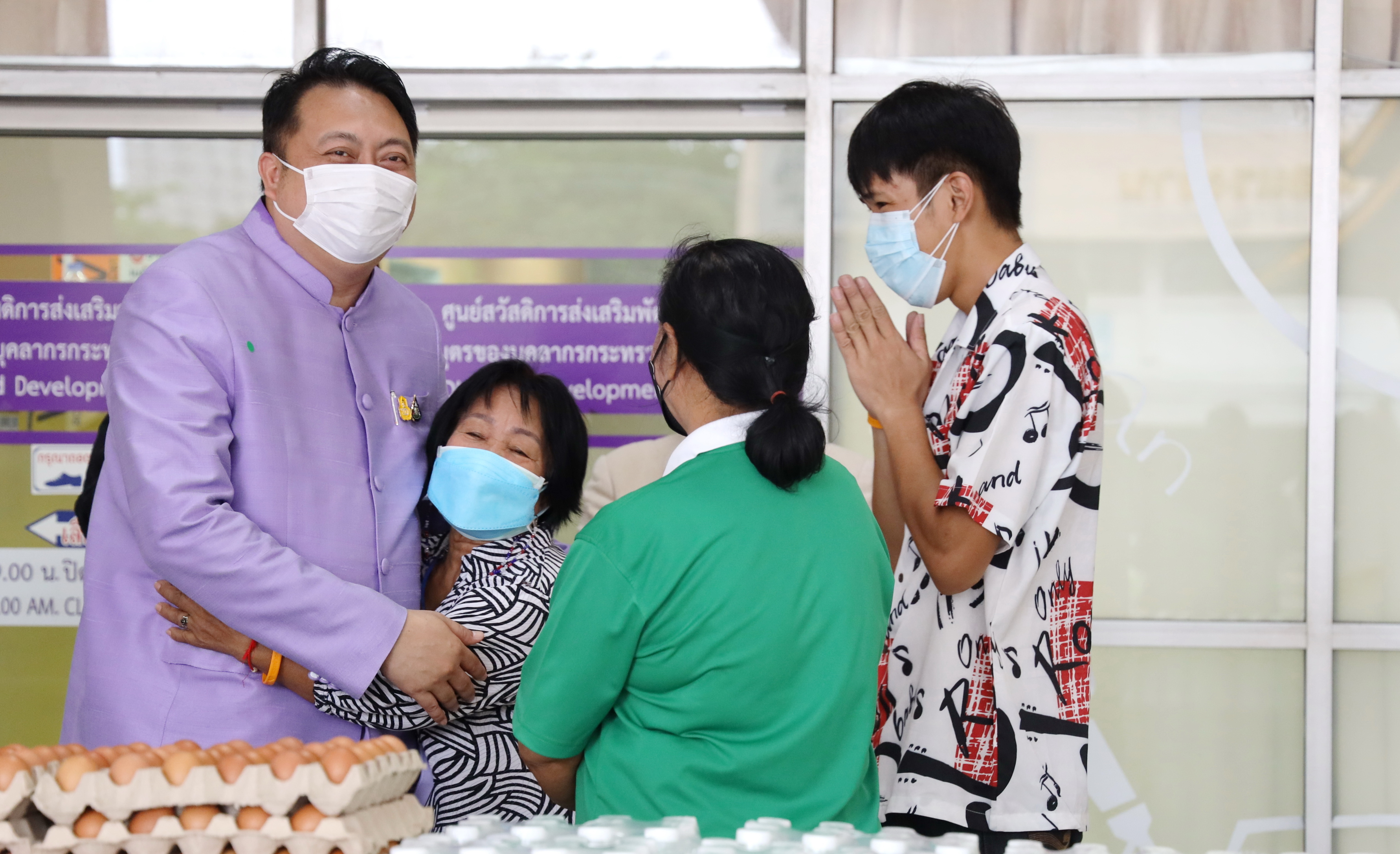 “Deputy Prime Minister General Prawit Wongsuwan is concerned about the people in the Din Daeng flats who have been affected by the COVID-19 situation. Therefore, he has instructed me as the Labour Minister to bring things to the community chairpersons to distribute them to the residents who live in the flats, where many families live, including young children, the elderly, and bedridden people who cannot help themselves. I would like to give my encouragement to everyone to get through this crisis safely,” concluded Mr. Suchart.