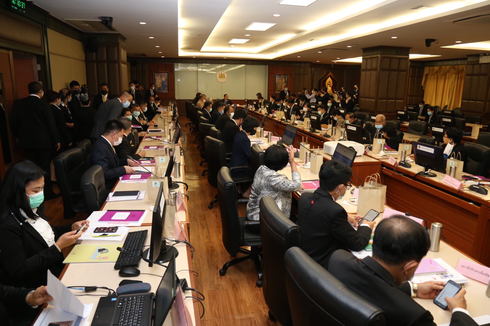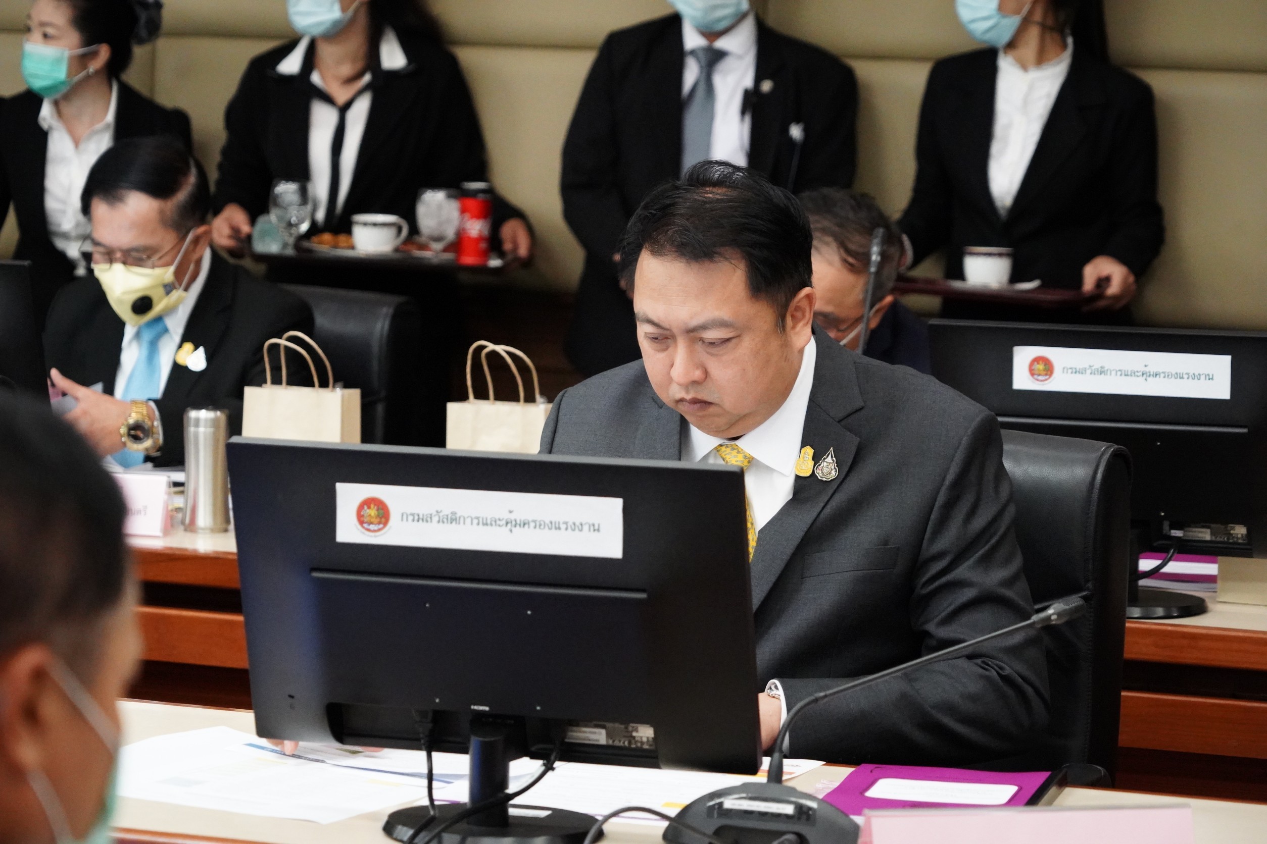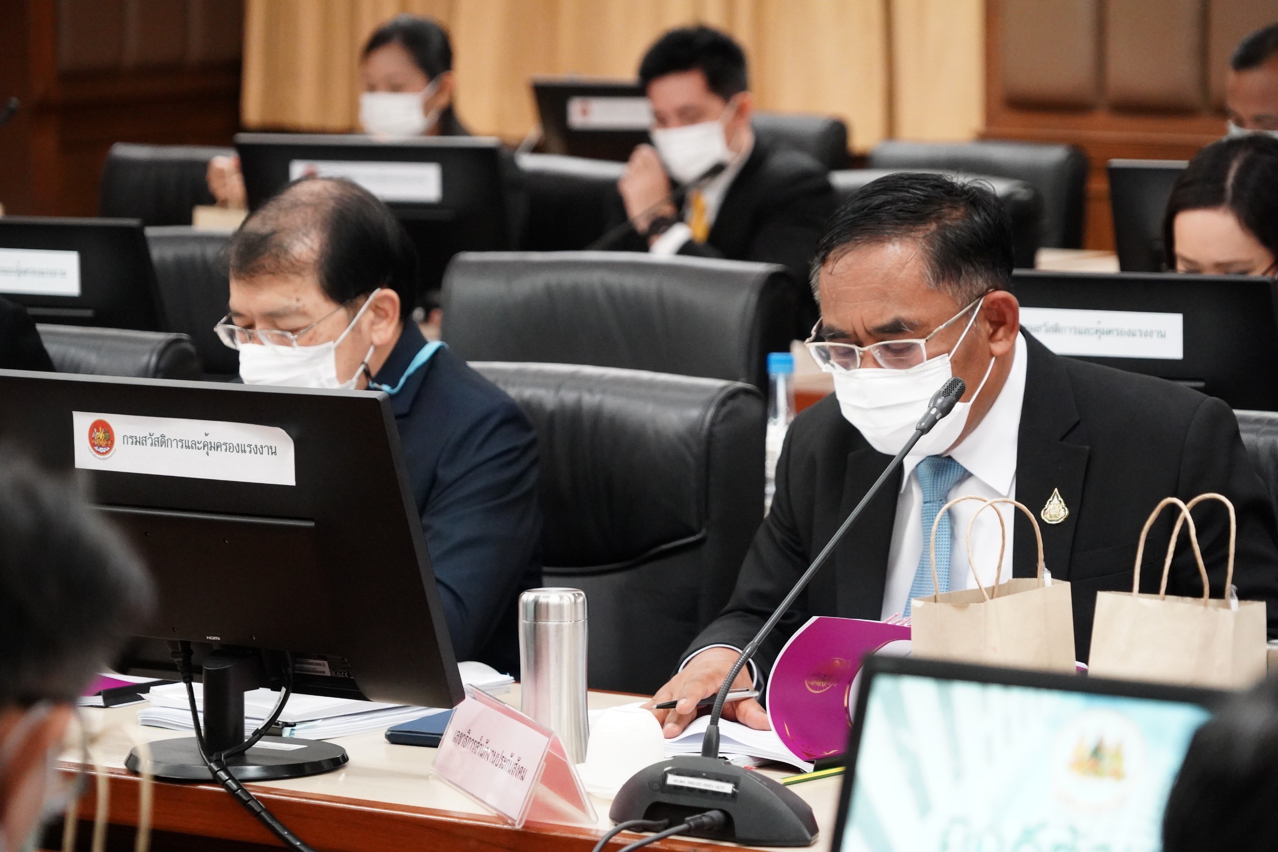 On February 10, 2021, at 10.00 hours, at the meeting room on the 5th floor, Department of Labour Protection and Welfare, Ministry of Labour, Deputy Prime Minister General Prawit Wongsuwan chaired the National Informal Workforce Management Committee (NIWMC) meeting no. 1/2021. Labour Minister Mr. Suchart Chomklin and Deputy Labour Minister Prof. Narumon Pinyosinwat welcomed Permanent Secretary of Labour Mr. Suthi Sukosol and the Ministry of Labour’s senior executives and representatives of related agencies, also joined the meeting. The Deputy Prime Minister said that the government attaches great importance to the development, promotion, and protection of all workers to have a stable working environment, social security, and good quality of life. The Ministry of Labour held the meeting of the National Informal Workforce Management Committee (NIWMC) No. 1/2021 today to allow all committee members to be aware of the situation of informal workers. The meeting discussed implementing the 2020 Action Plan, which includes 8.3 million workers to receive benefits. The key areas discussed today were: 1) Eight actions have been taken, out of the 14 claims by the informal labour network. The actions include increasing access to funds for home workers, hiring workfare for informal workers working in public services, employment promotion for new graduates (Co-Payment), quota allocation for informal workers in public procurement, and enhancing skills, and business promotion of informal workers. The National Informal Workforce Management Committee (NIWMC) meeting today is the first meeting of 2021. It was organized for all committee members to be aware of the current situation of informal workers, the performance in 2020 under the Informal Workforce Management Action Plan 2017 – 2021, progress on the Promotion and Development of the Quality of Life of the Informal Workers Act B.E. …, and progress on restoring the quality of life of informal workers affected by Covid-19. The meeting also considered the (draft) Informal Workforce Management Action Plan 2020 – 2022 and (draft) action plan for 2021 under the (draft) Informal Workforce Management Action Plan 2020 – 2022 and revised terms. The meeting also ordered the appointment of a subcommittee to coordinate and drive the informal labour management policy.
